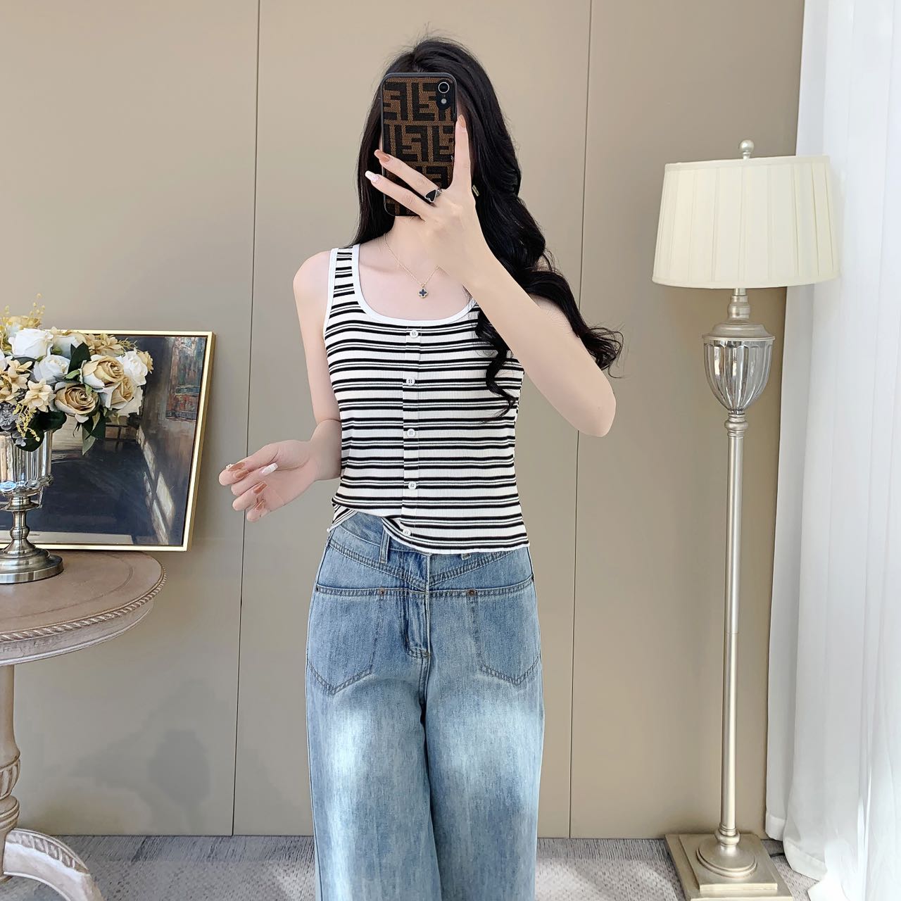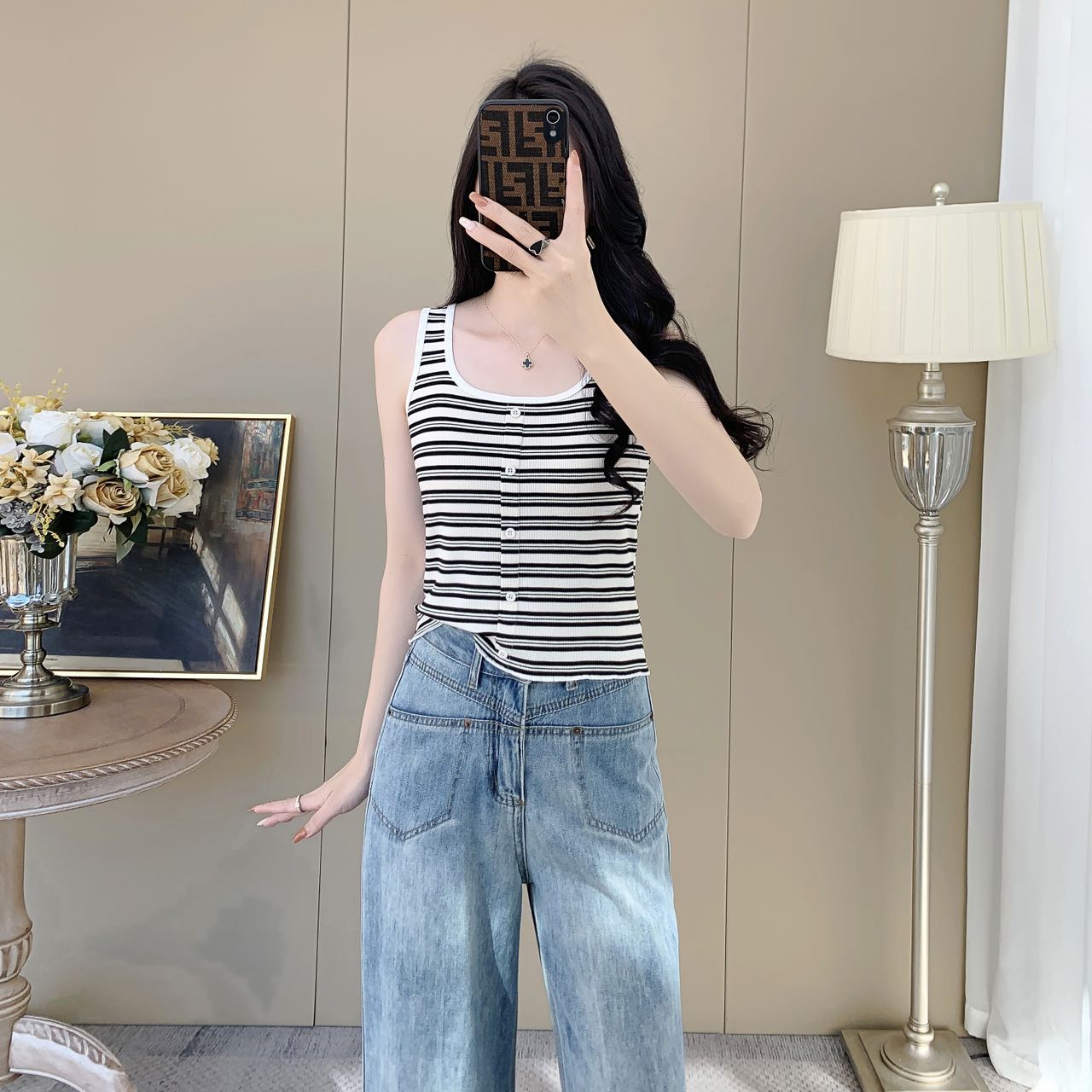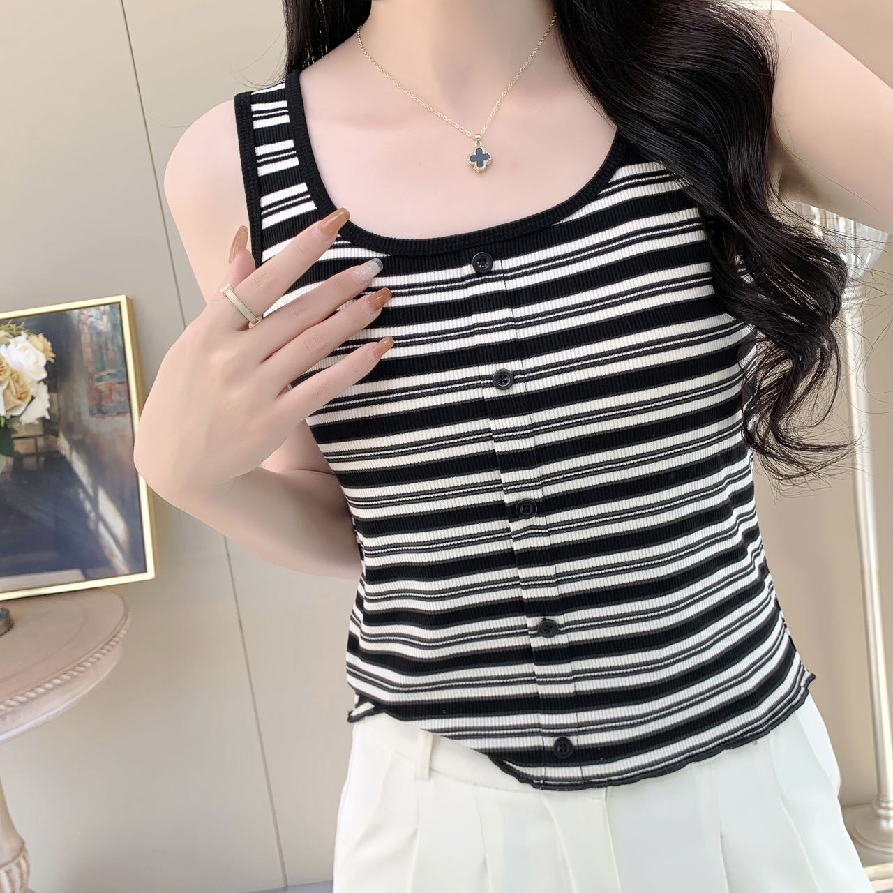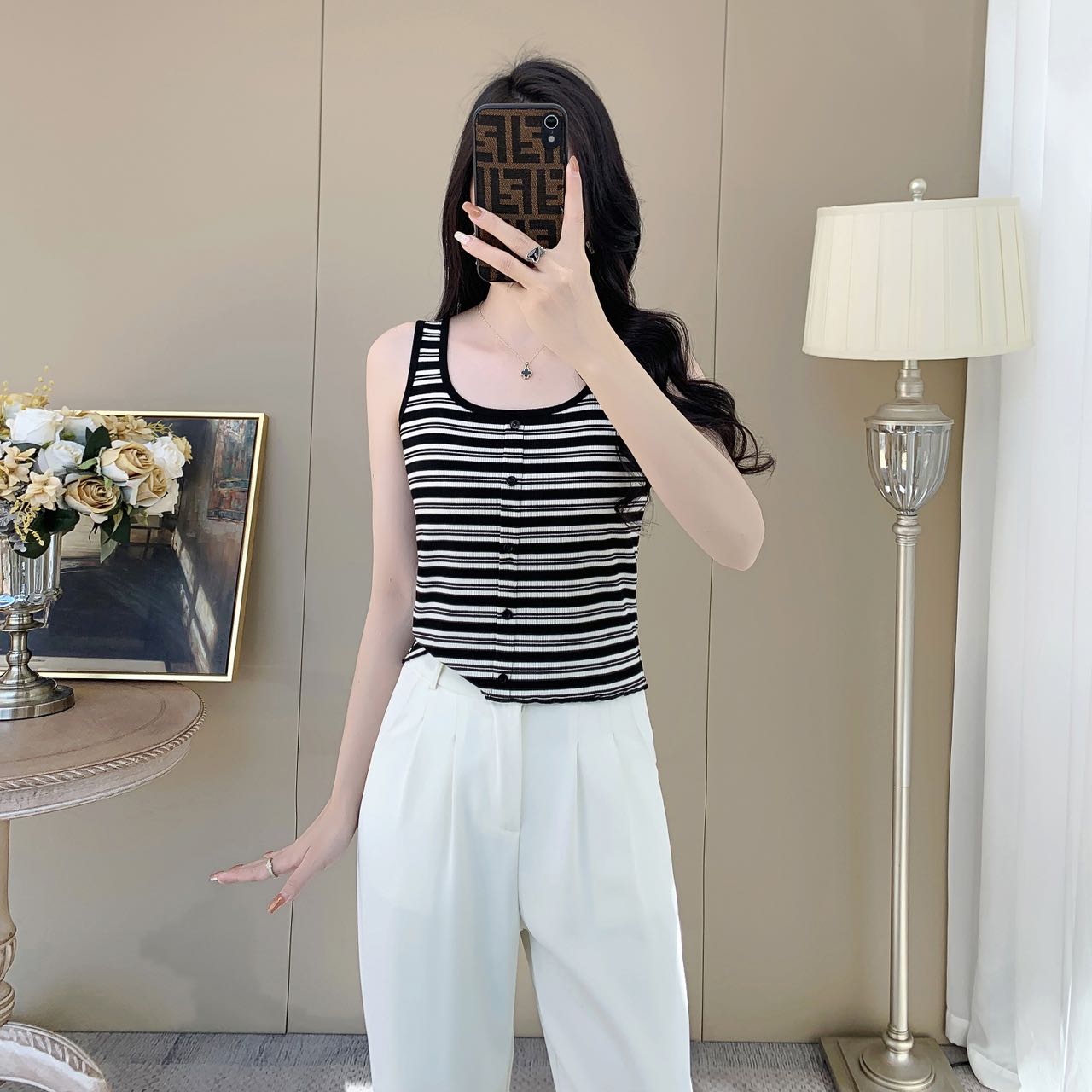 【100元3件】小香风条纹纽扣背心外穿内搭背心【FF25501】