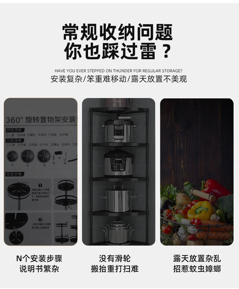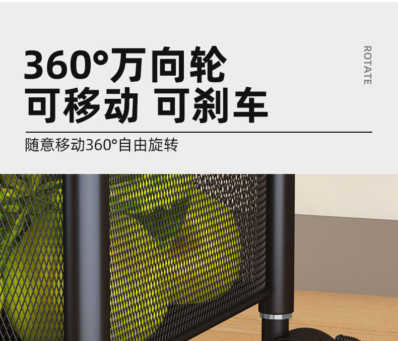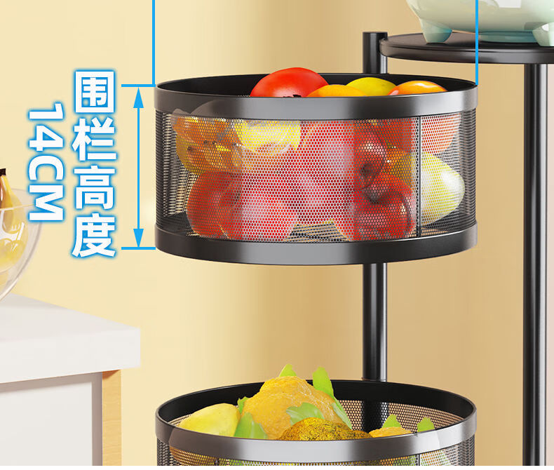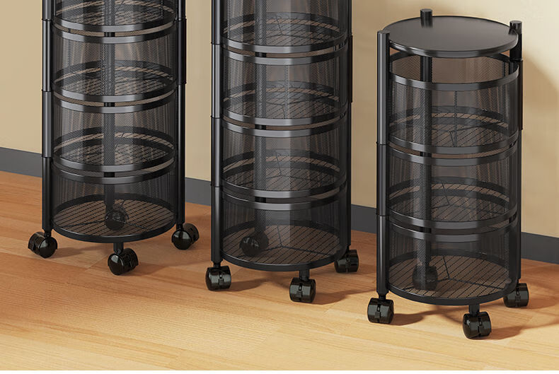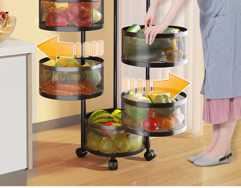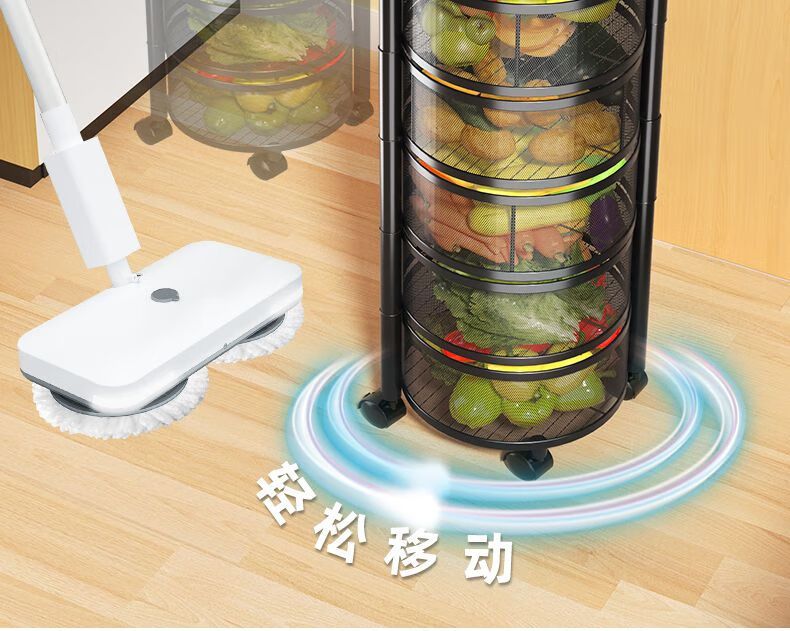 唐辑厨房旋转置物架果蔬菜架蓝小推车免安装可移动储物收纳架 4层 100037317977