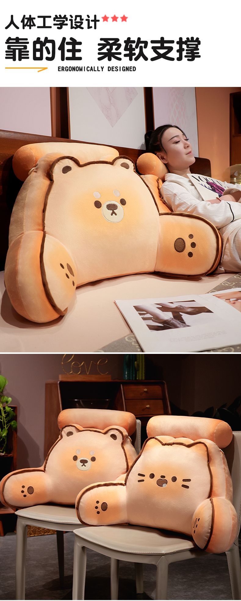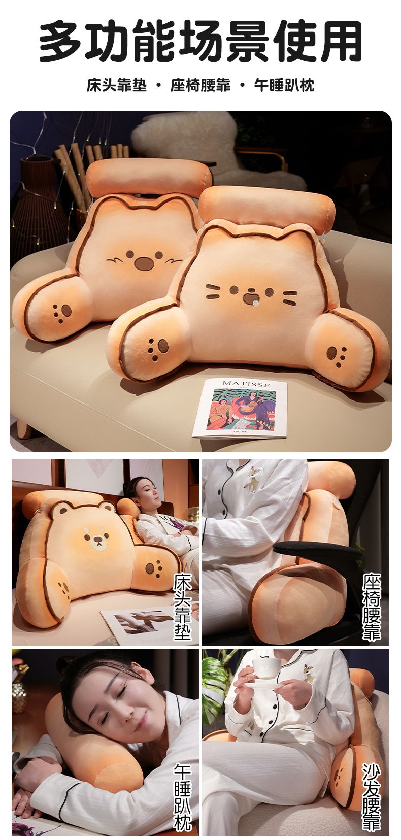 自然醒黄油饼干拥抱式床头腰靠床上儿童靠垫护腰枕头沙发抱枕学生宿舍QYL