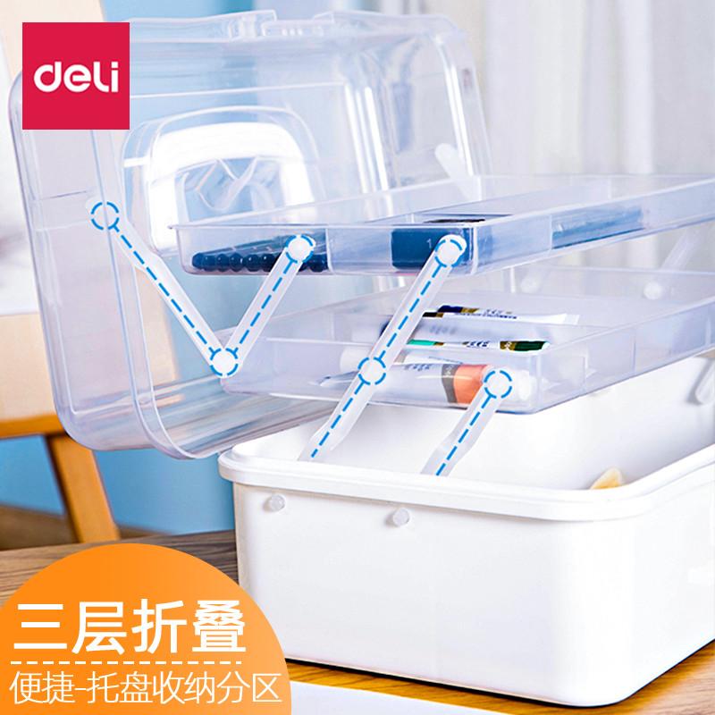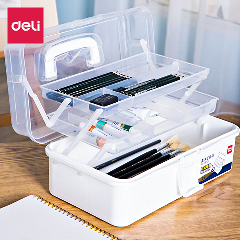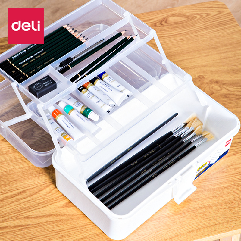 得力画画工具箱小学生用美术收纳盒多功能中号手提多层绘画收纳箱