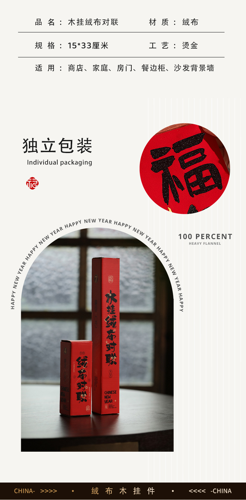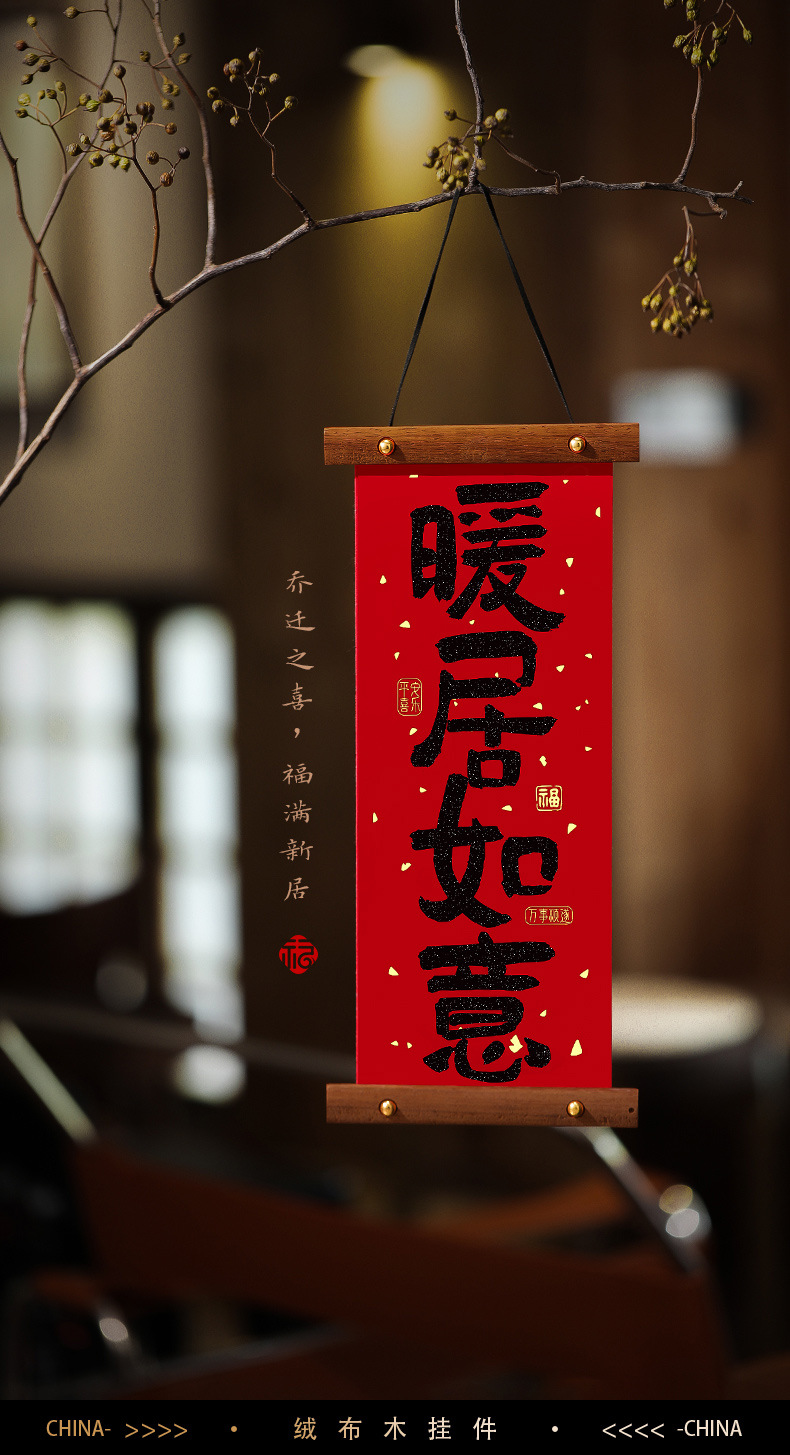 新年装饰木质小对联马年春节绒布对联挂件乔迁结婚室内布置用品