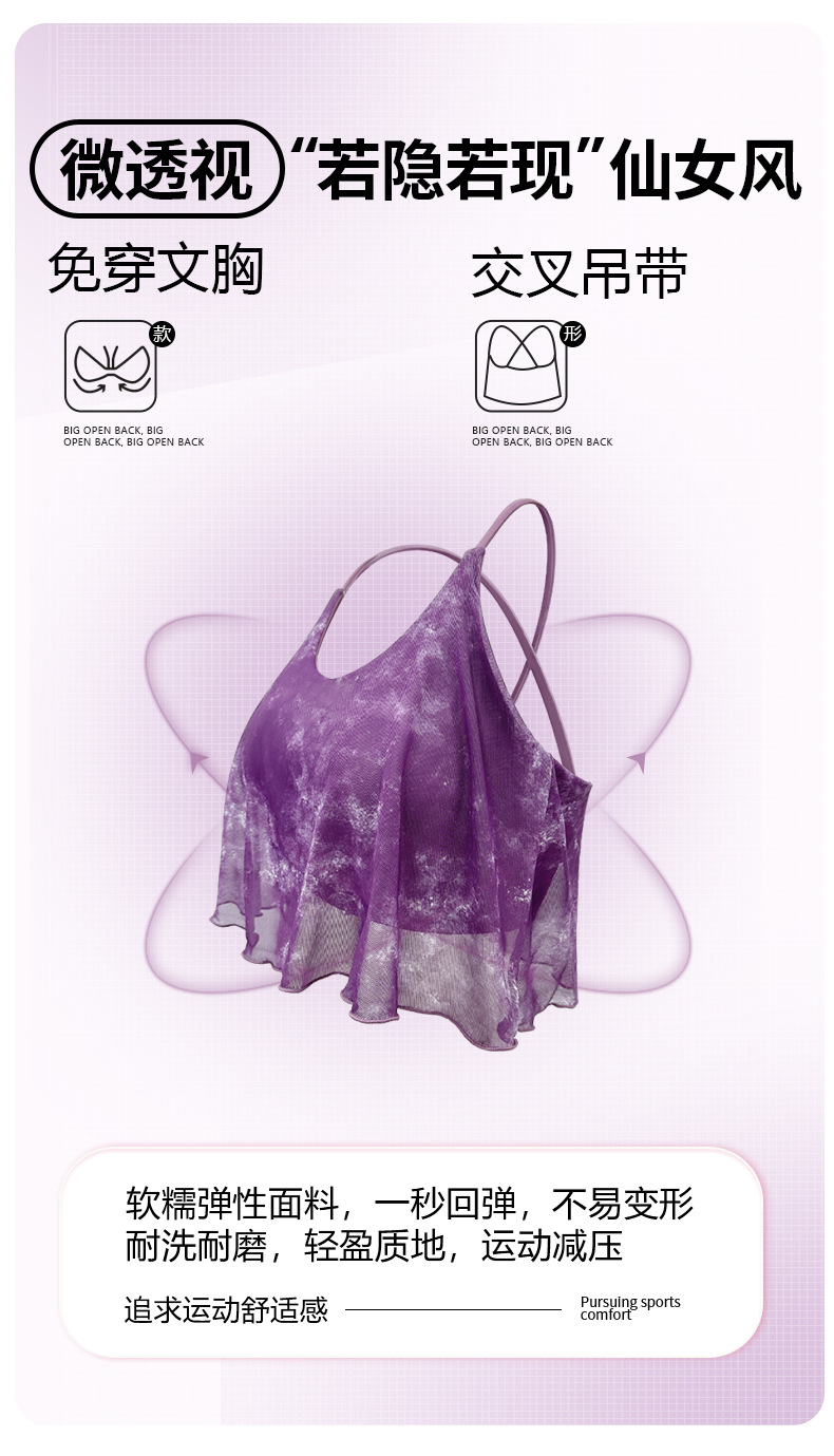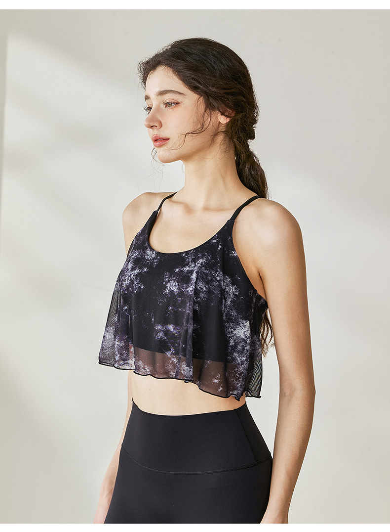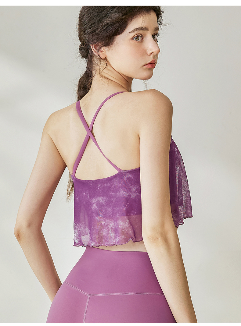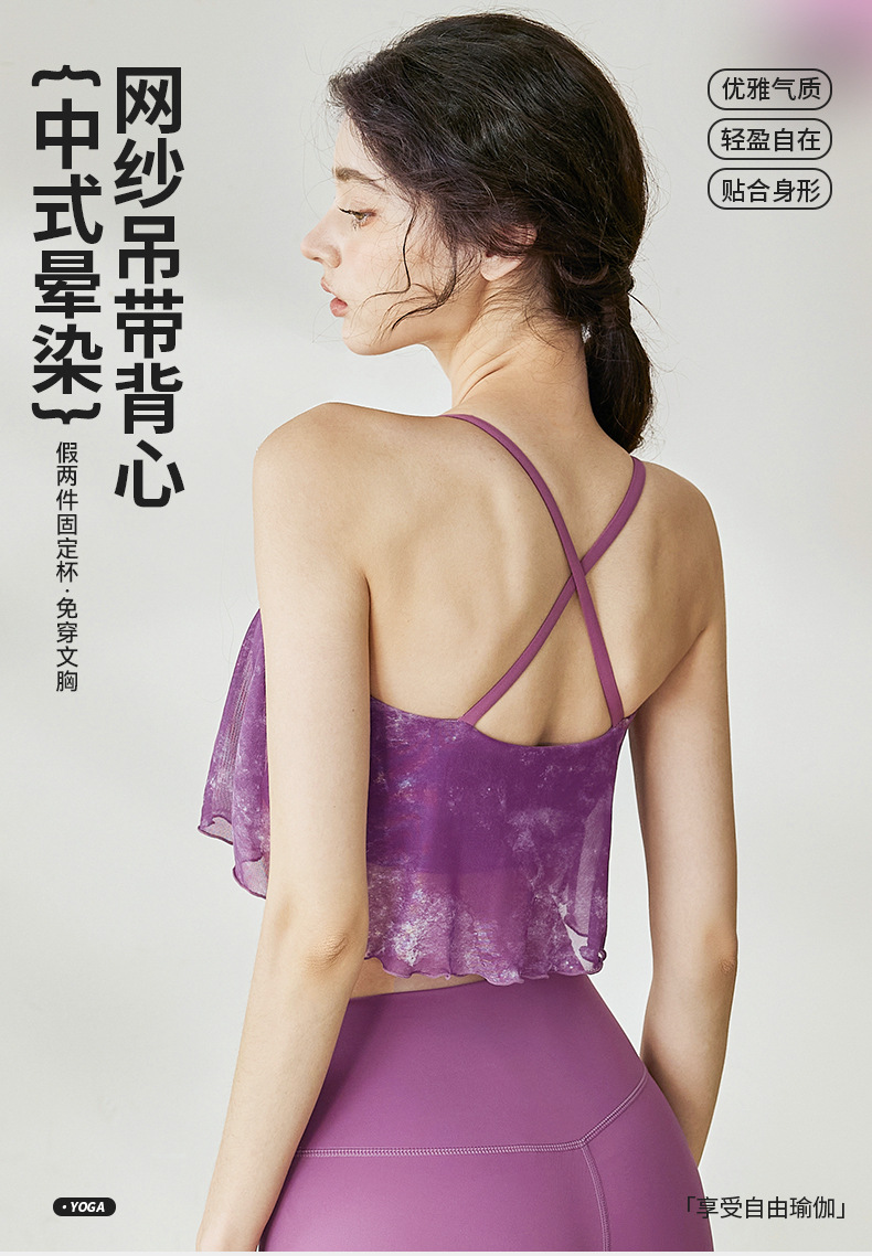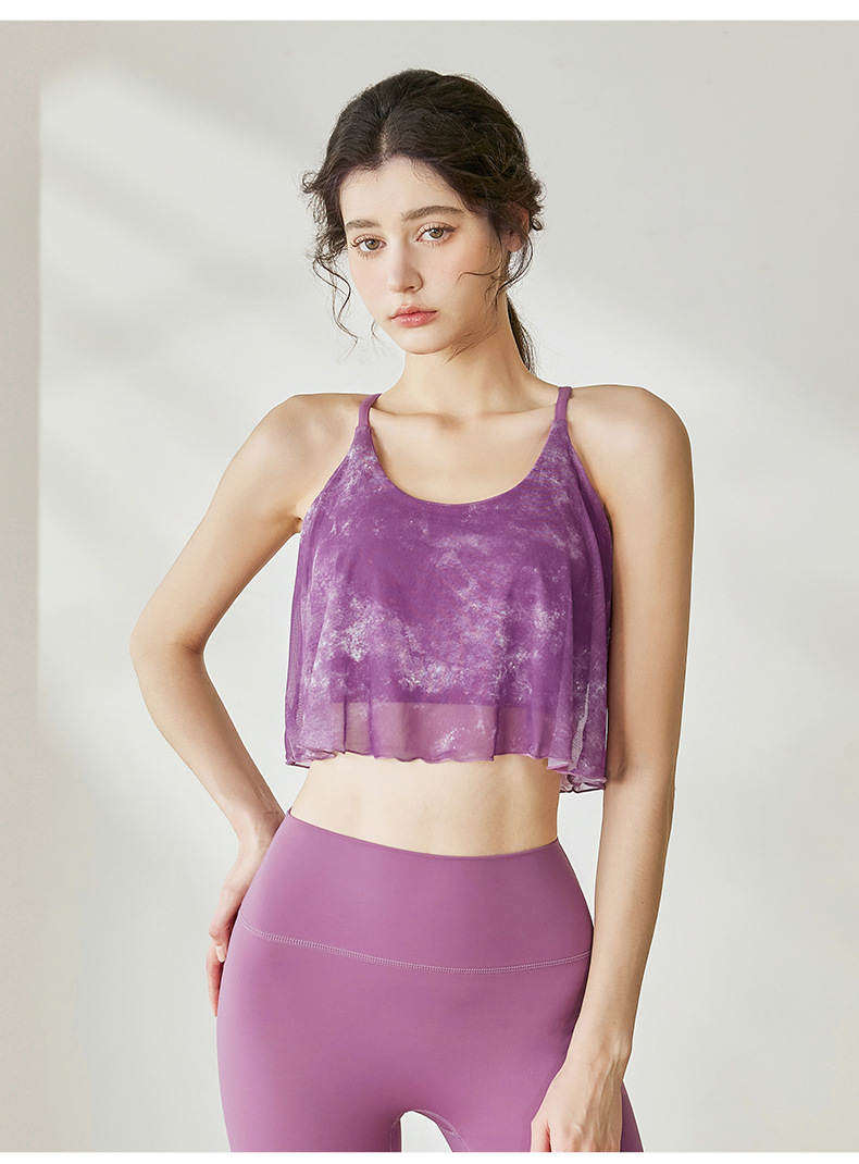 瑜伽背心女夏季新款网纱交叉美背健身服防震运动普拉提瑜伽服上衣