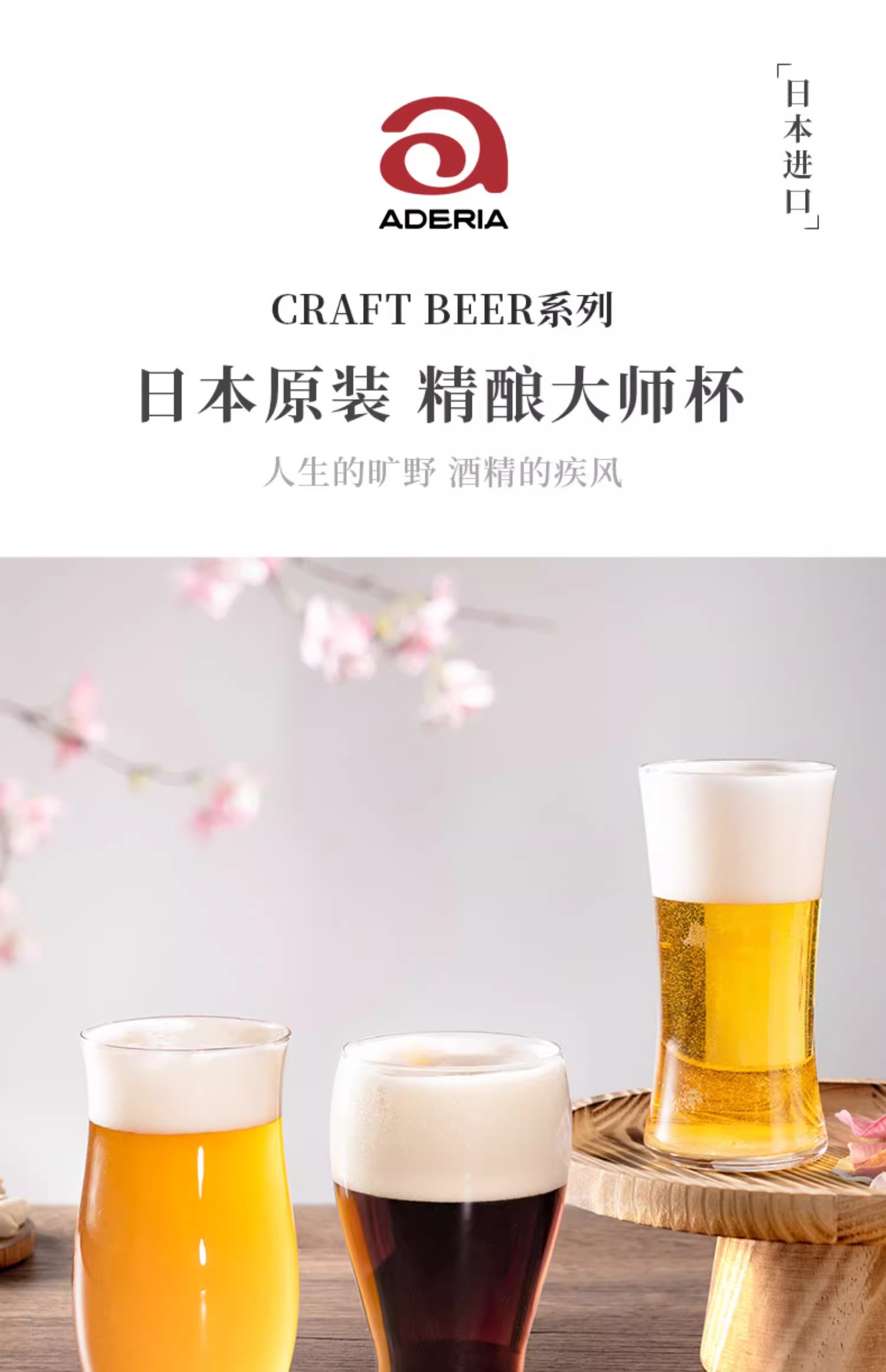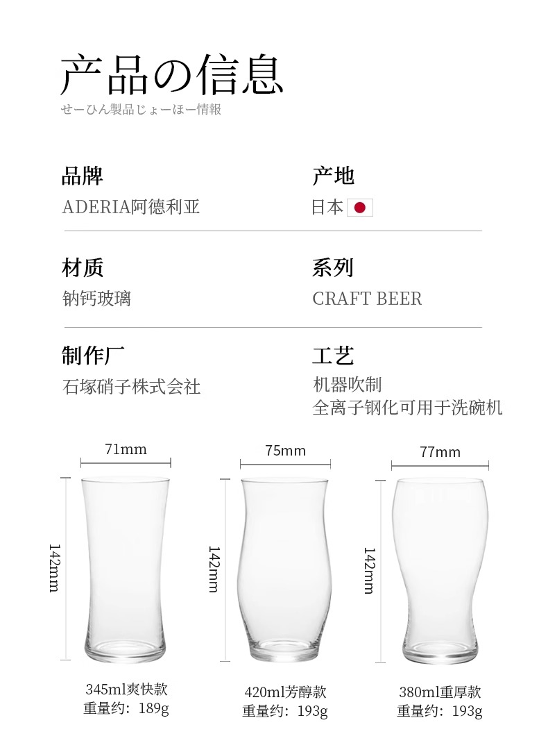 日本进口aderia精酿啤酒杯轻奢高档创意套装高级感网红扎啤玻璃杯Aderia啤酒杯