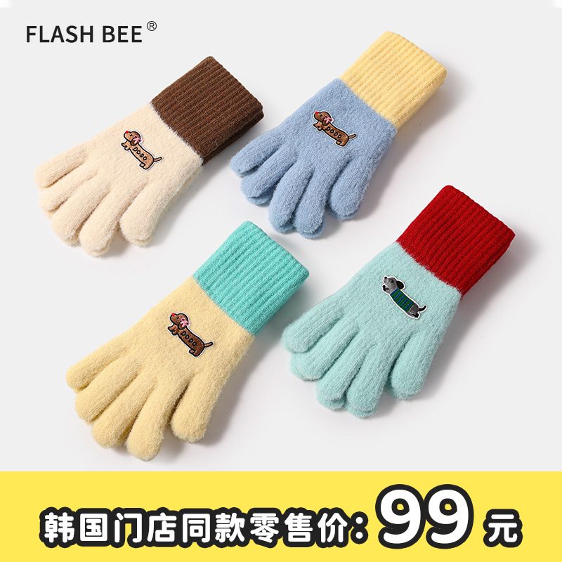 新款【韩国 腊肠狗针织手套】 女学生触屏保暖手套 可爱加厚防寒分指毛线手套