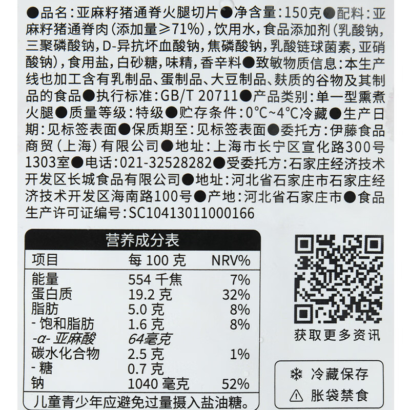 亚麻籽猪通脊火腿切片 150g/袋