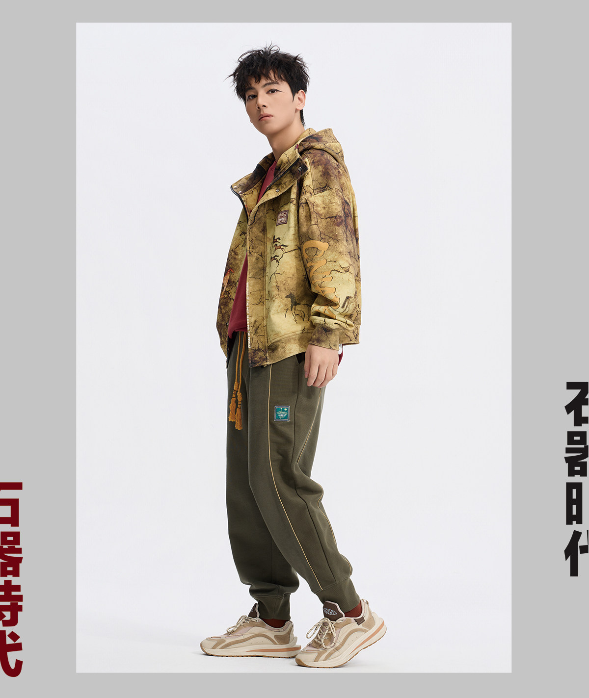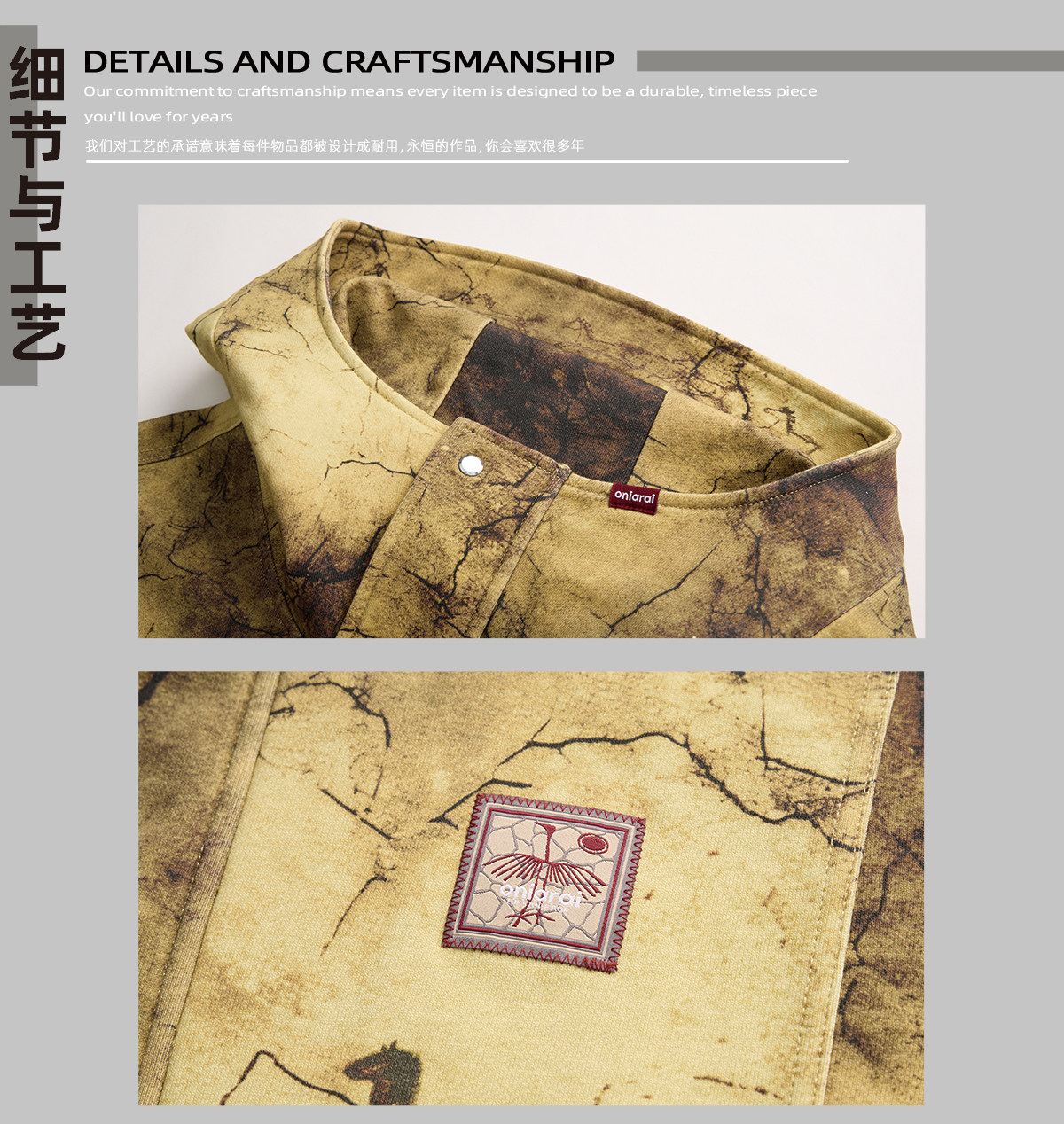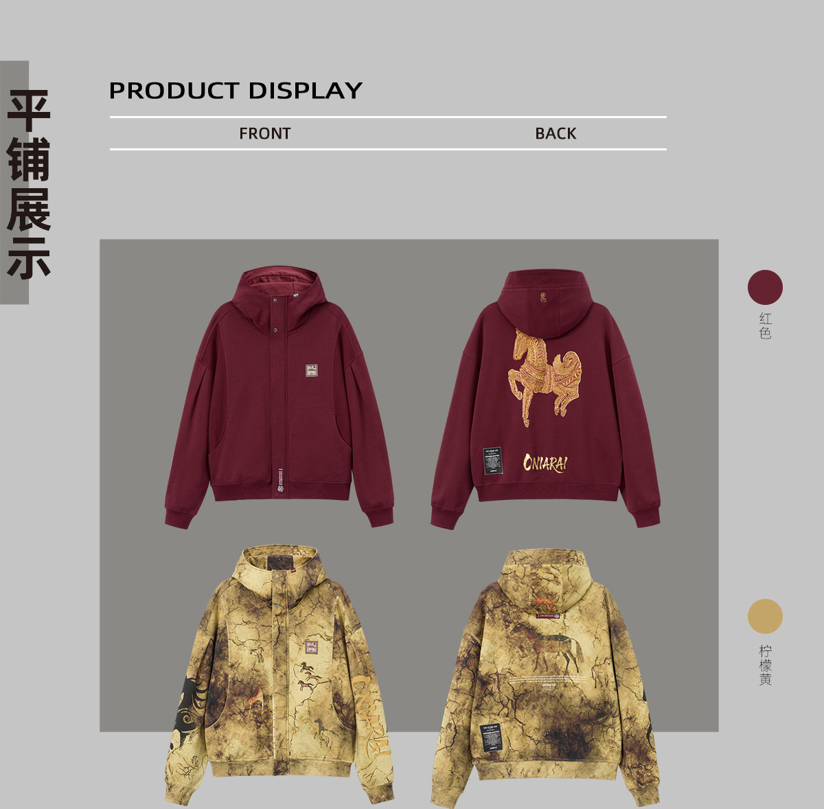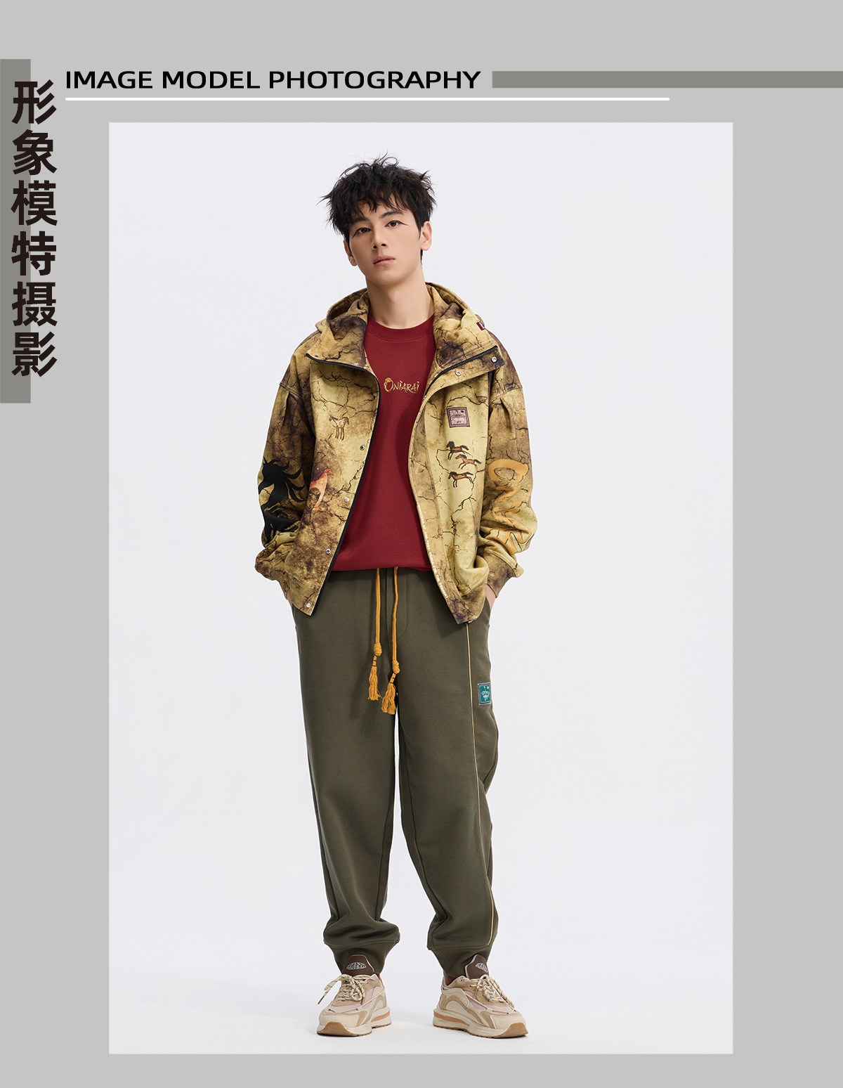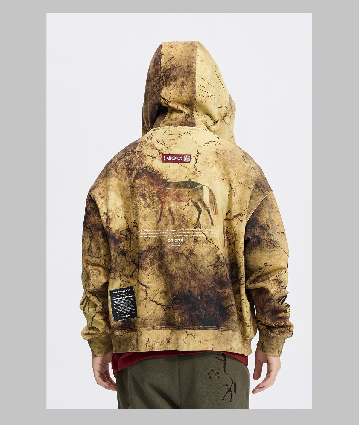 ONIARAI/鬼洗26新品黑标石器时代洞穴画廊满版连帽外套男 A340019
