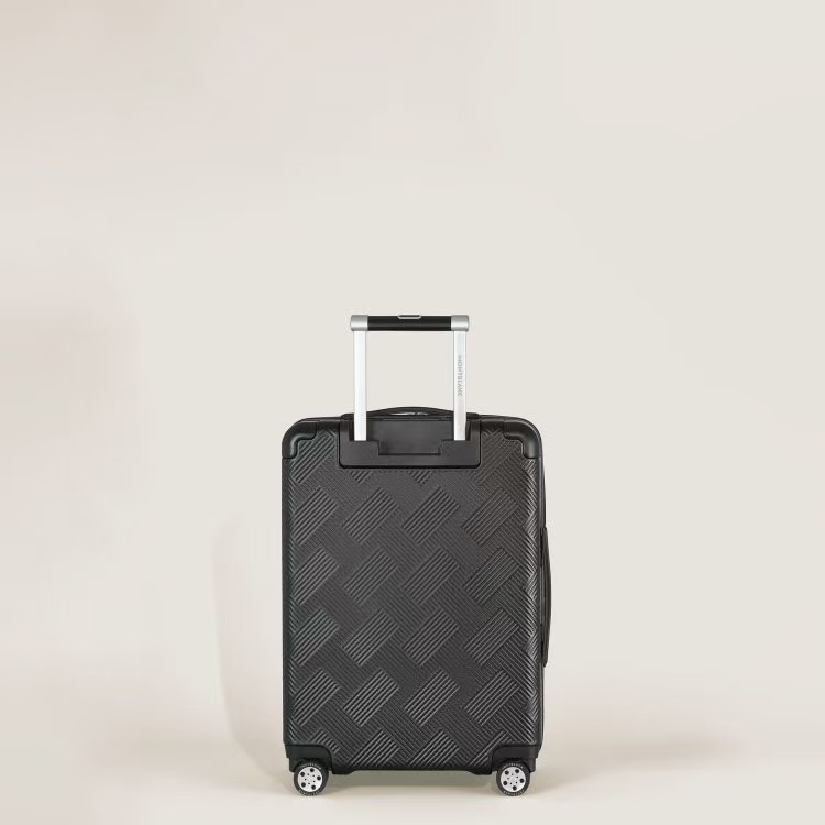 这款带前袋拉杆箱以黑色聚碳酸酯制成,内部的两侧有拉链隔层以及两个收纳袋,方便整洁有序地收纳行李。静音流畅滚轮、舒适皮革提手多节拉杆和TSA锁扣是出行的良伴。尺寸为38x55x23厘米,可作为登机箱。