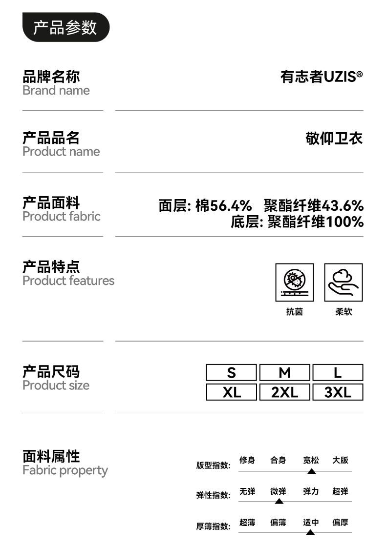 有志者UZIS美式运动卫衣休闲潮流长袖男宽松立领健身秋季新款敬仰