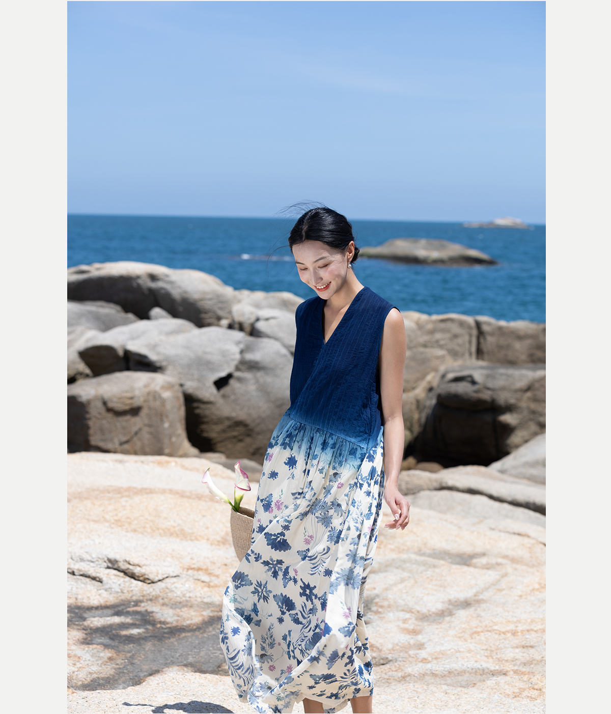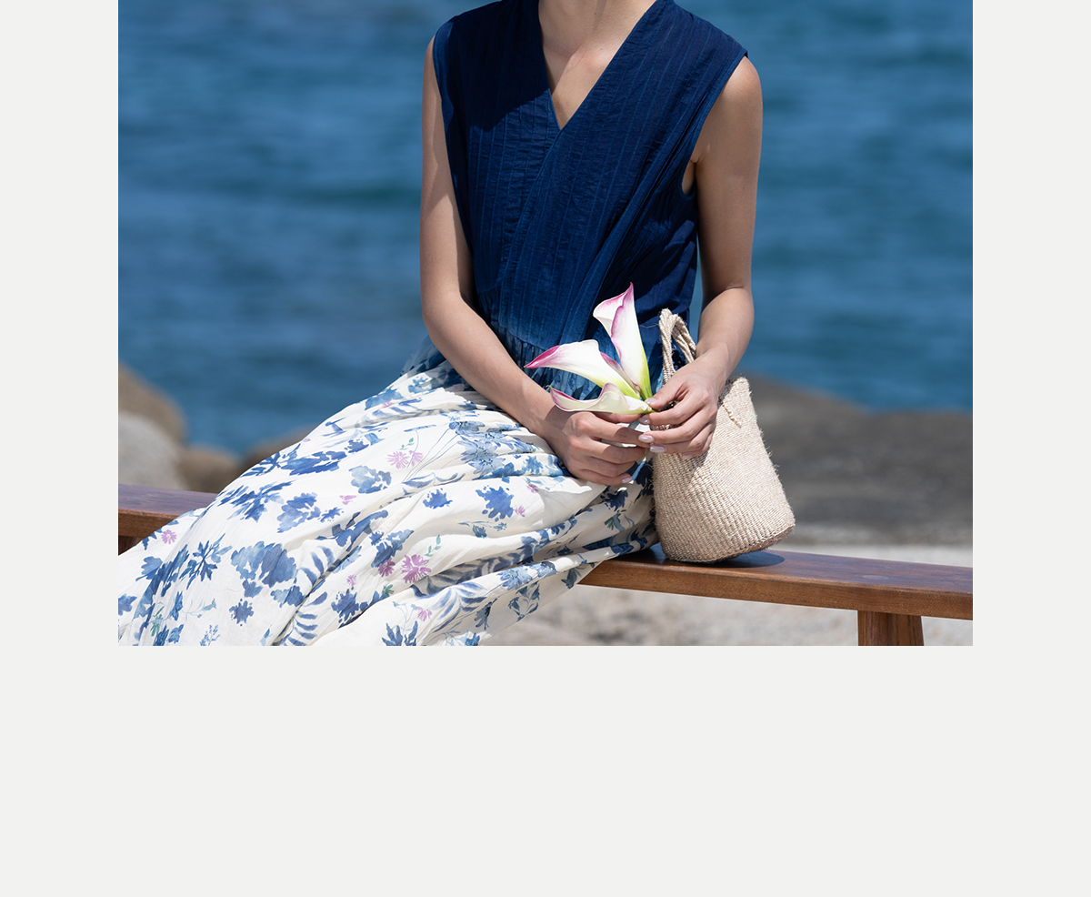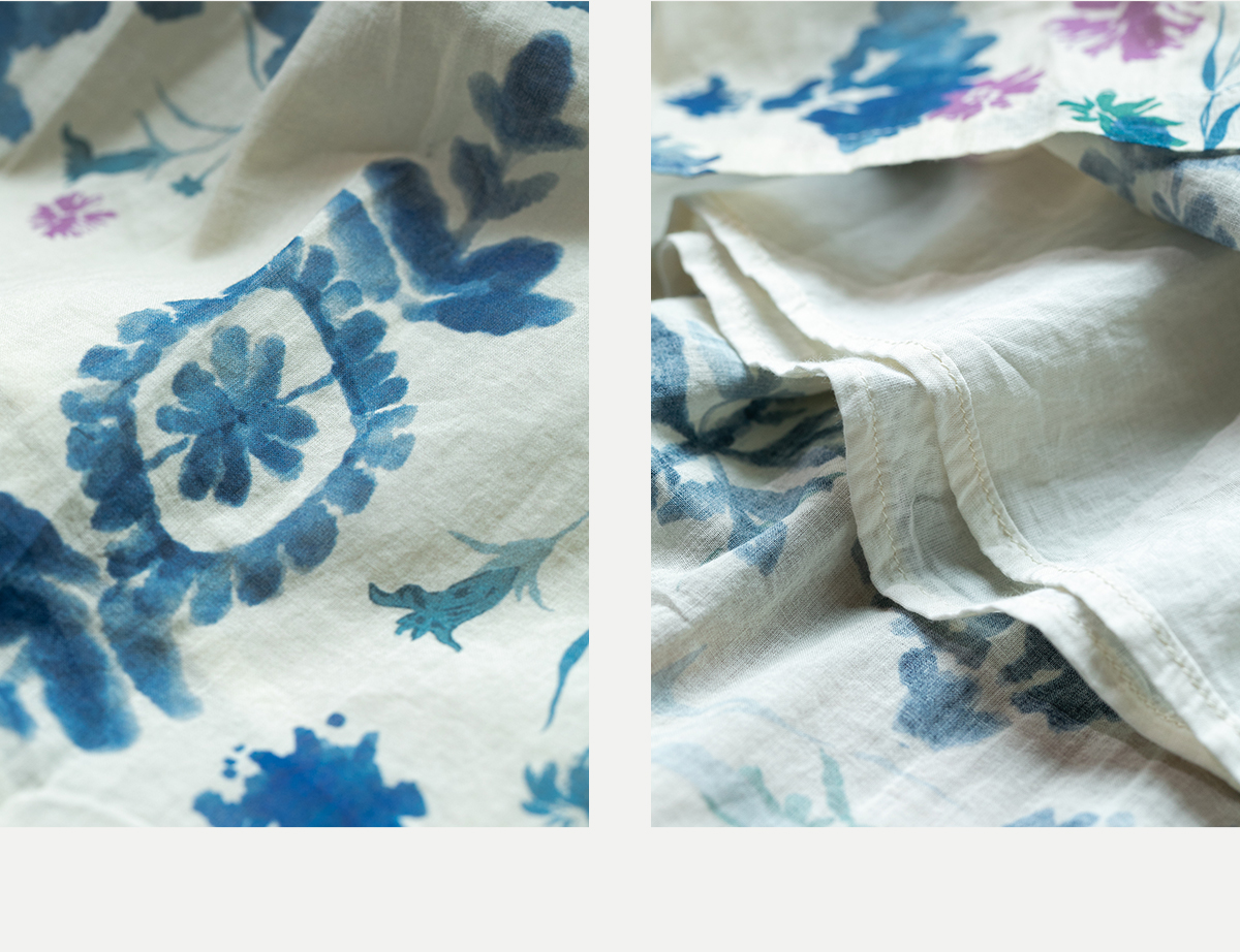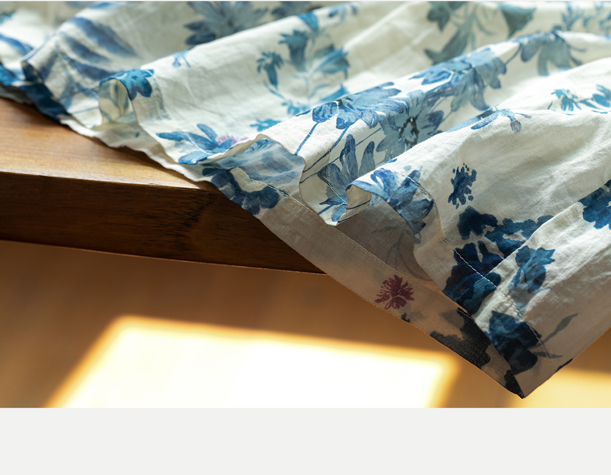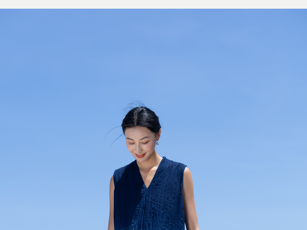 牧衣游 吊蓝染印花100支纯棉连衣裙新款无袖文艺宽松长裙 城烟雨