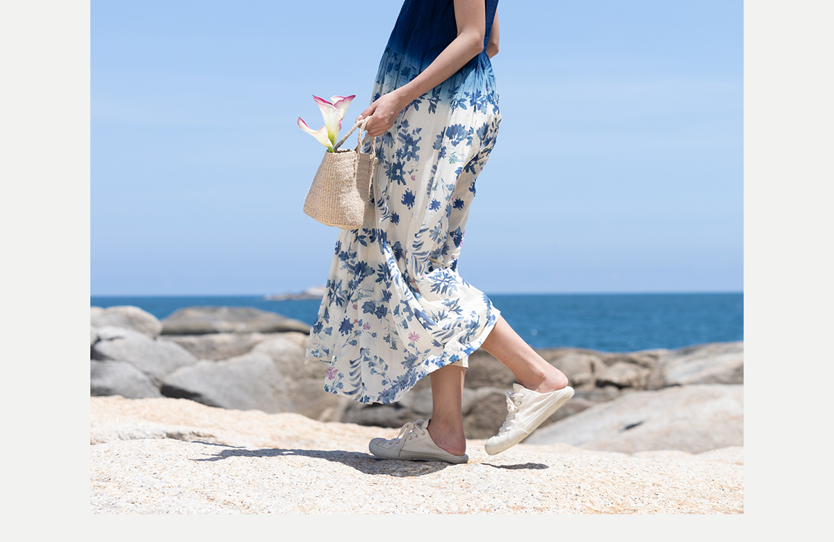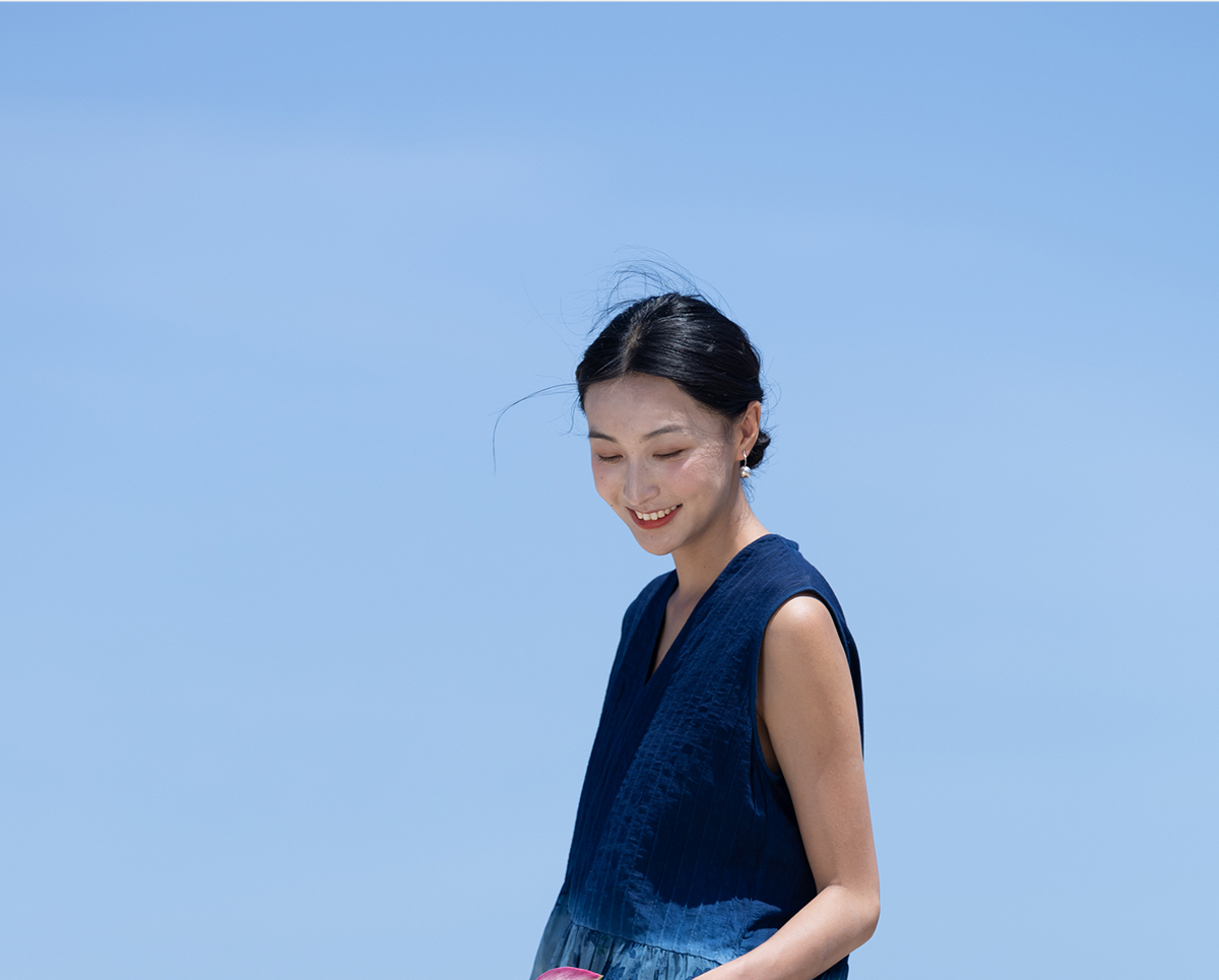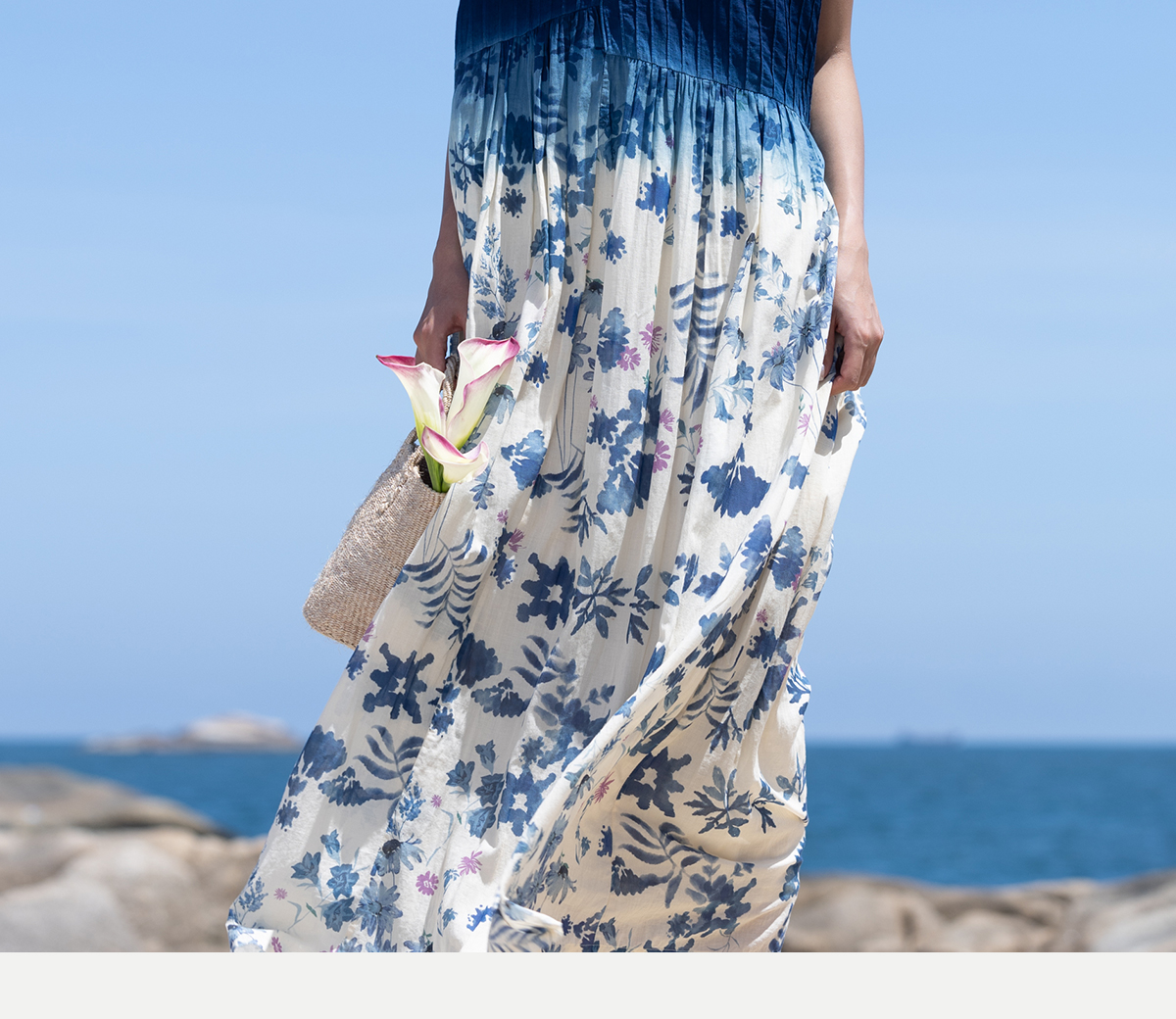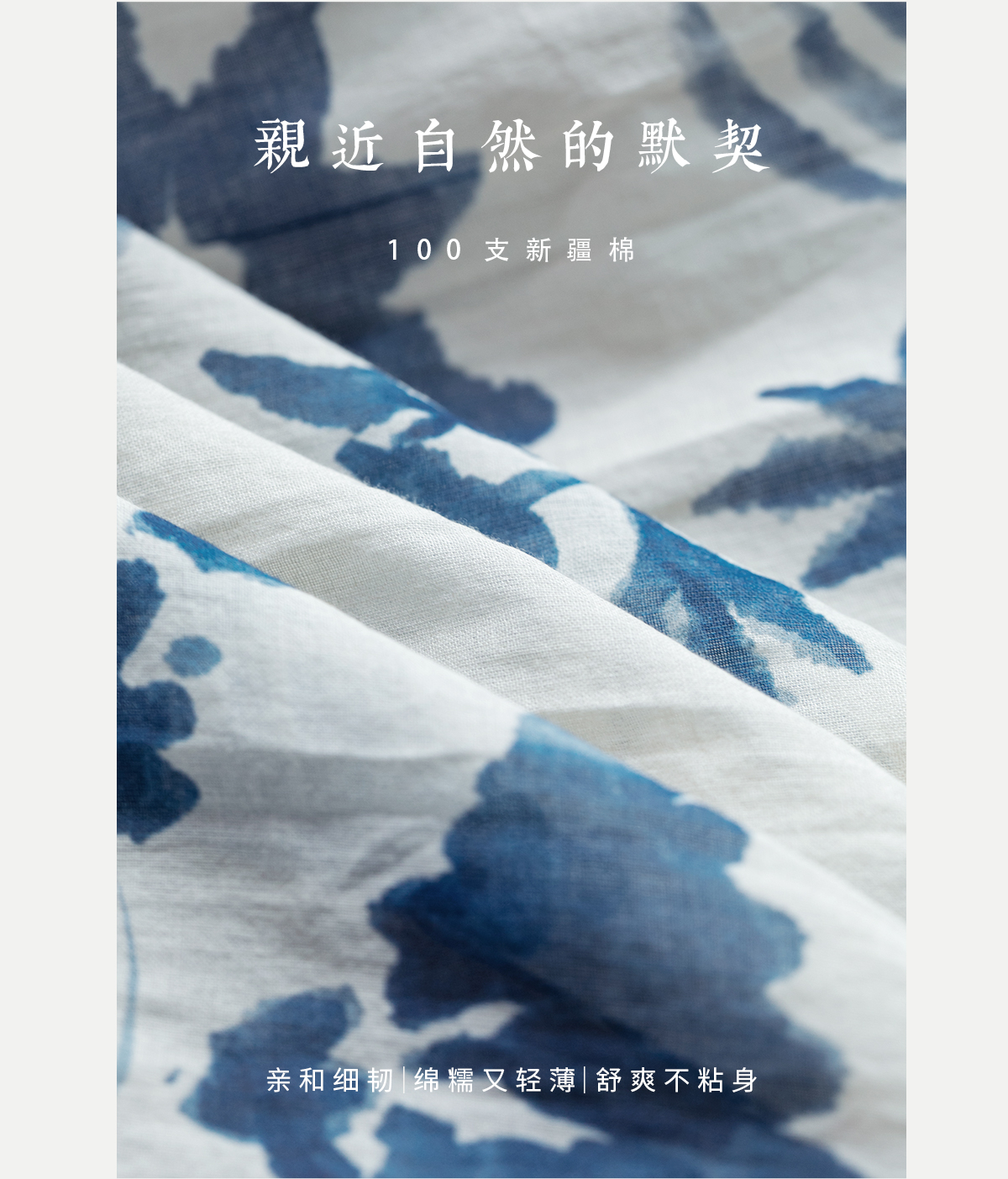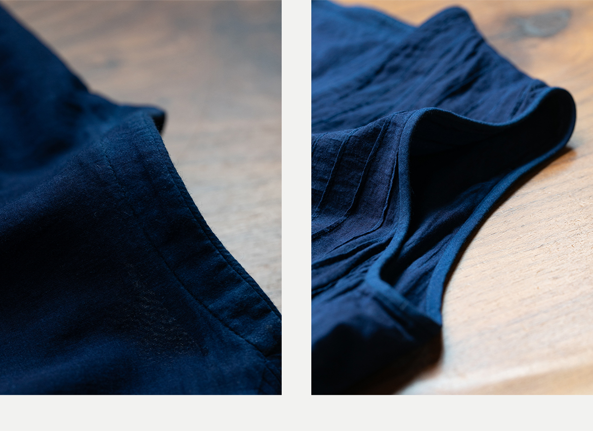 牧衣游 吊蓝染印花100支纯棉连衣裙新款无袖文艺宽松长裙 城烟雨