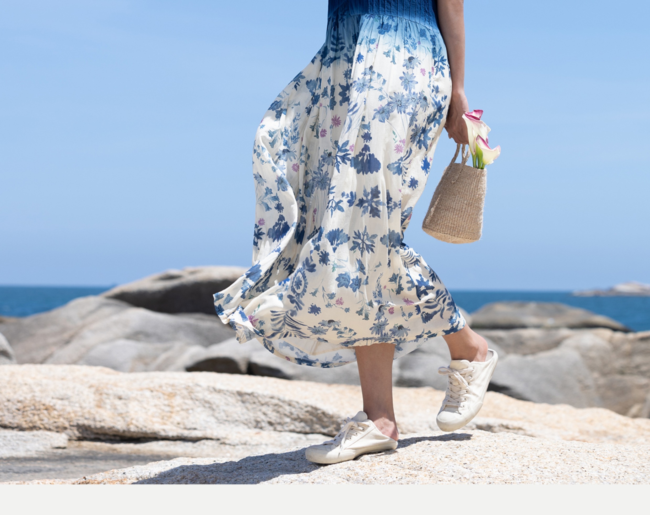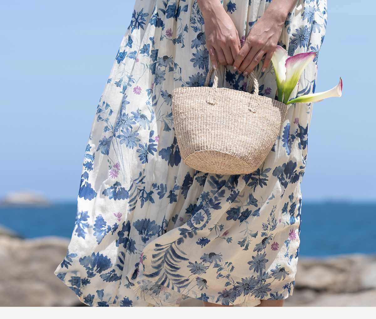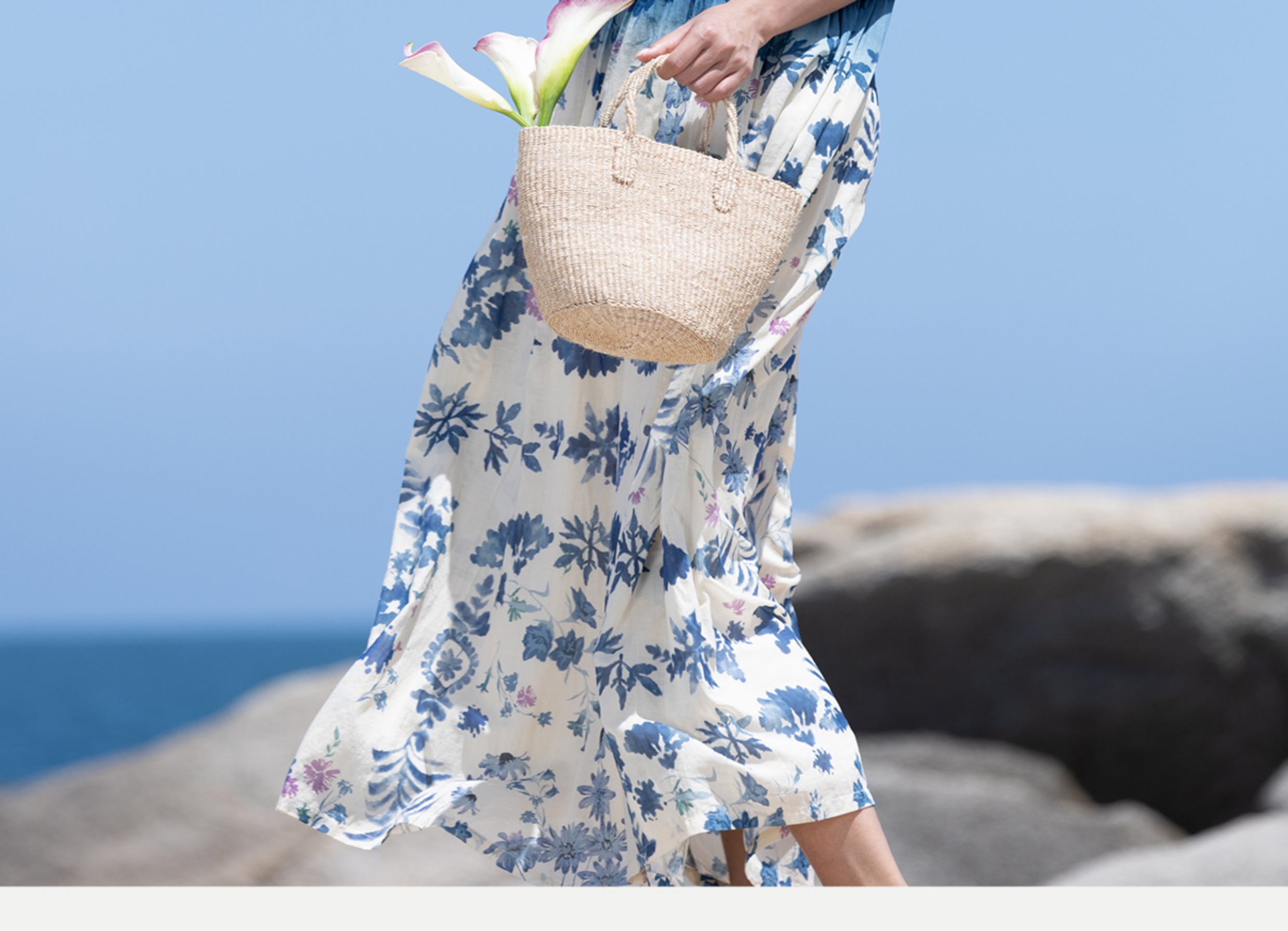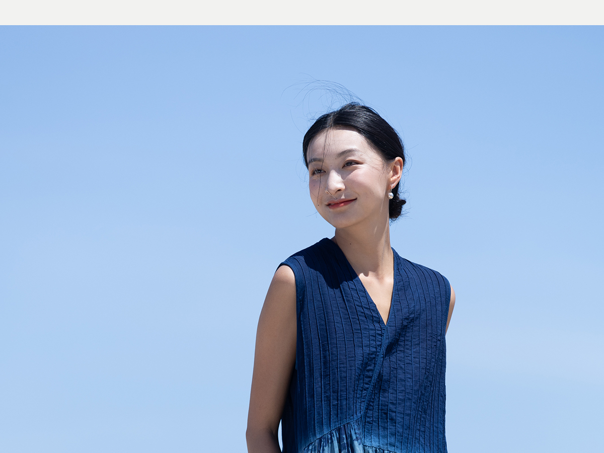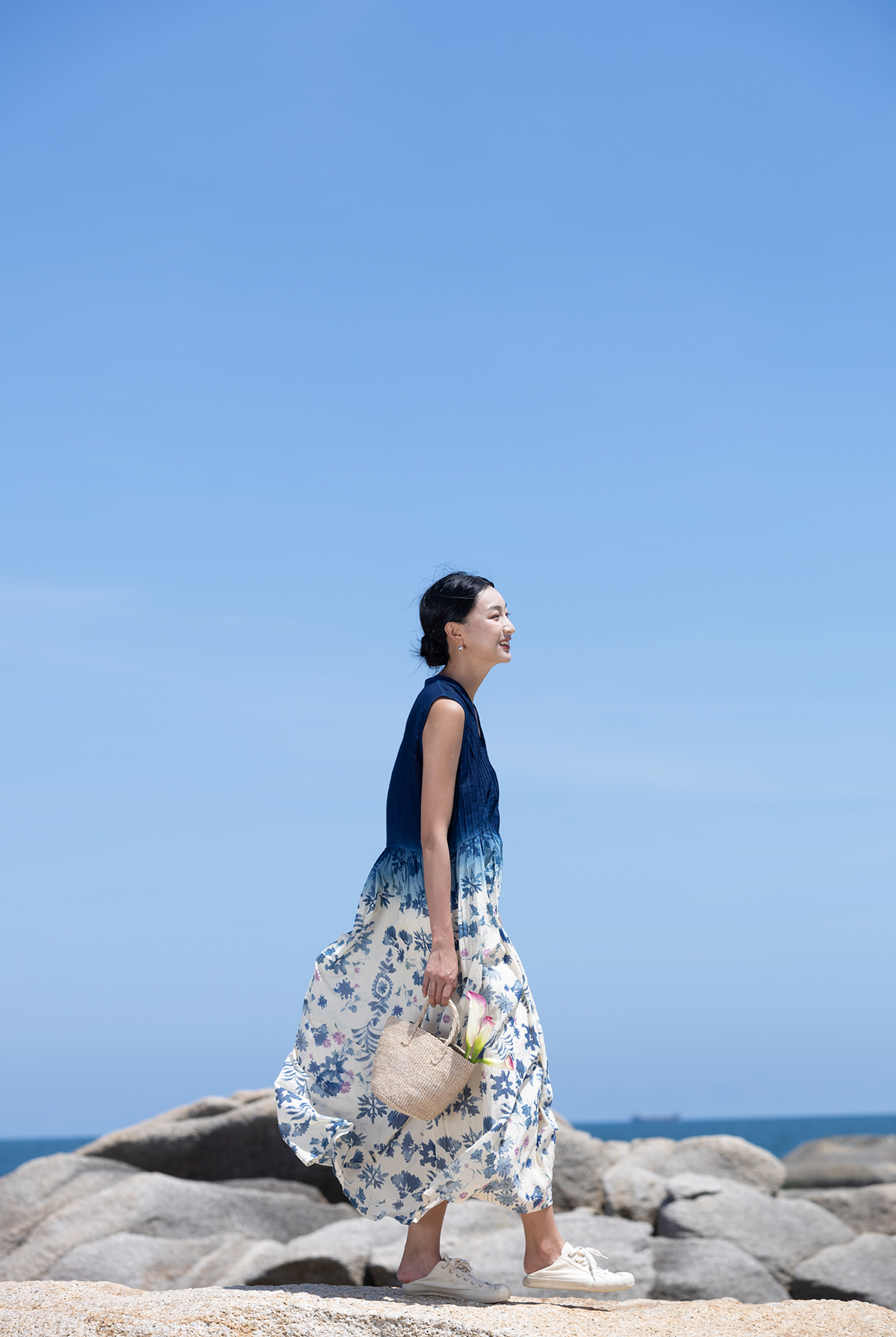牧衣游 吊蓝染印花100支纯棉连衣裙新款无袖文艺宽松长裙 城烟雨