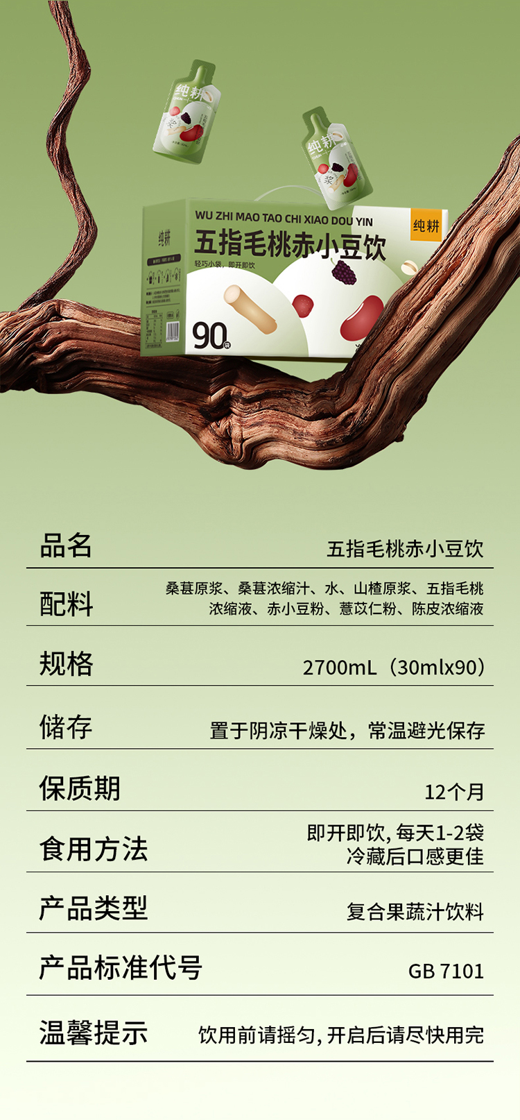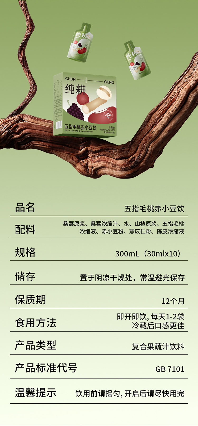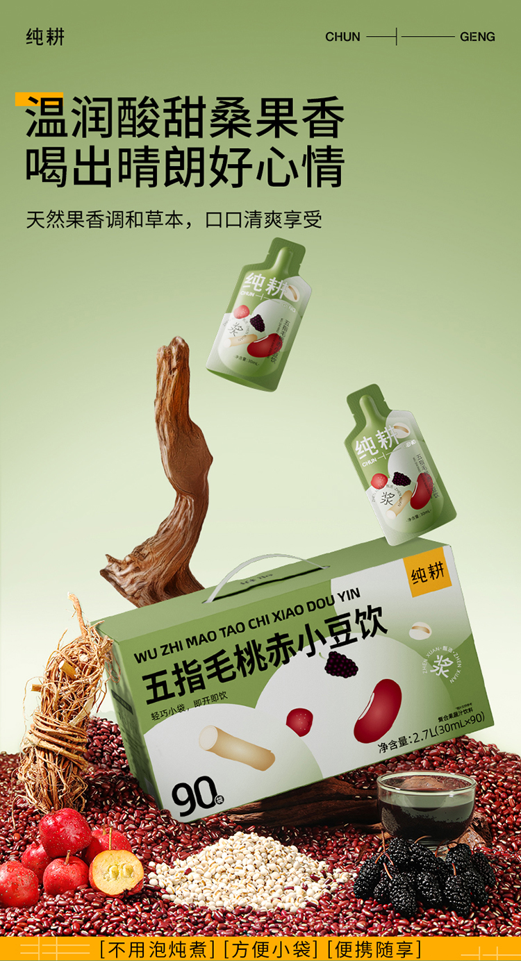 纯耕五指毛桃赤小豆饮300ml、1200ml、2700ml,五指毛桃赤小豆薏米仁山楂陈皮桑葚浆饮料