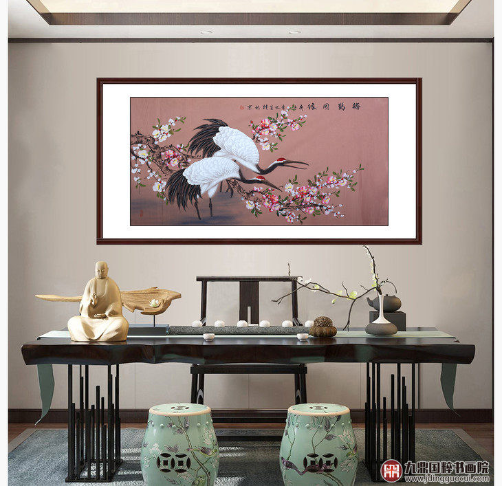 李兆生《梅鹤因缘》68*138cm 花鸟横幅作品 茶室/书房挂画