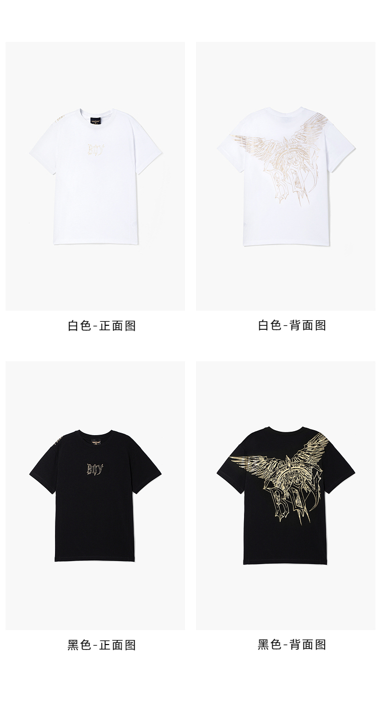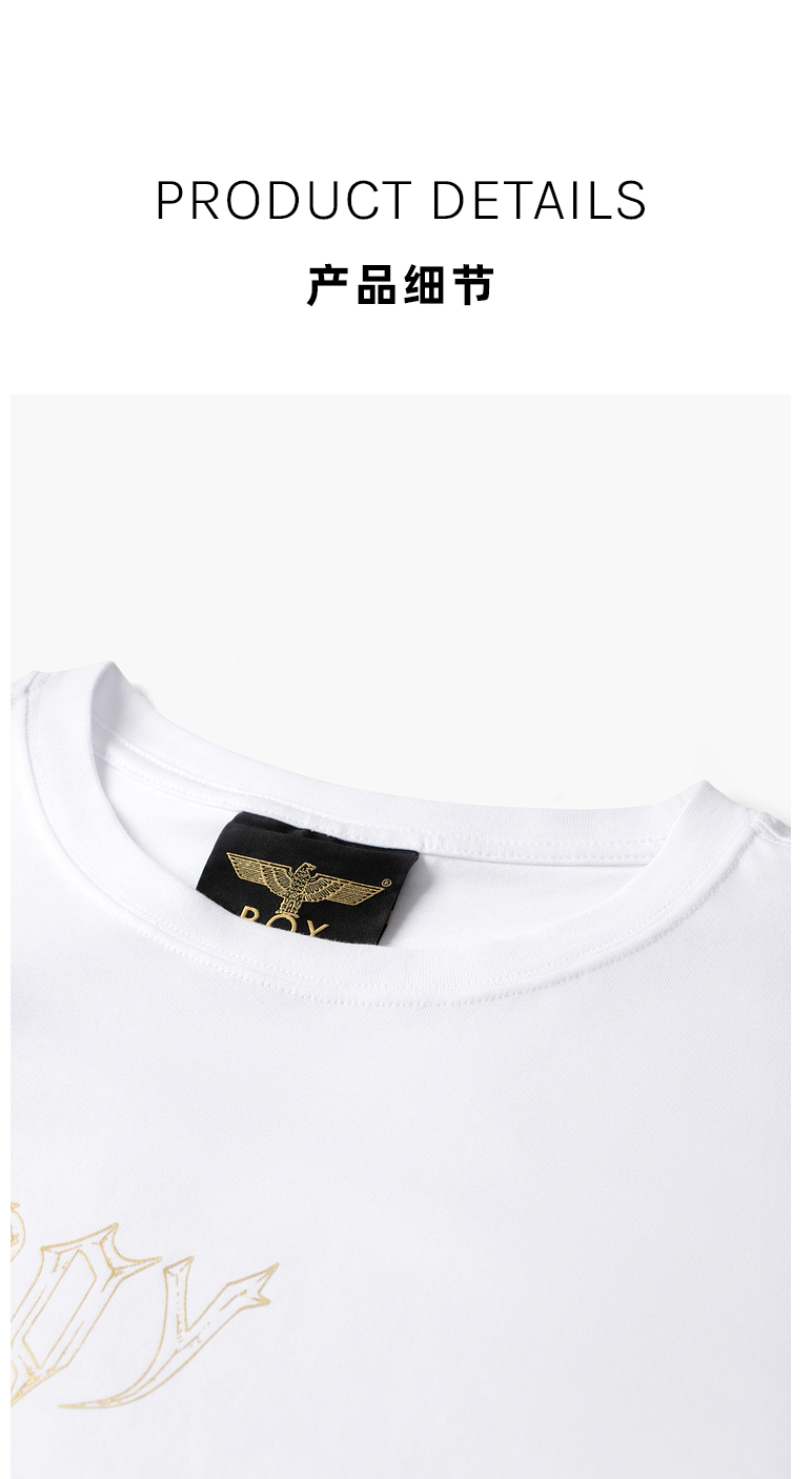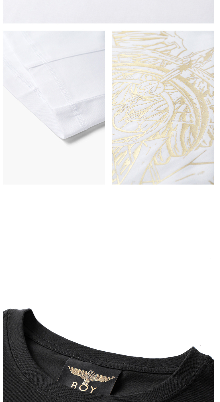 BOYLONDON短袖T恤男女同款22春夏新品烫金印花街头风上衣B221NO100101