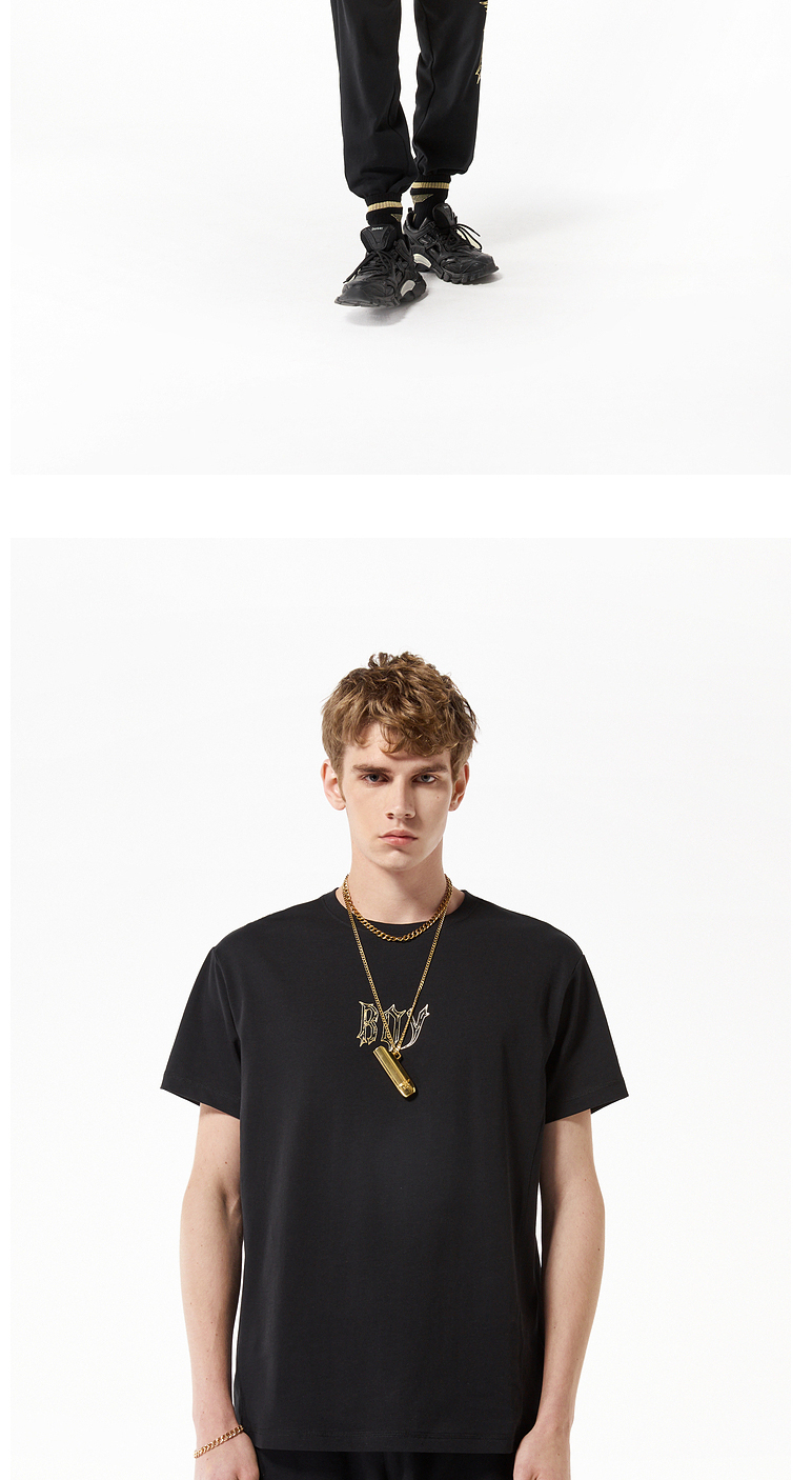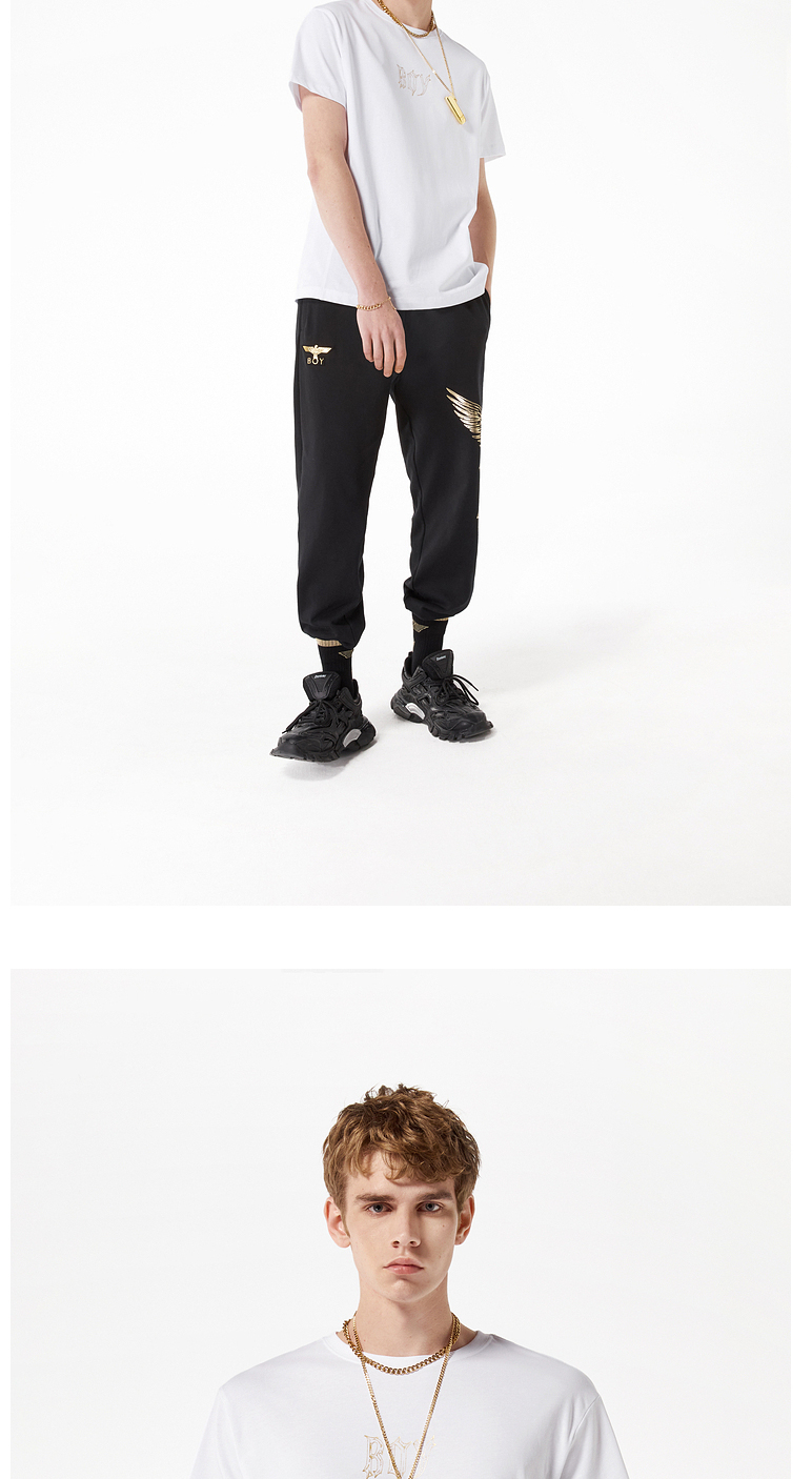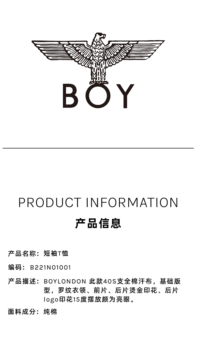 BOYLONDON短袖T恤男女同款22春夏新品烫金印花街头风上衣B221NO100101