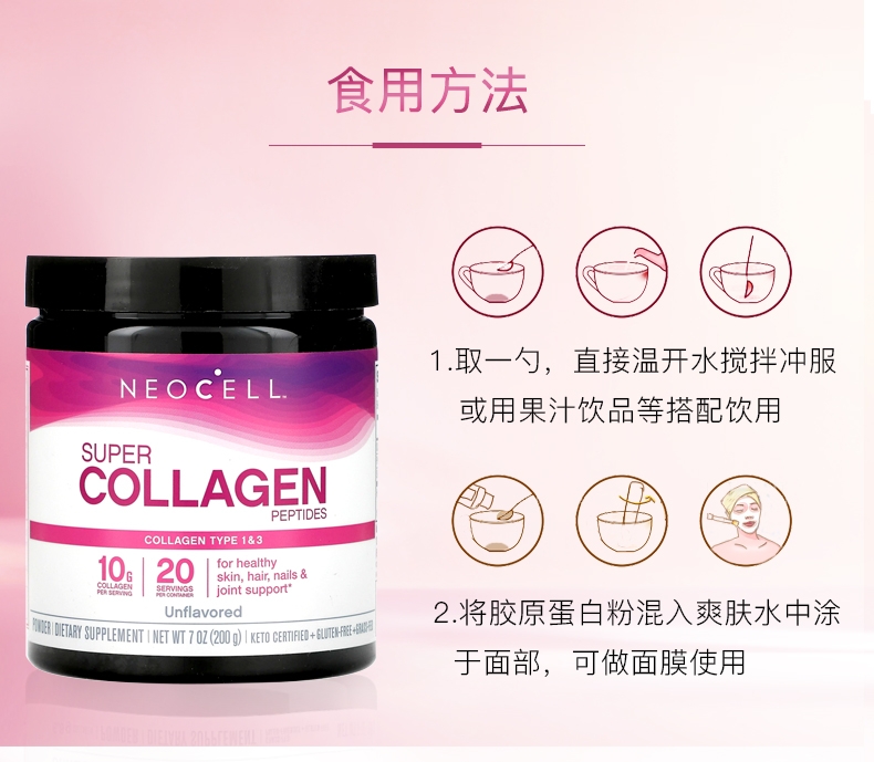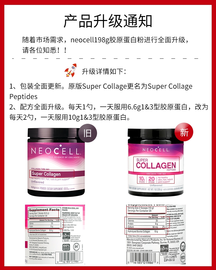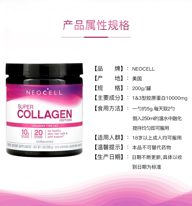 【商品名称】美国NeoCell水解胶原蛋白粉200g/罐