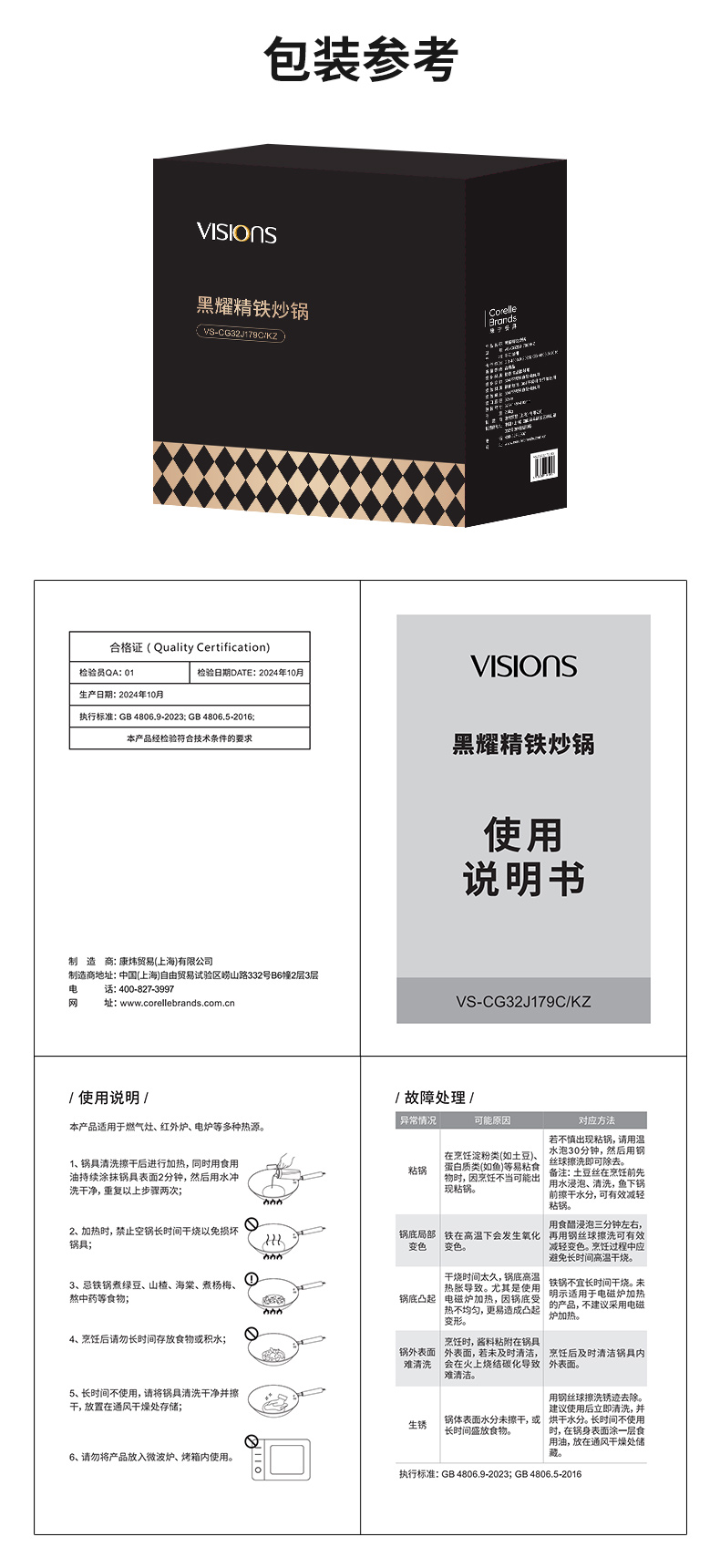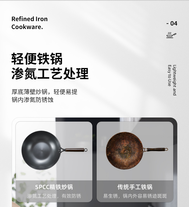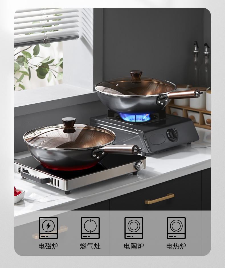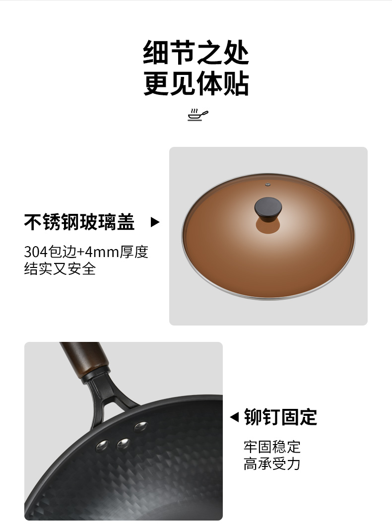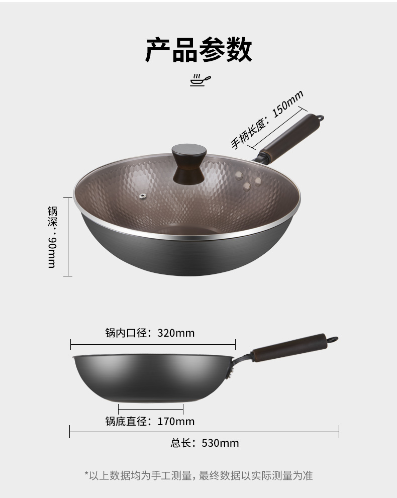 【自营】 康宁 铁锅32cm 无涂层精铁炒锅 黑耀精铁 家用爆炒