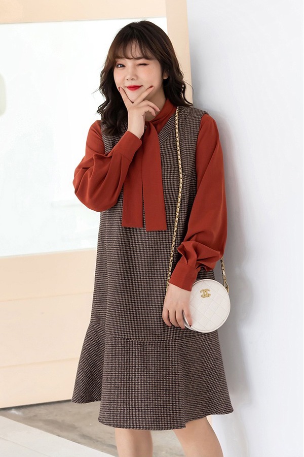 amadella 减龄飘带衬衫背带裙套装 10413