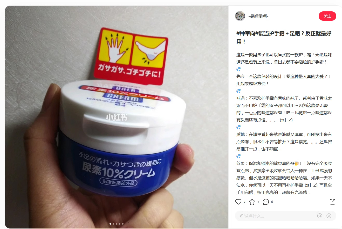 同时它还有软化角质的功效,除了涂手足,还可以涂手肘膝盖,