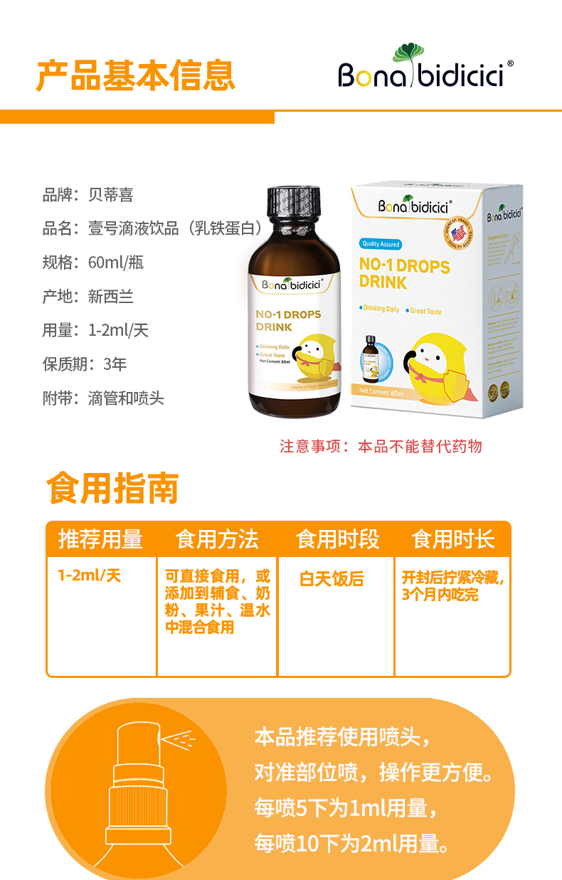 原装进口贝蒂喜壹号饮液婴幼儿乳铁蛋白儿童宝宝婴儿免疫60ml*1【72小时发货】