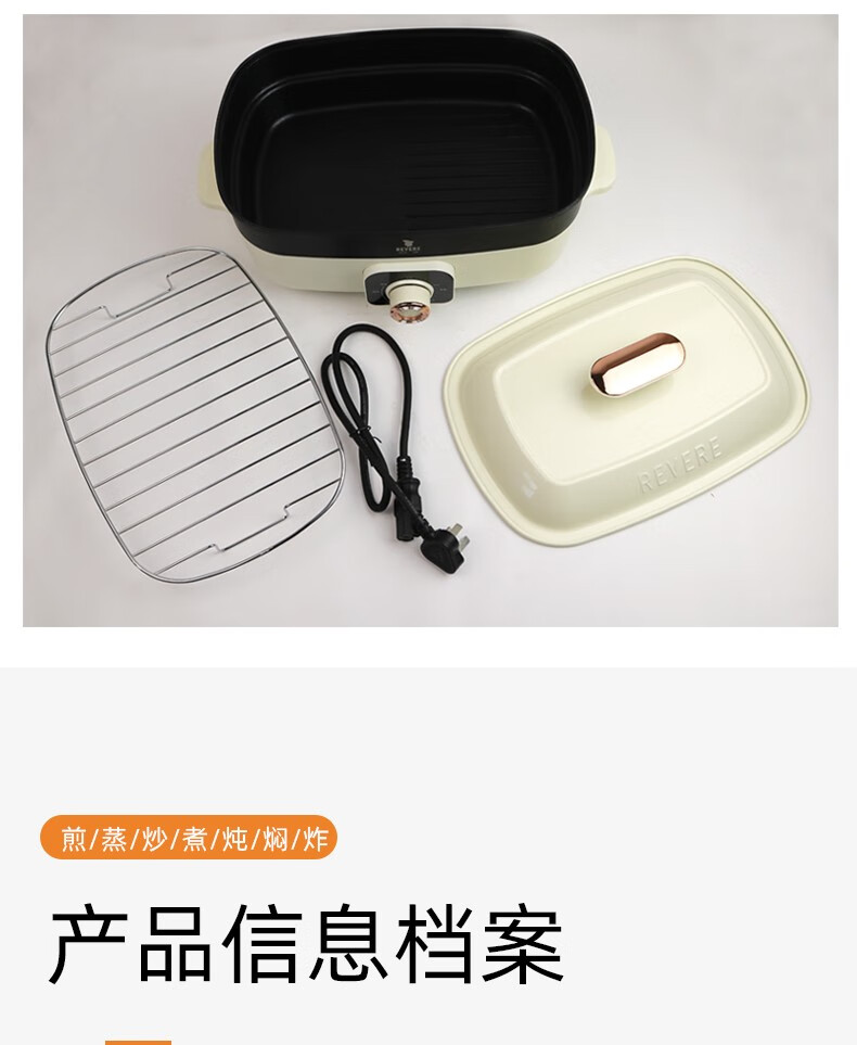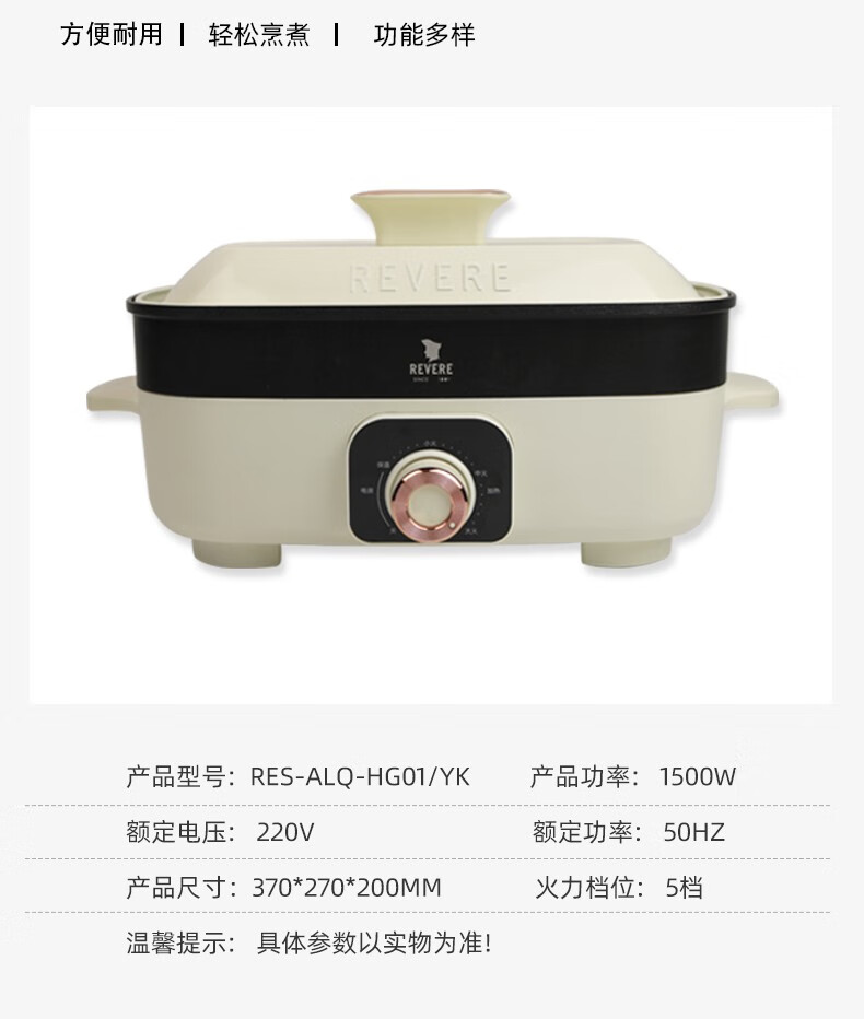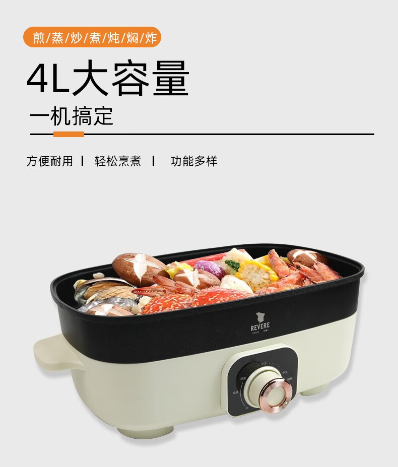 【小家电】REVERE家用4L多功能料理锅RES-ALQ-HG01/YK HF