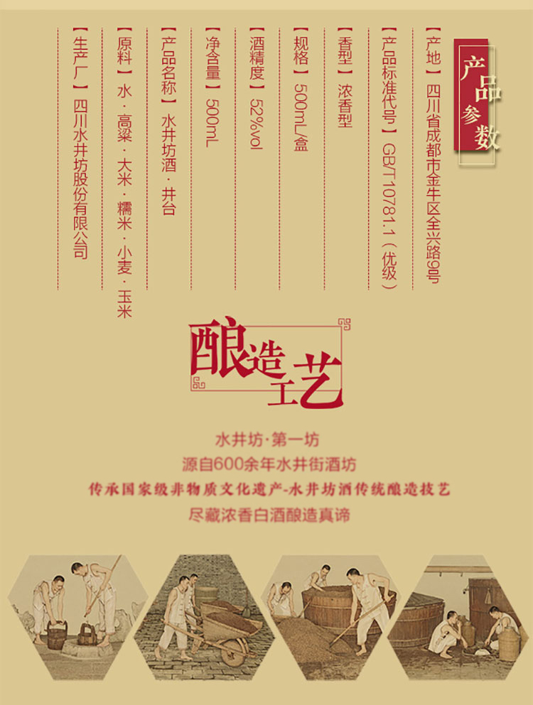 水井坊 臻酿八号 52度 浓香型白酒 500ml 单瓶装(整箱为6瓶)