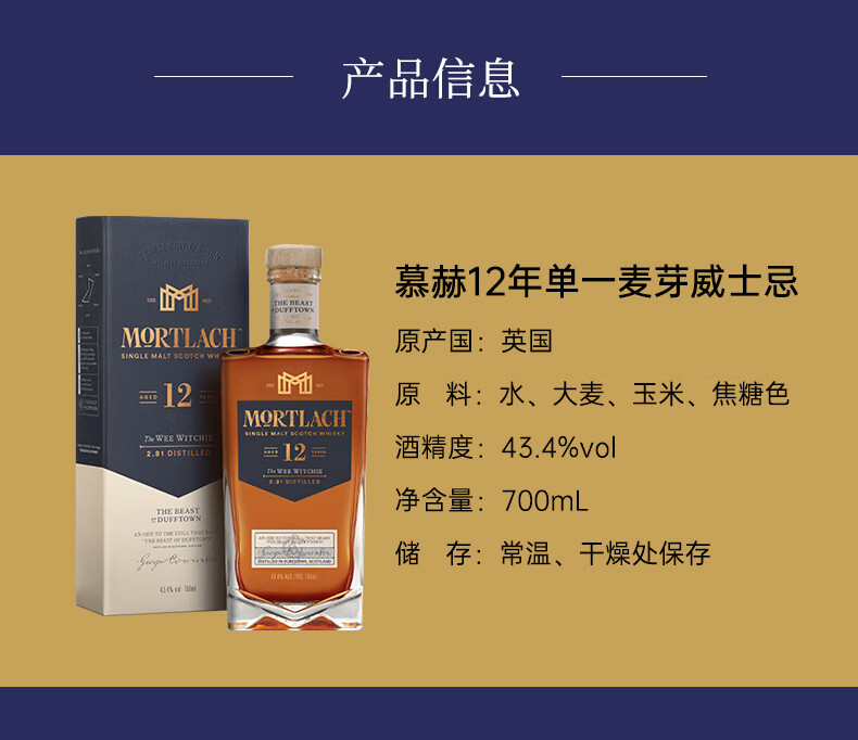慕赫12年苏格兰单一麦芽威士忌 750ml