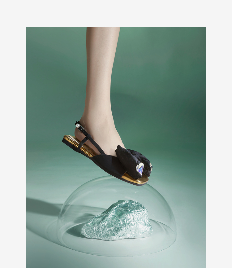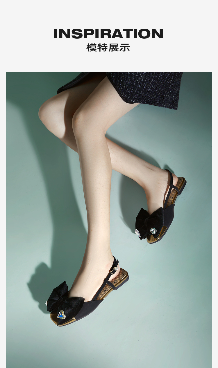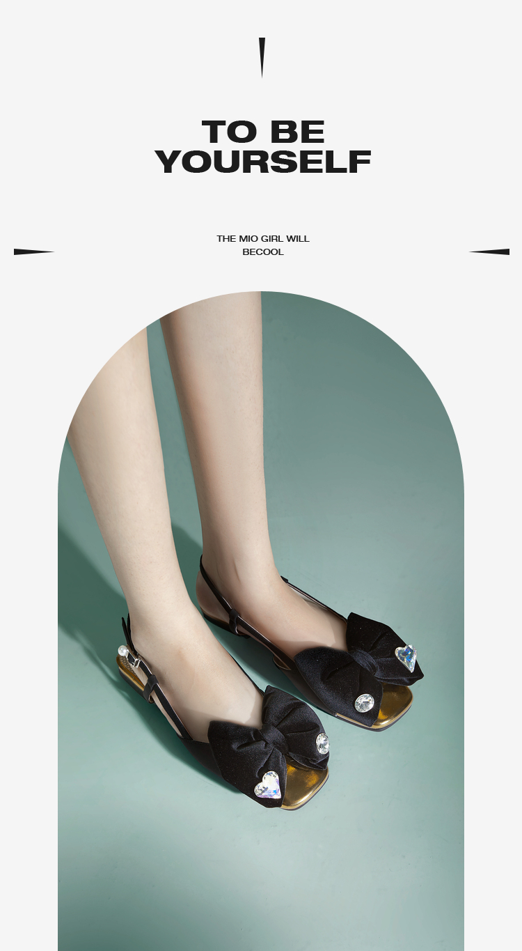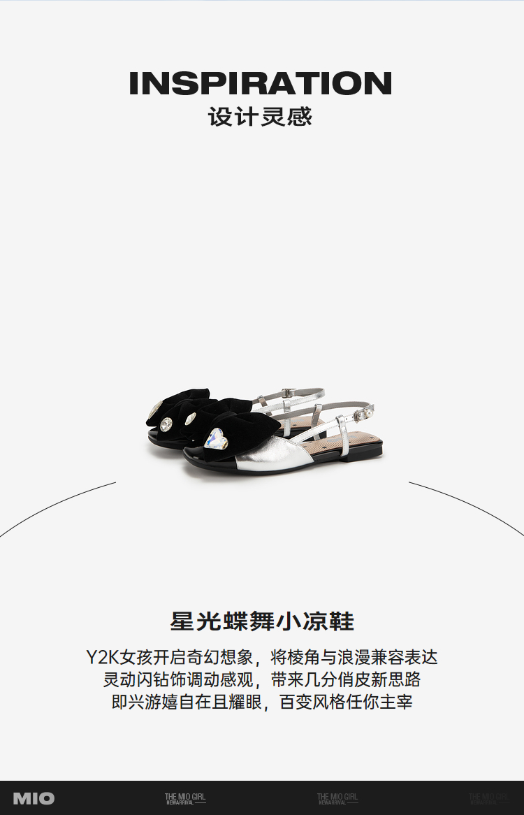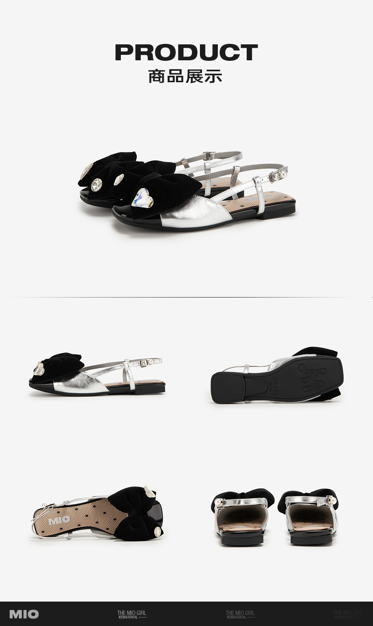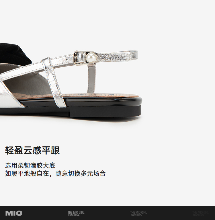 MIO米奥夏季平跟时装凉鞋闪钻减龄蝴蝶结后空通勤小凉鞋女M242201602