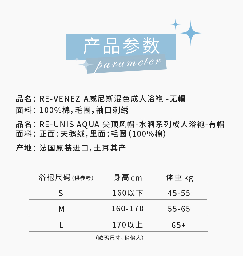 【Rêve par Essix】【VENEZIA】【UNIS AQUA】浴袍多色-(威尼斯混色/尖顶风帽水涧系列白色)