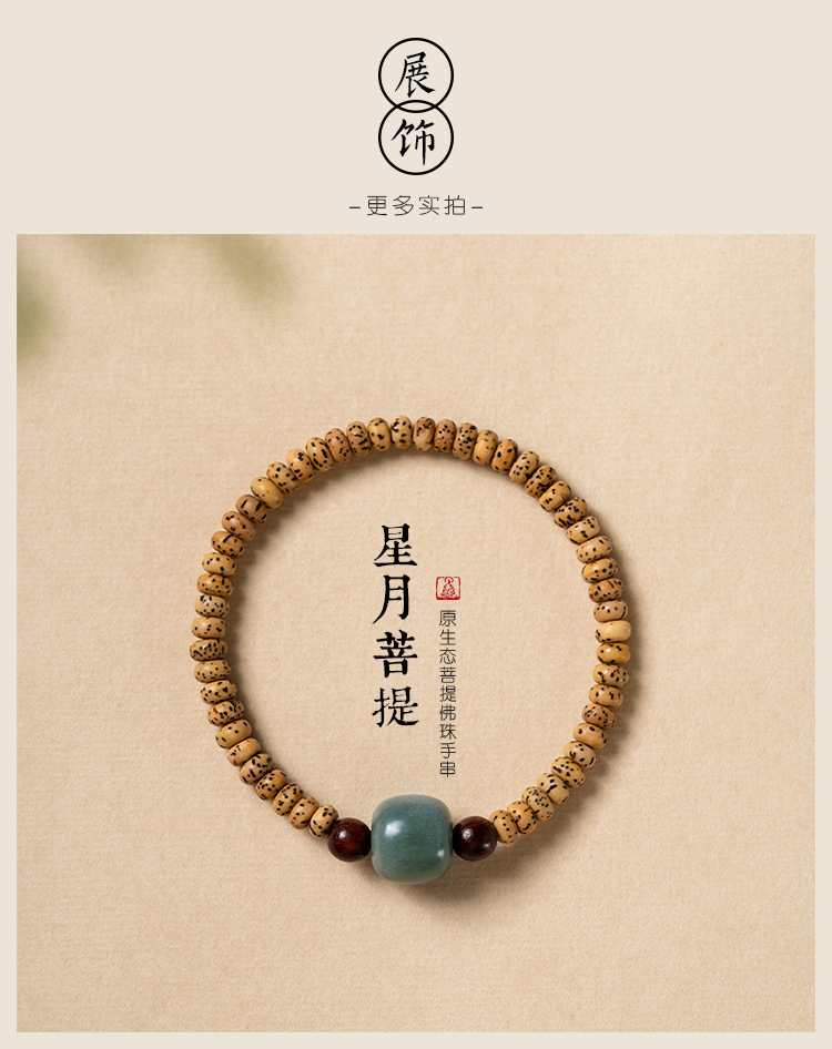「颗颗精选!星月菩提」原生态星月菩提手串女天然绿菩提佛珠菩提根细手链清新甜美复古风时尚饰品