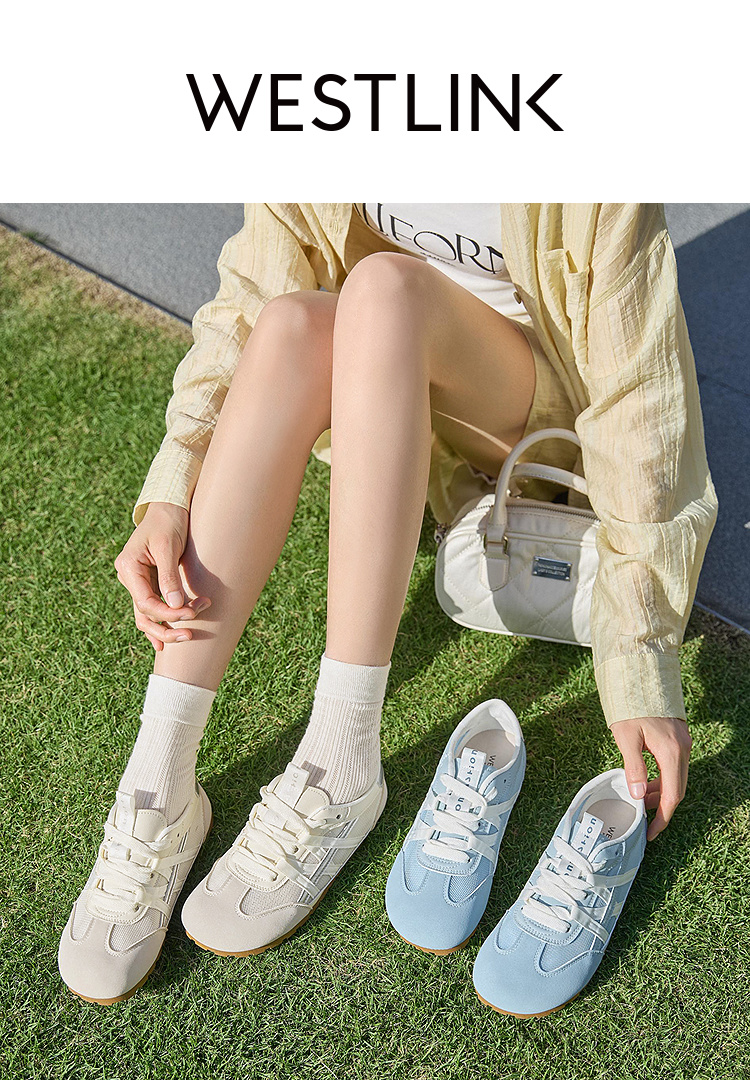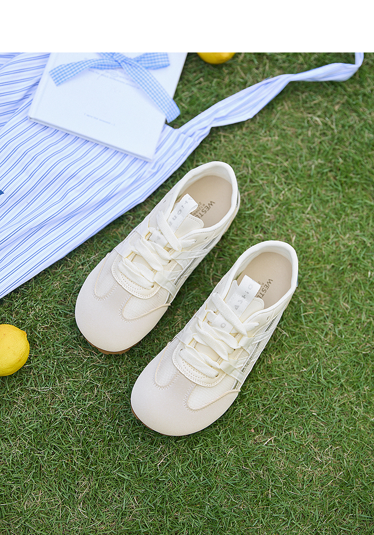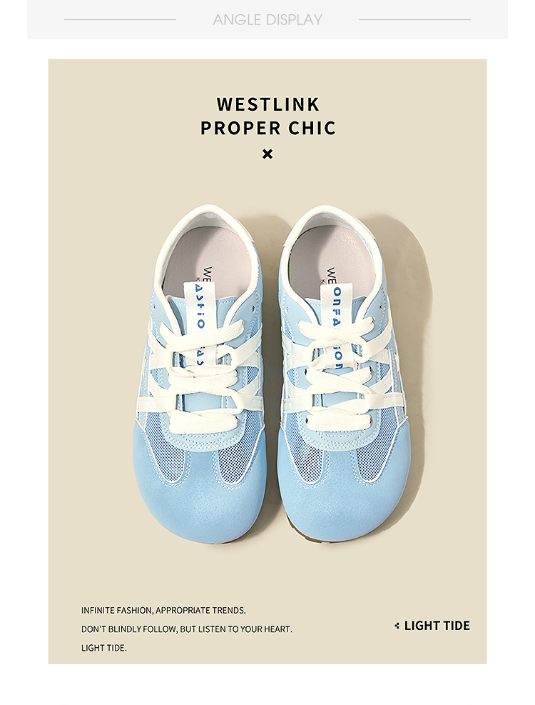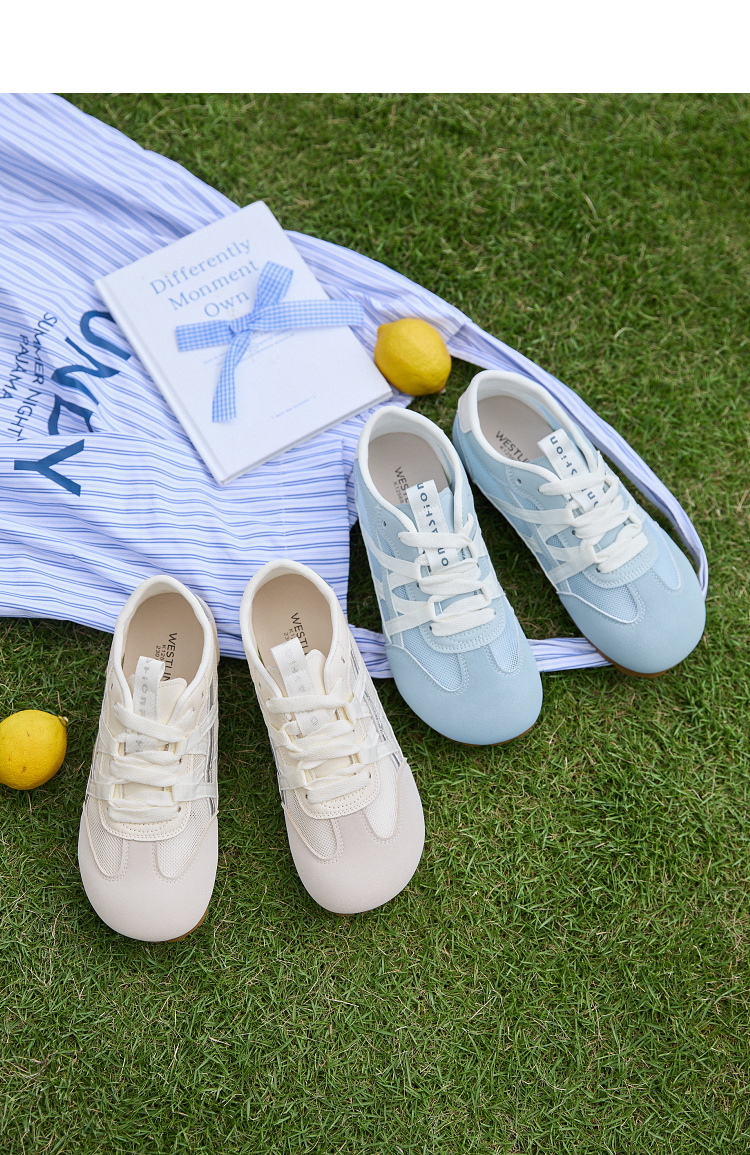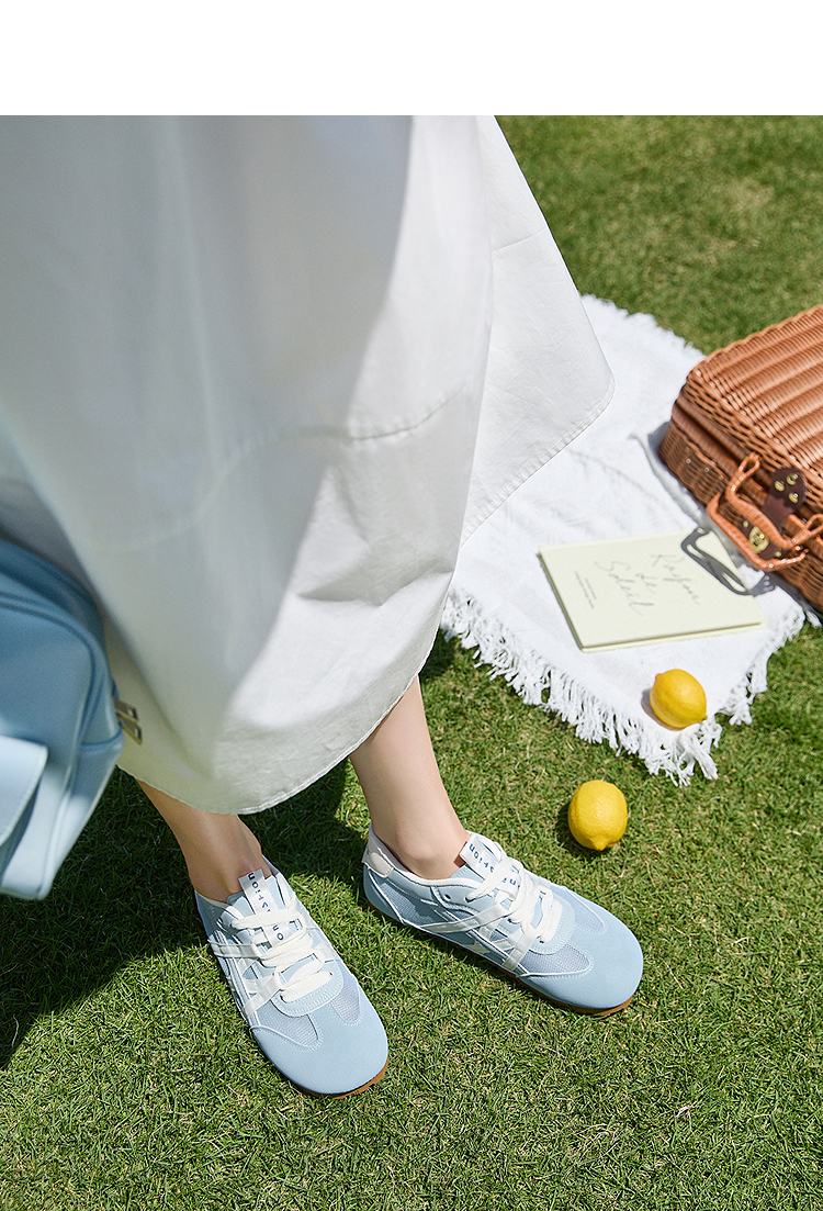 西遇夏季薄款德训鞋女新款百搭小白鞋平底蓝色透气网面运动鞋K1256842