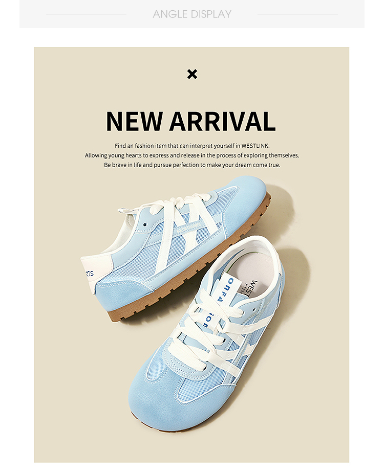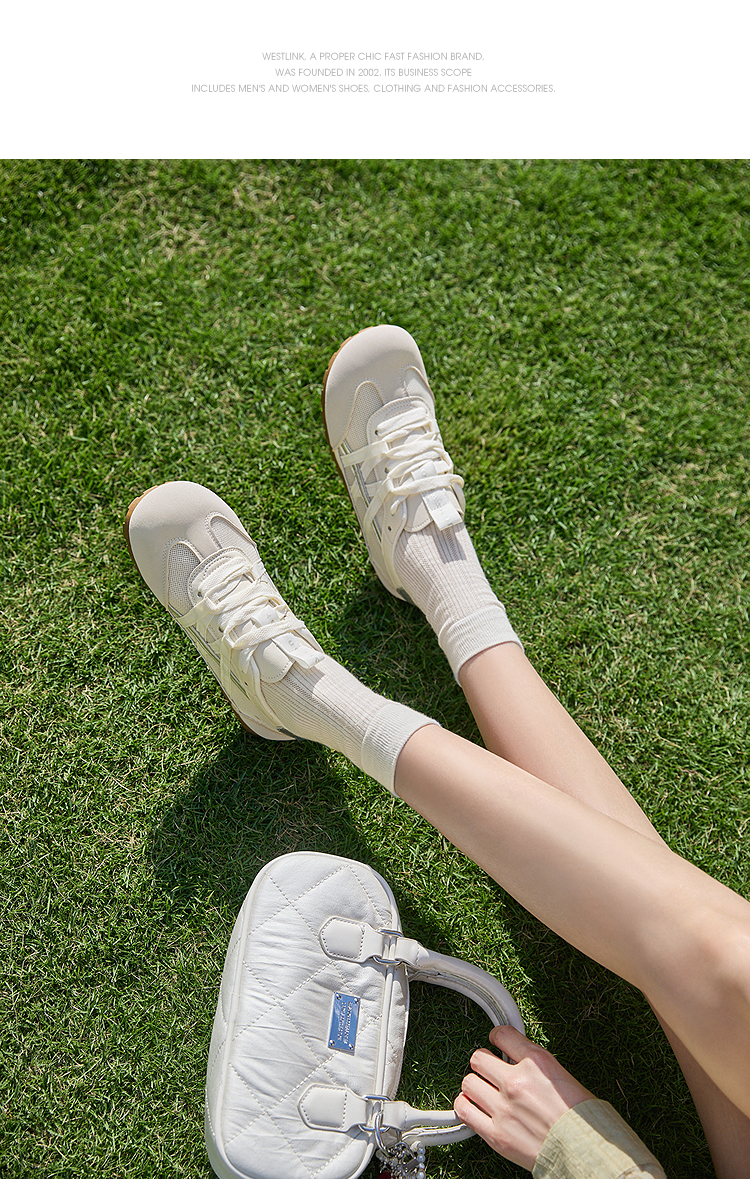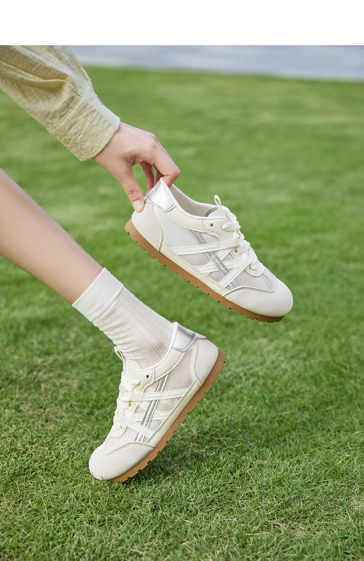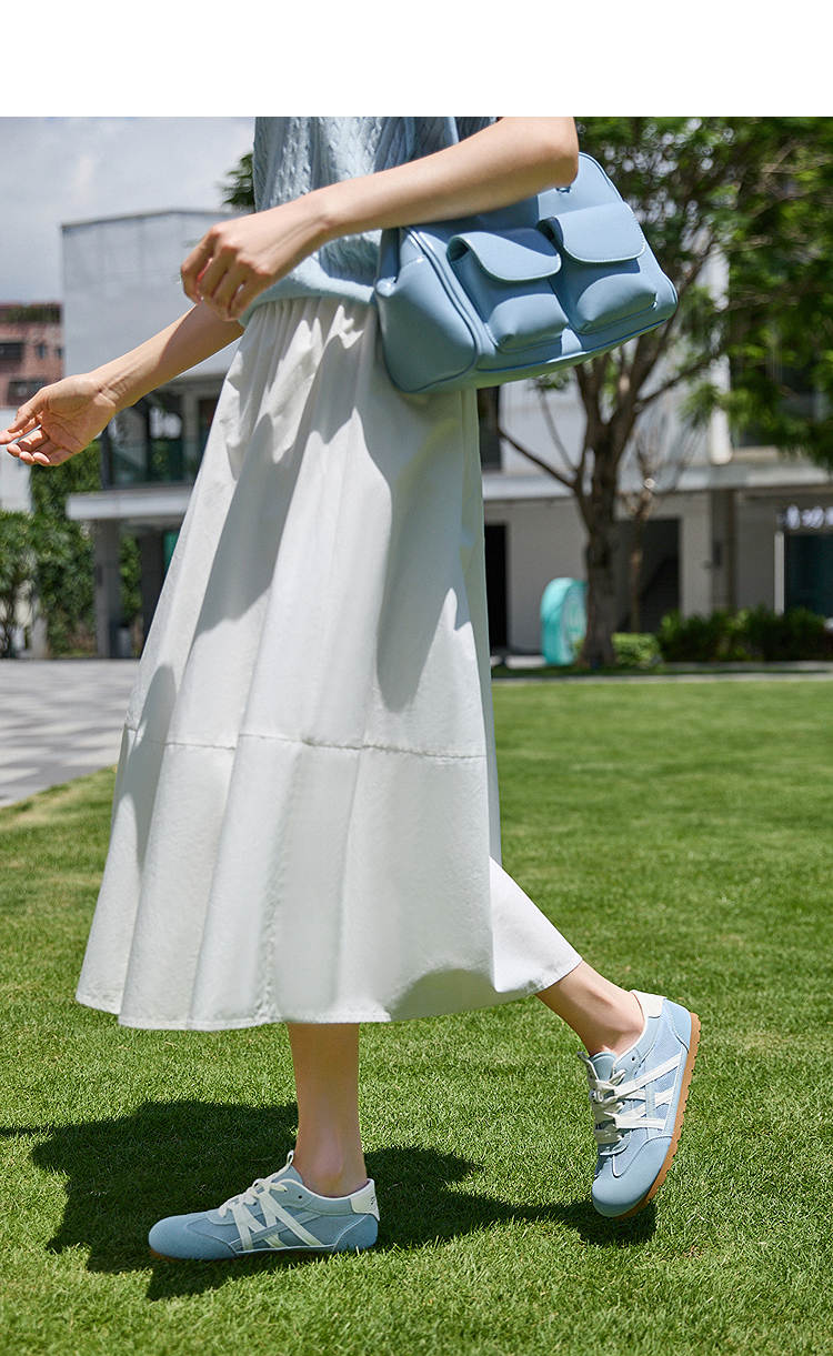 西遇夏季薄款德训鞋女新款百搭小白鞋平底蓝色透气网面运动鞋K1256842