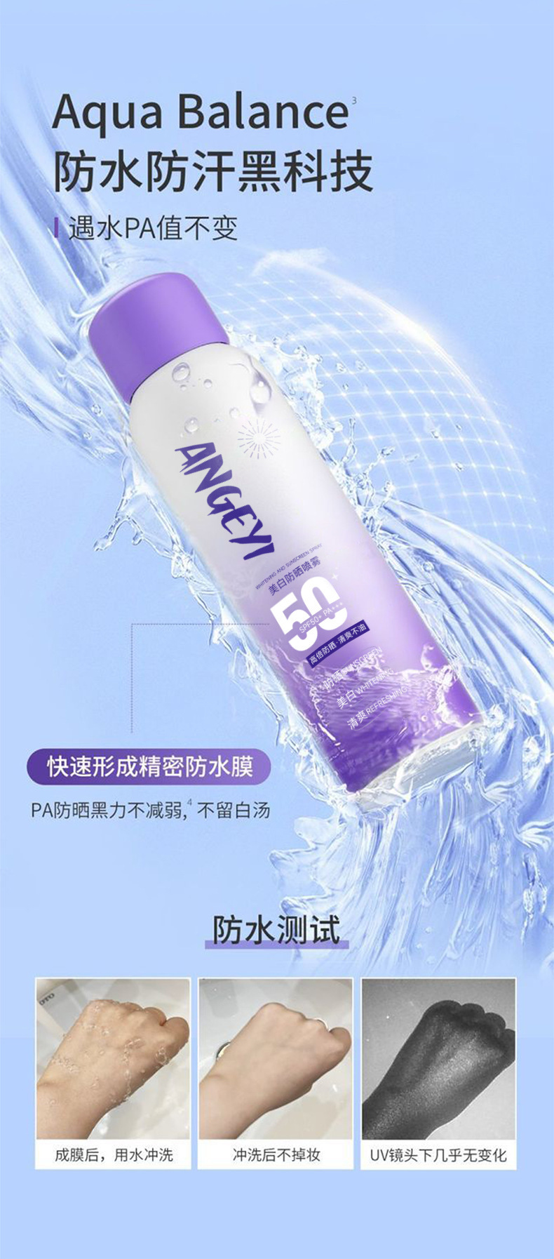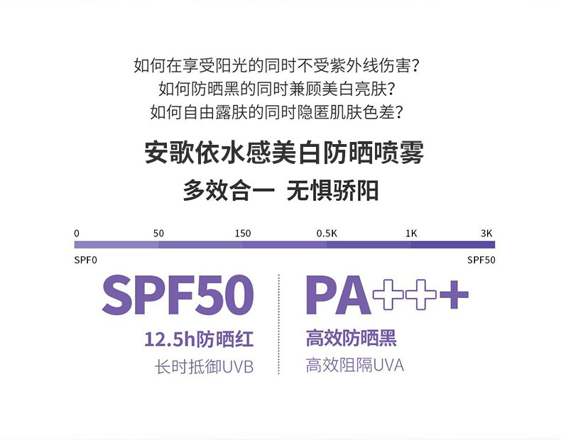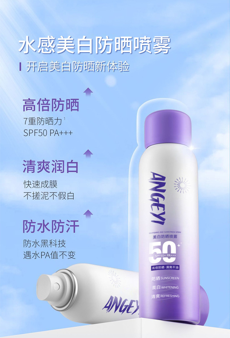 实力防晒【夏季户外美白防晒喷雾】安歌依美白全身通用小光圈防水防汗防紫外线防晒霜