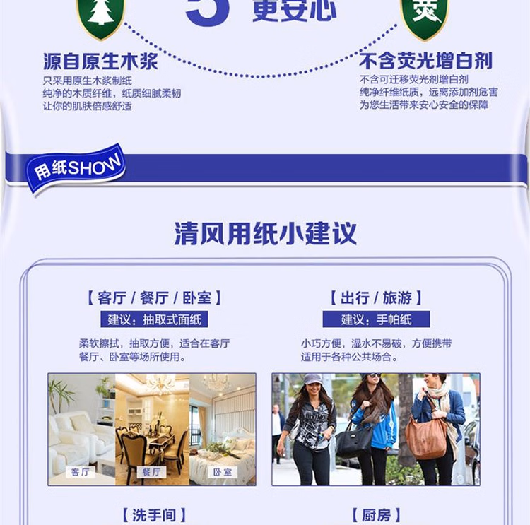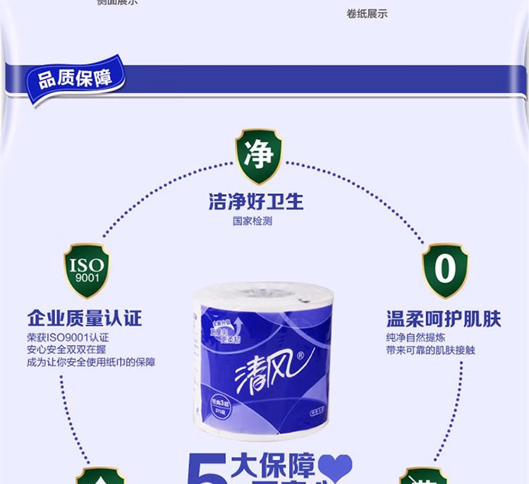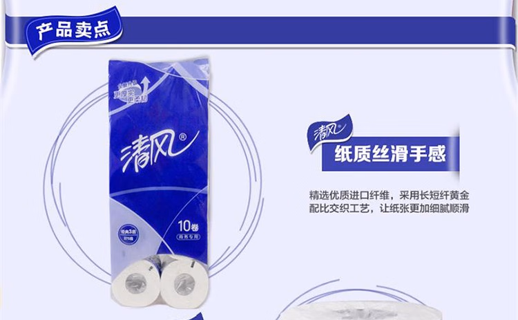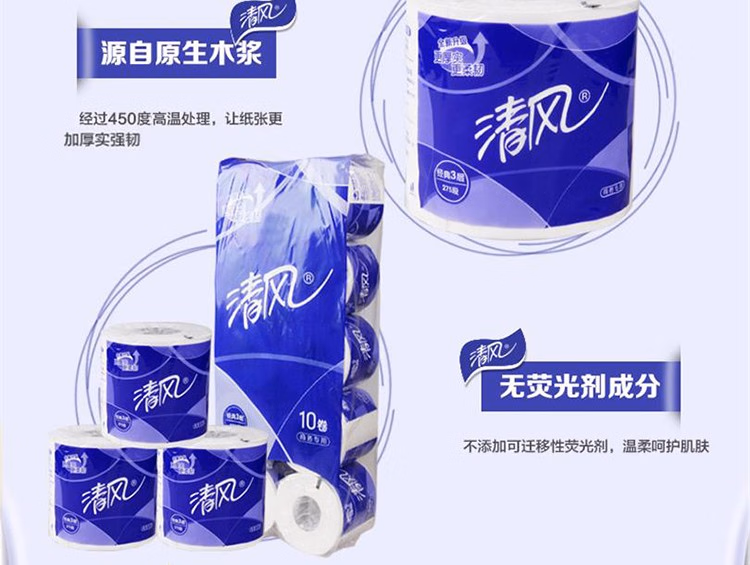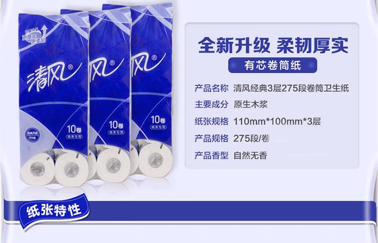 清风有芯卷筒纸3层平纹卷筒纸B22AA5 10卷/提