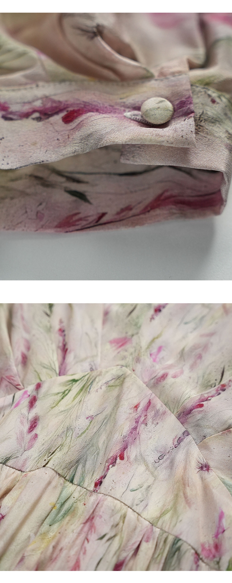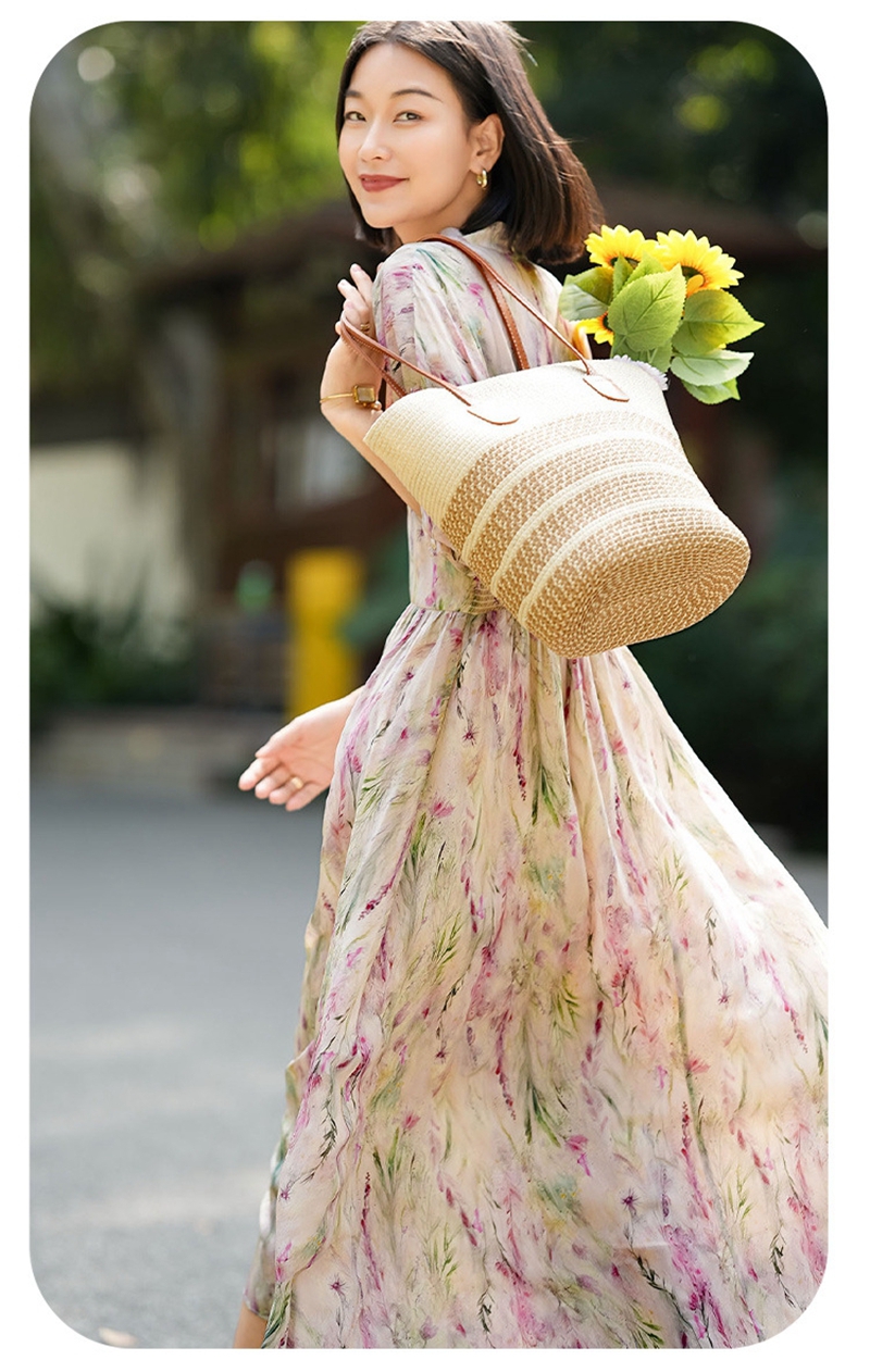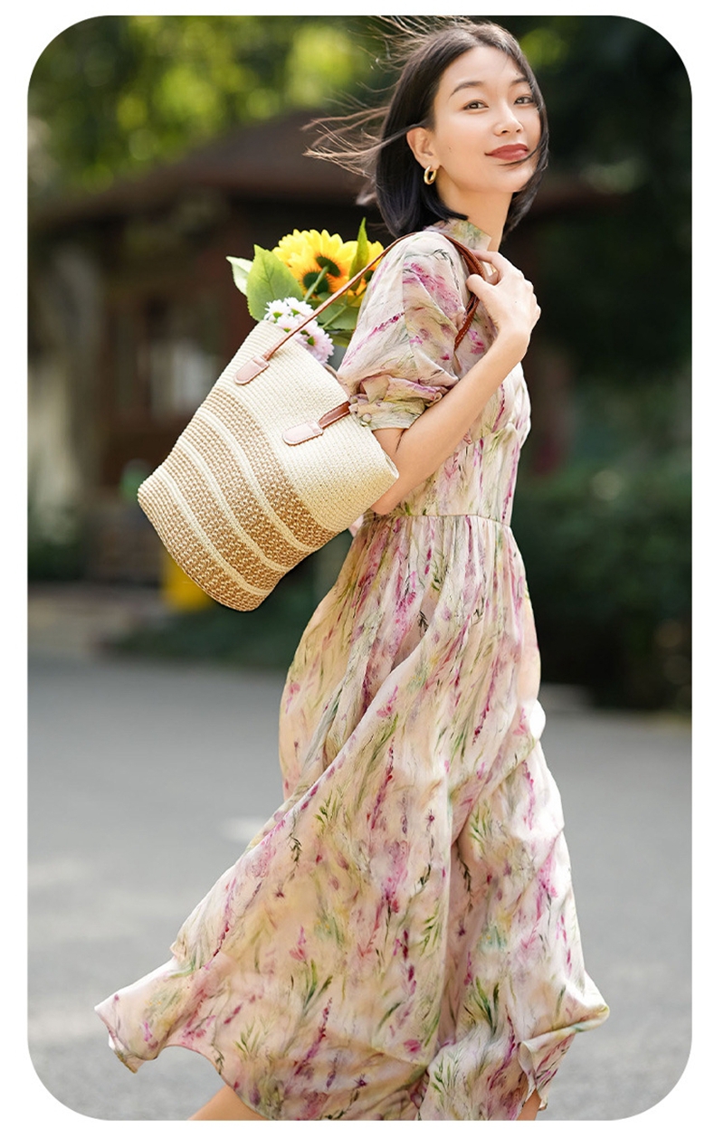 时尚法式V领七分袖收腰气质碎花连衣裙