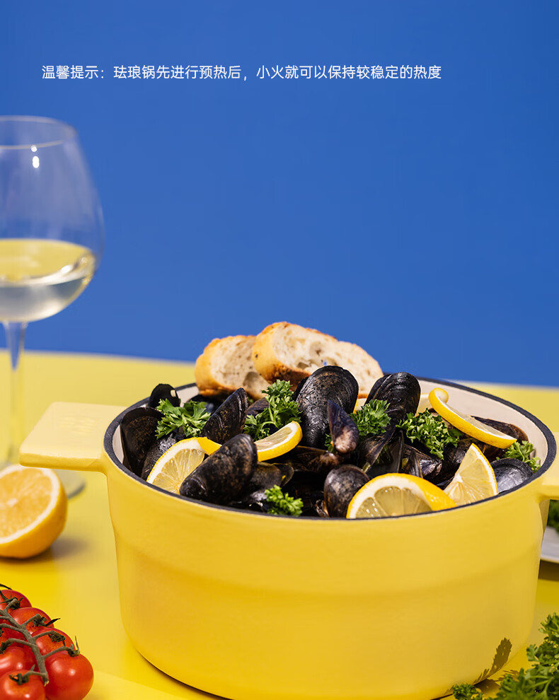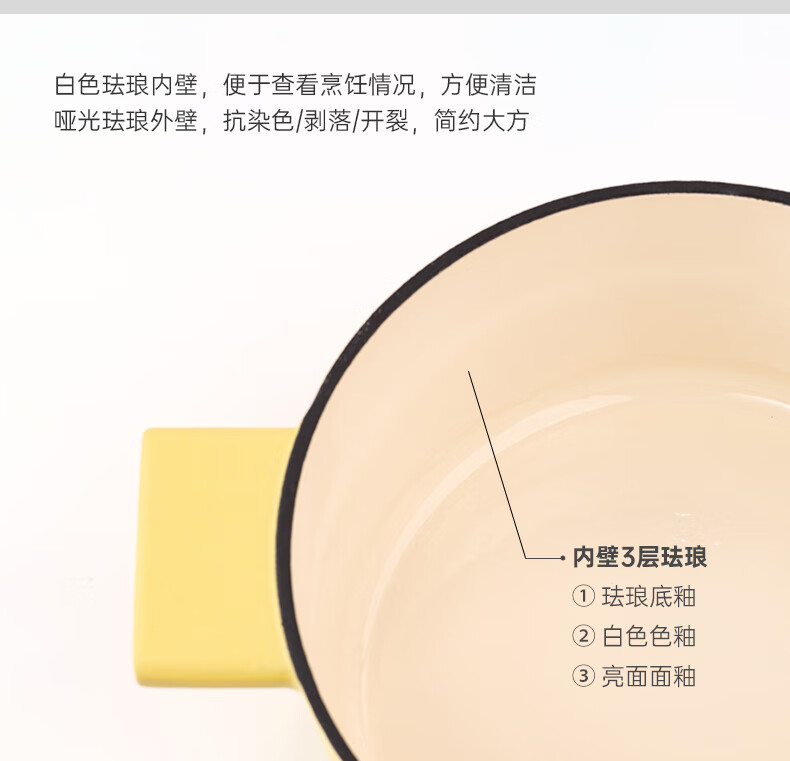 【样品特惠4折,仅1个,无货退款】zuutii珐琅锅铸铁锅微压炖煮锅蒸锅煲汤锅-柠檬黄24cm
