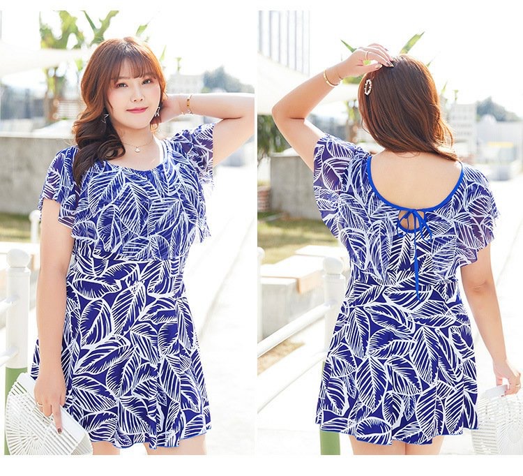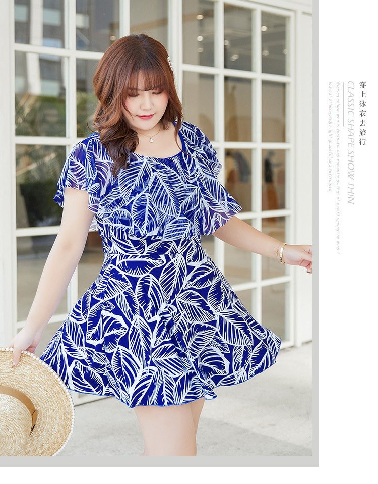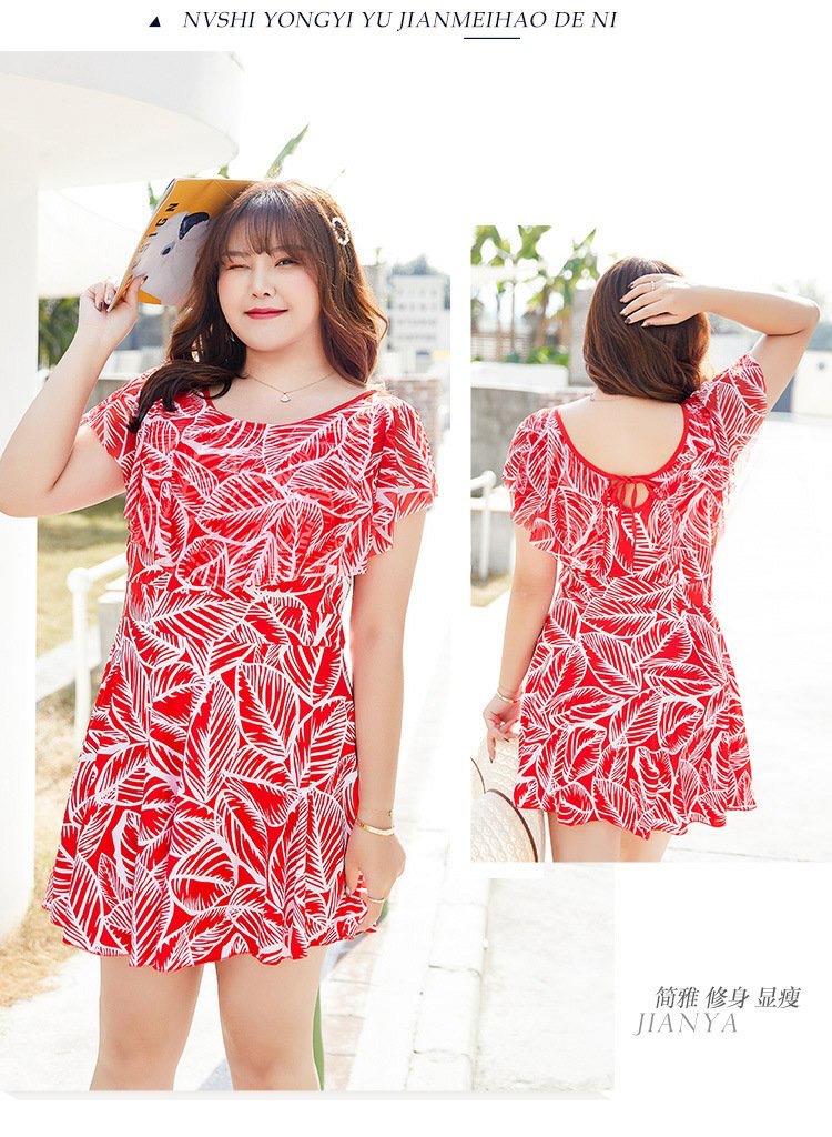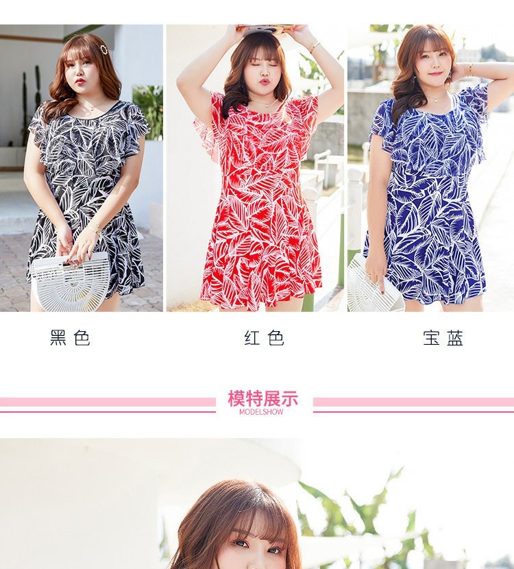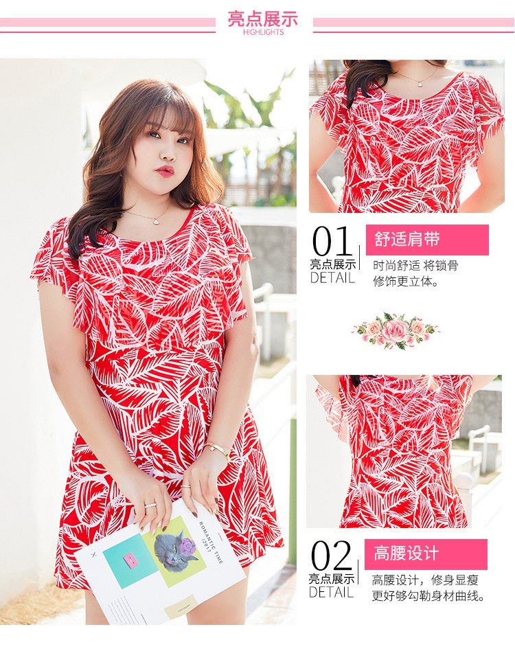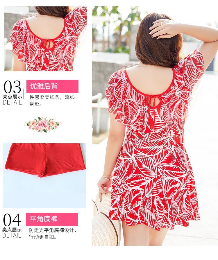 大码女泳衣胖MM 连体平角裙式泳衣 加肥加大码显瘦遮肚保守温泉妈妈泳装