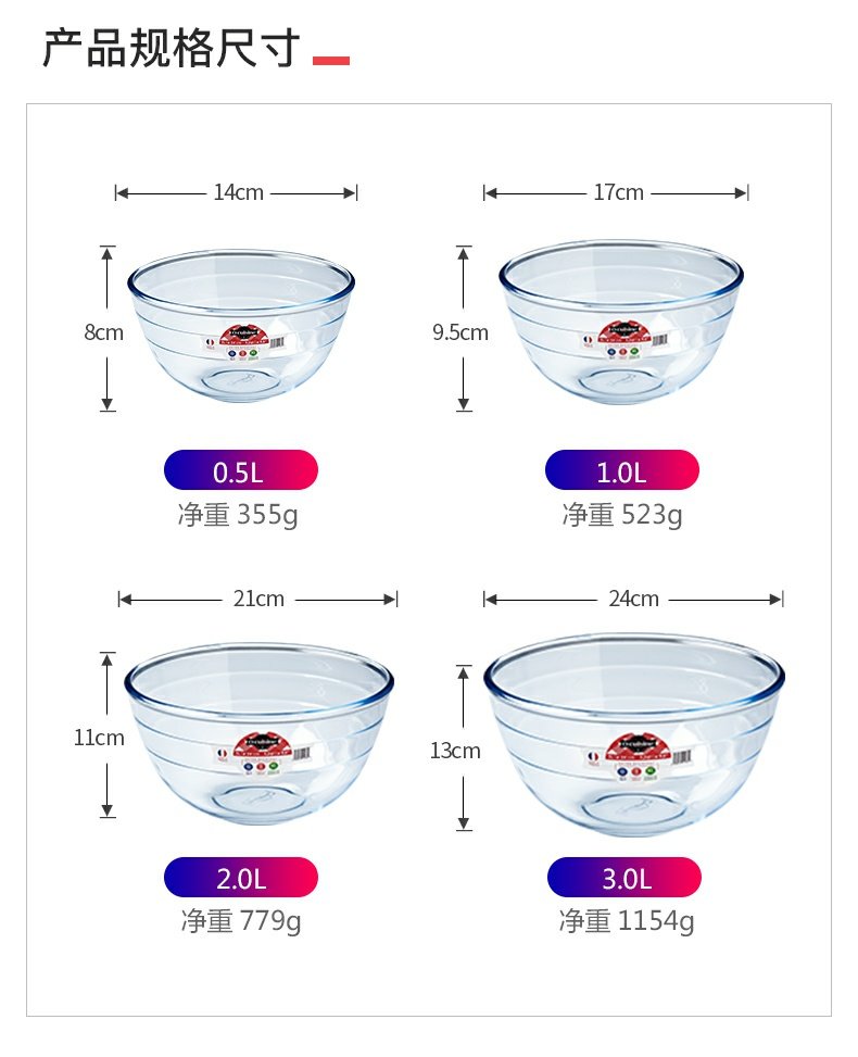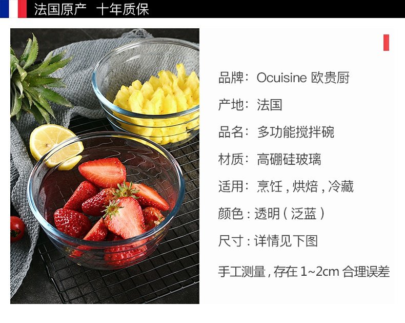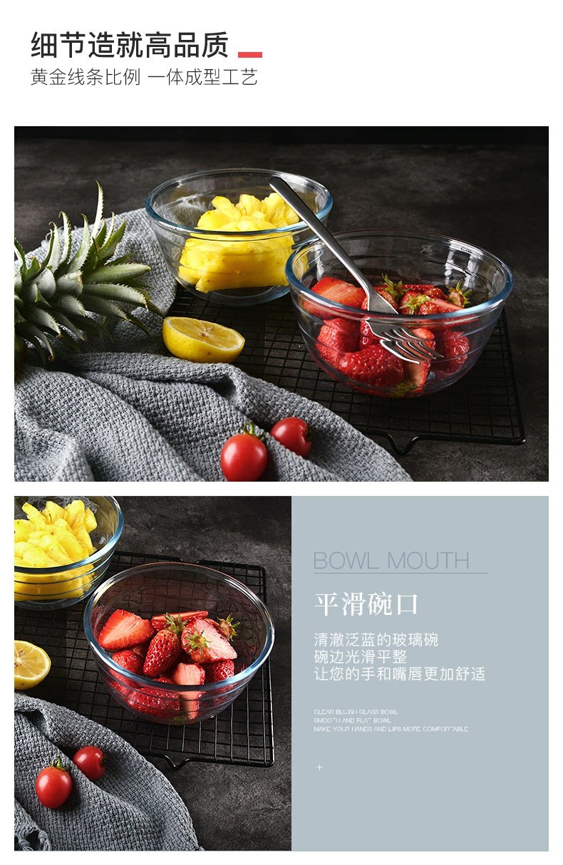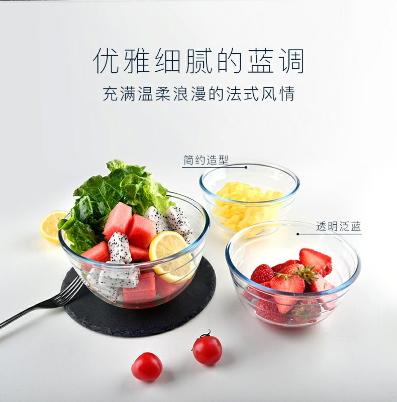 欧贵厨高硼硅玻璃搅拌盆洗菜盆21CM