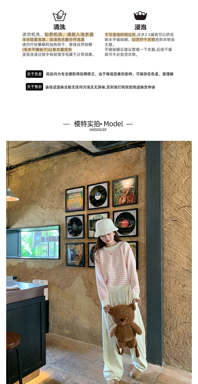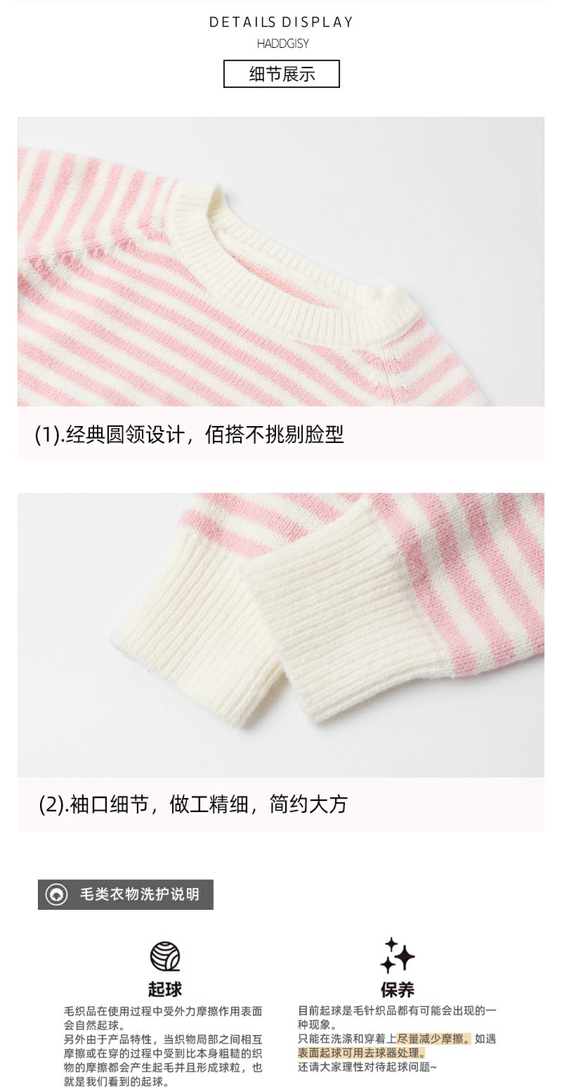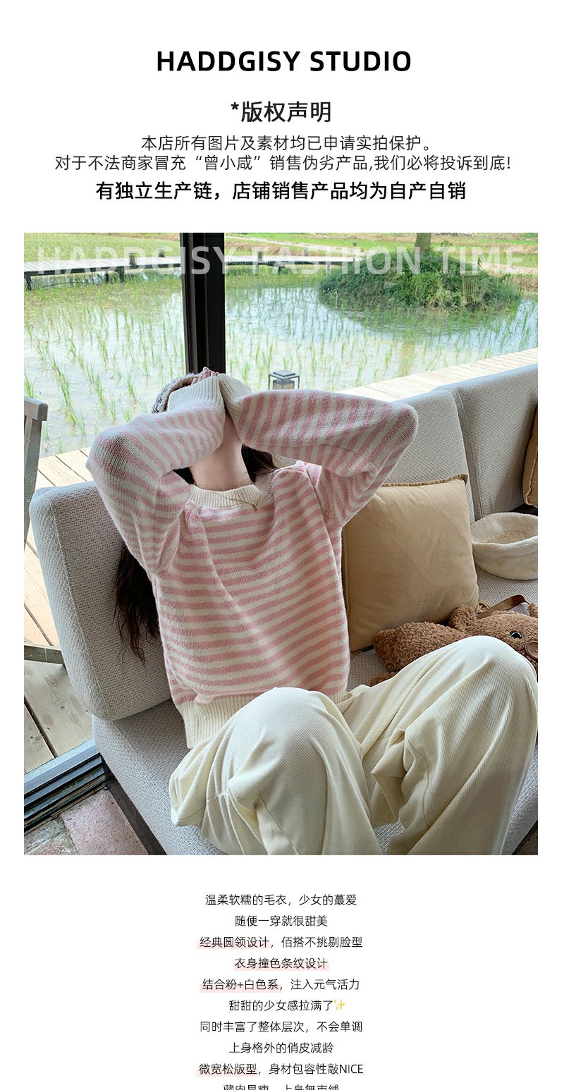 <曾小咸推荐>韩系减龄慵懒风粉色条纹毛衣