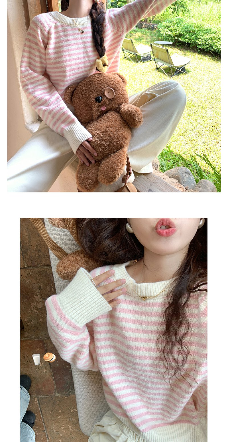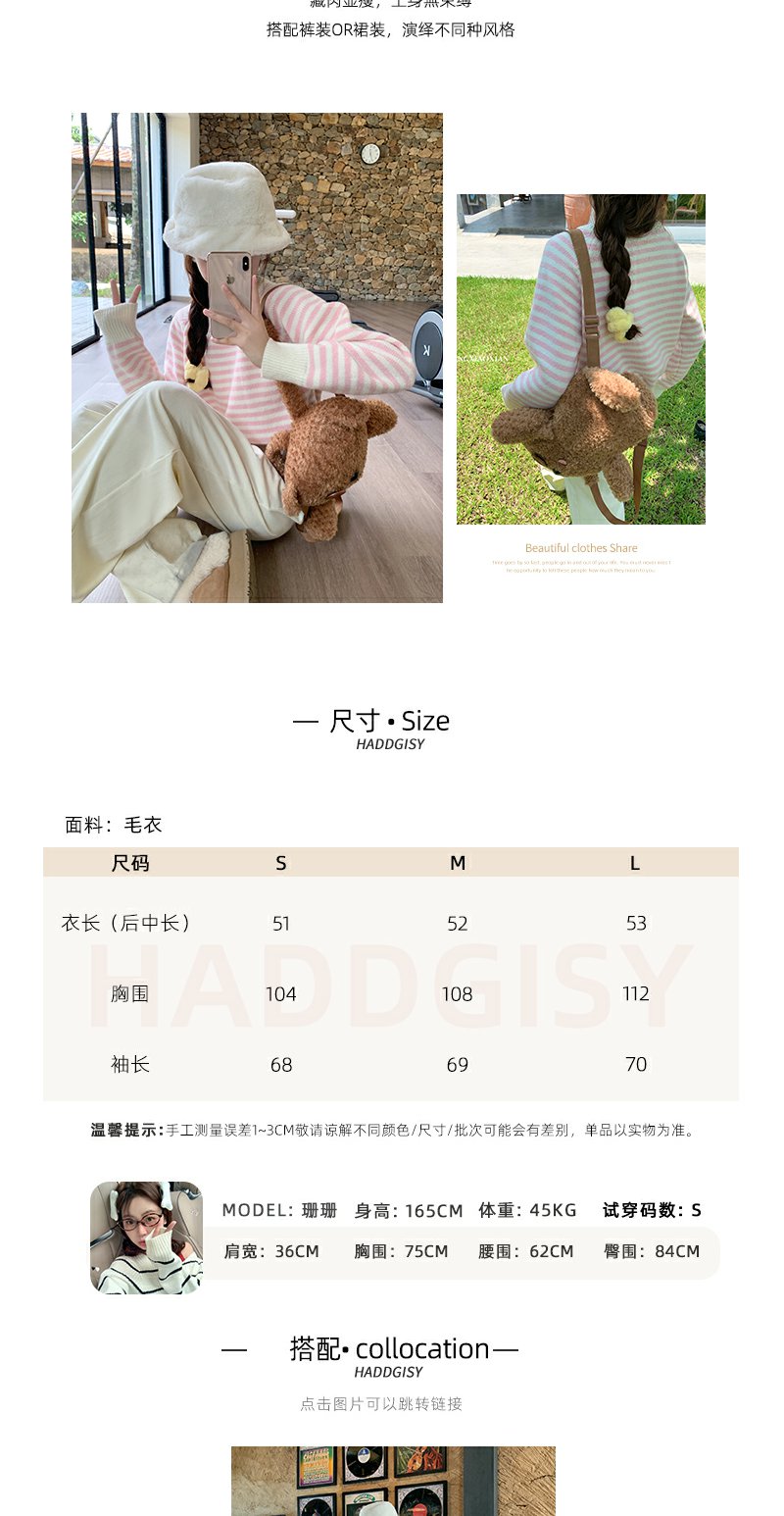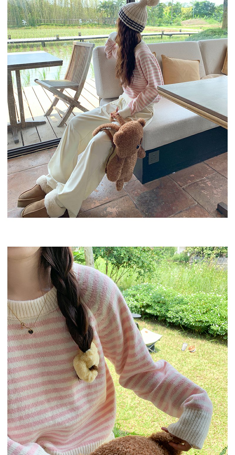 <曾小咸推荐>韩系减龄慵懒风粉色条纹毛衣