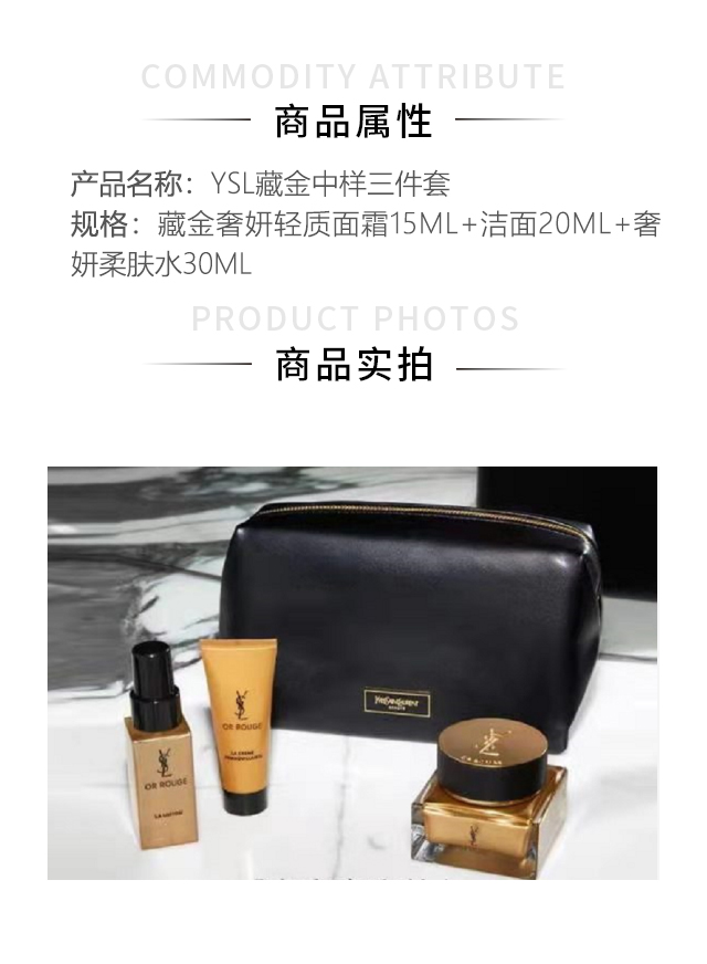 【无面霜】YSL藏金中样三件套藏金奢妍轻质面霜15ML洁面20ML奢妍柔肤水30ML