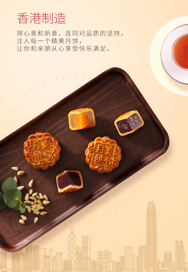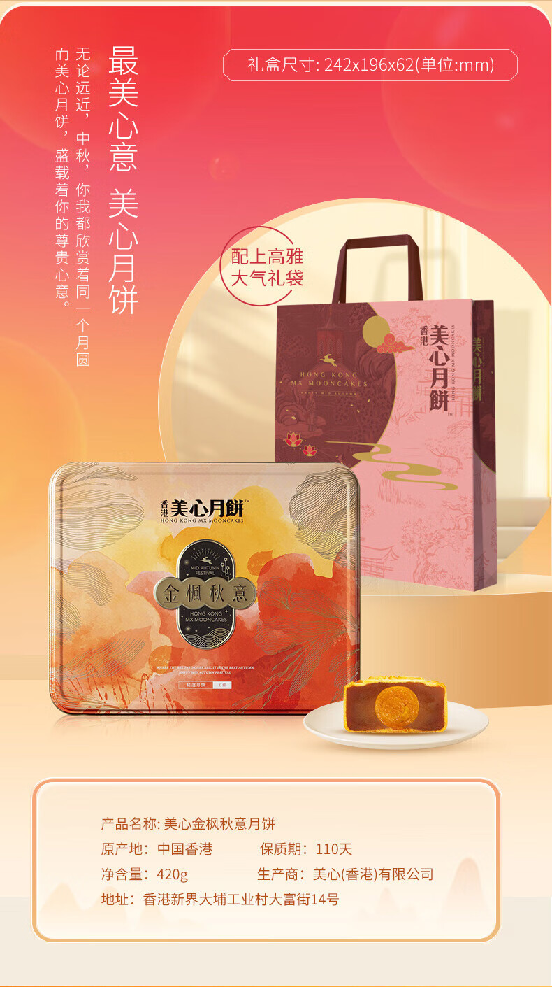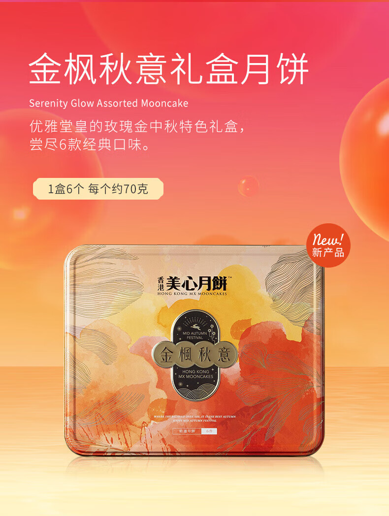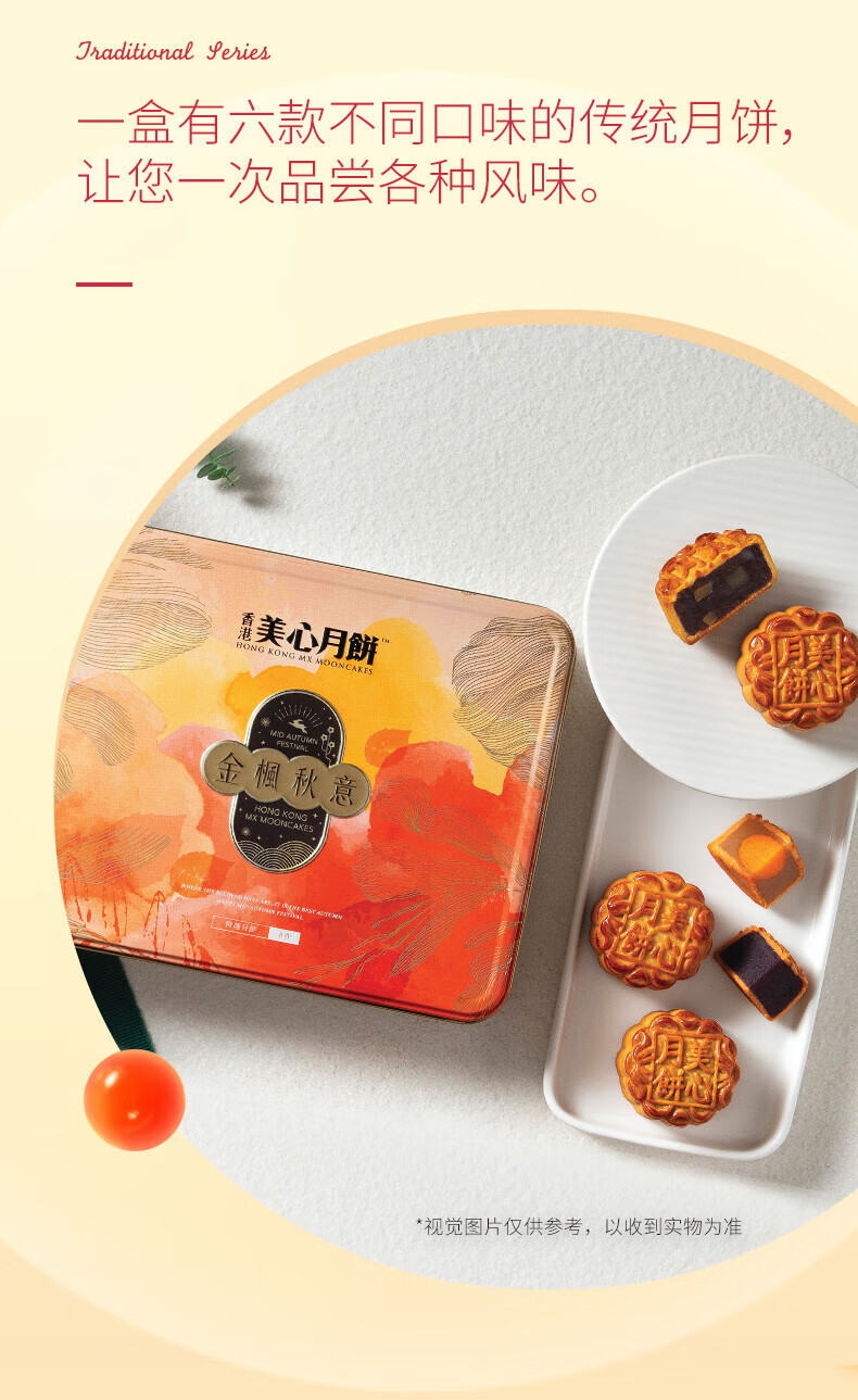 香港美心月饼 HONG KONG MX MOONCAKES美心金枫秋意港式传统多口味月饼铁盒装420g六只装中秋节月饼礼盒 金枫秋意月饼 420g 6个装
