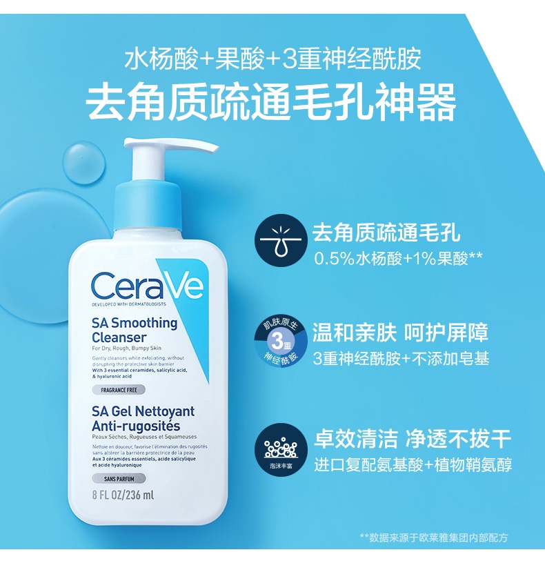 CeraVe适乐肤水杨酸敏感肌洁面去黑头角质236ml