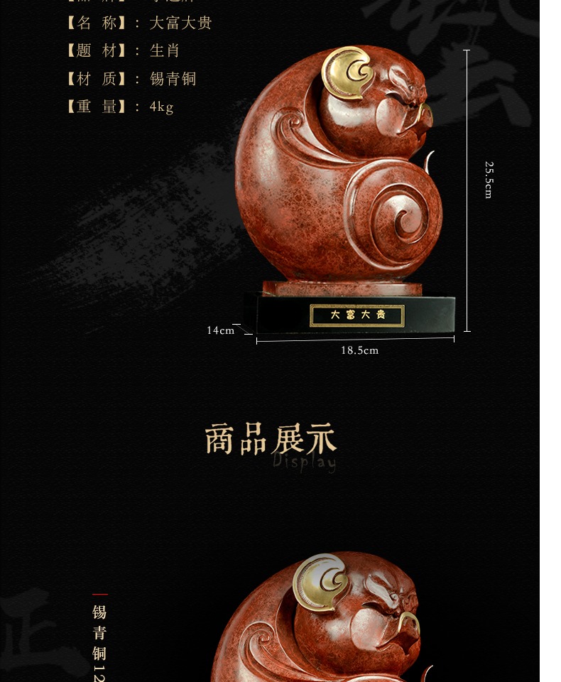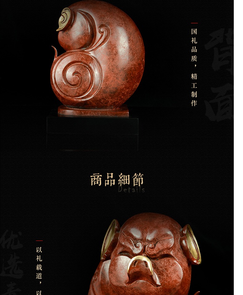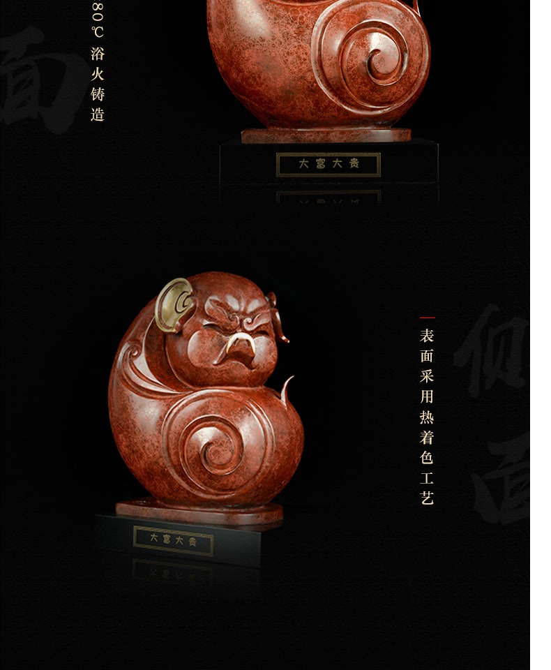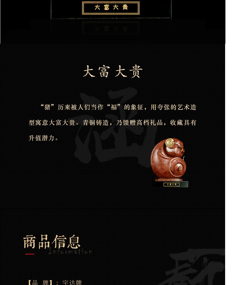 宇达青铜摆件 十二生肖猪《大富大贵》工艺品 装饰 家居摆件 高25.5cm