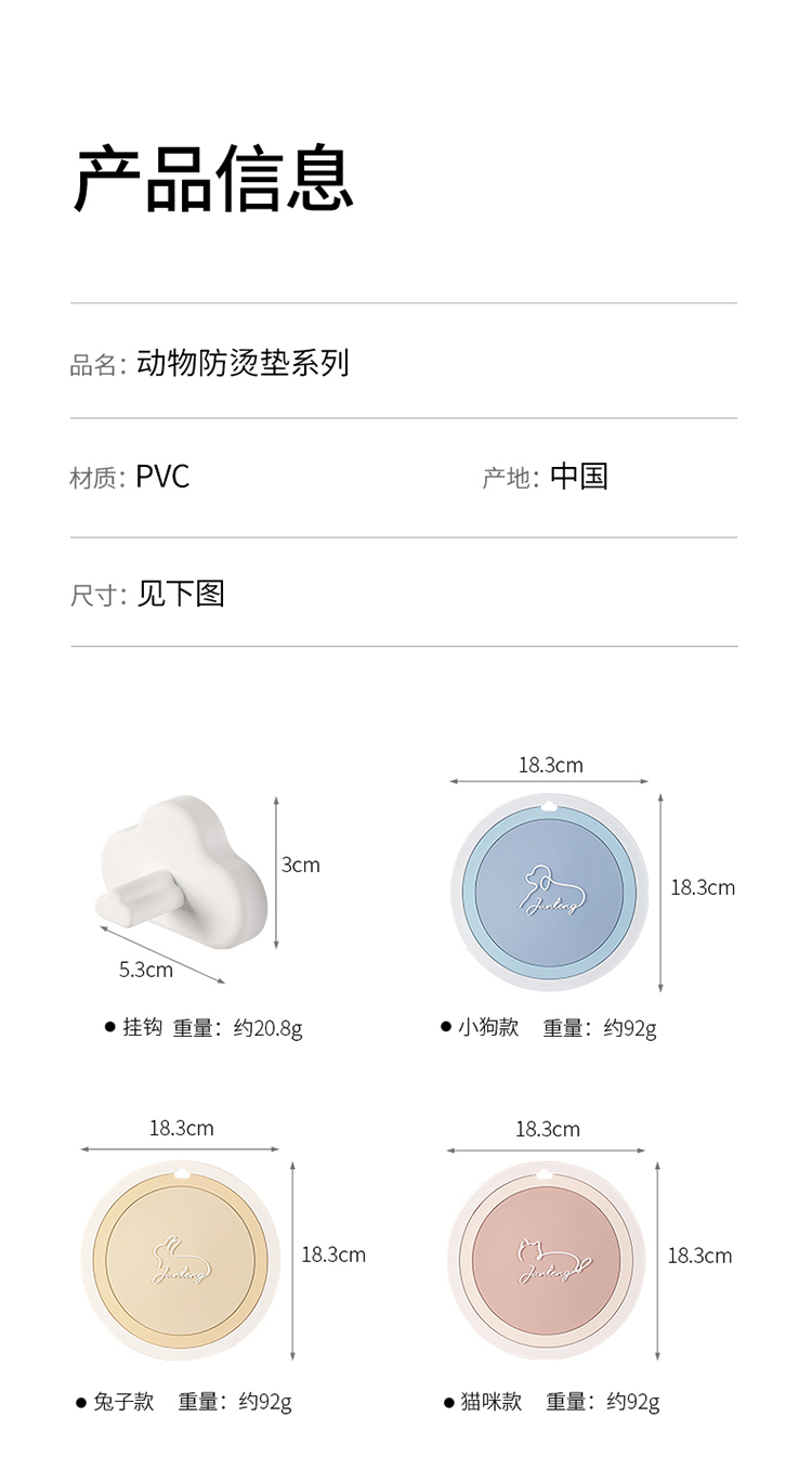 FaSoLa防烫垫家用防滑防油隔热垫创意动物杯垫耐高温餐桌餐盘垫子