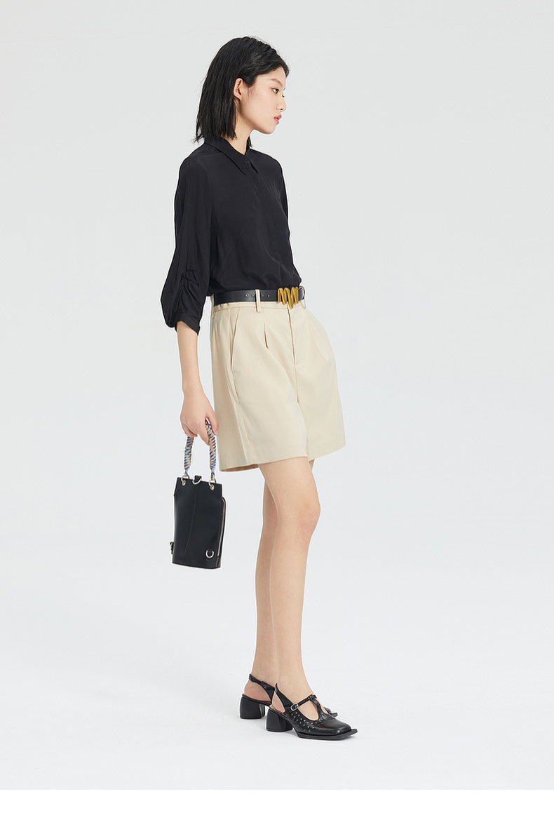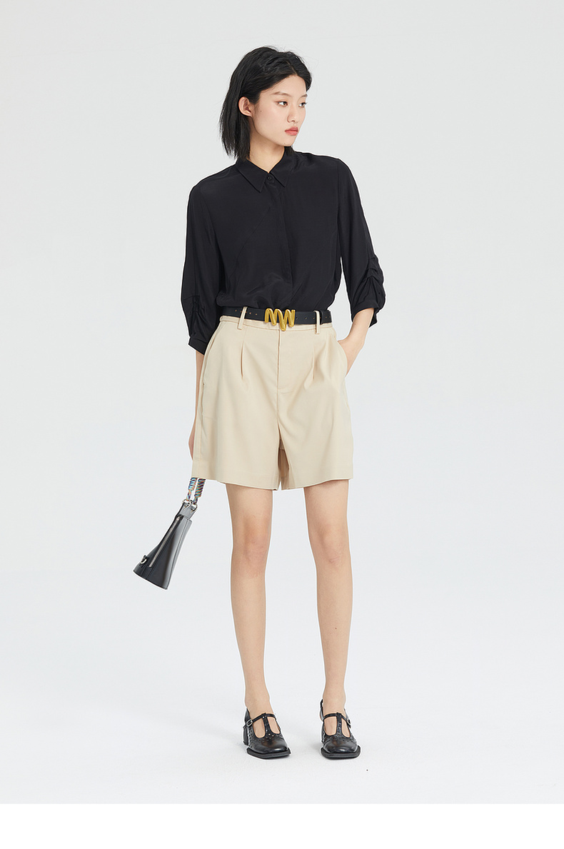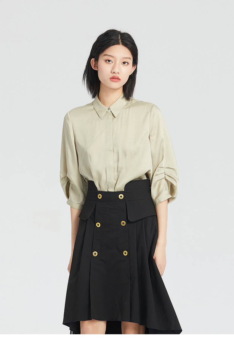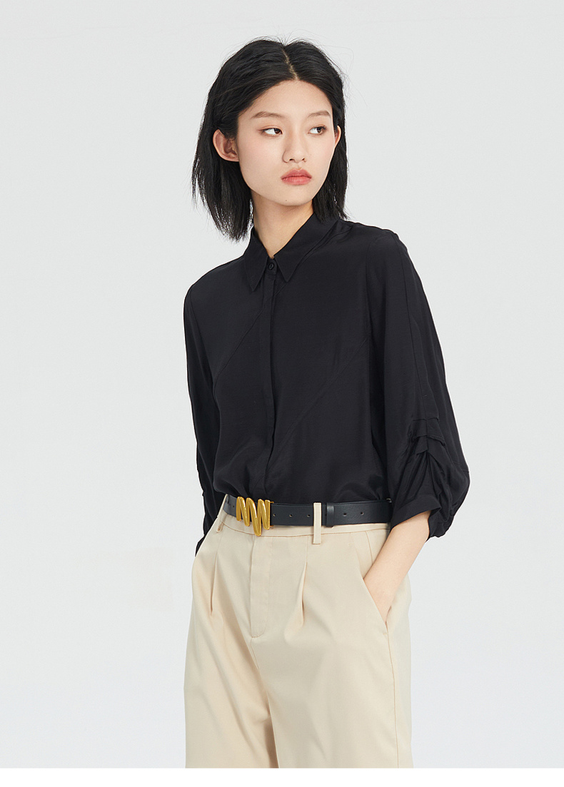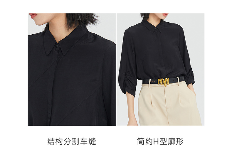 谜底七分袖衬衫女2023夏季新款简约时尚H型通勤衬衣上衣235MC6091