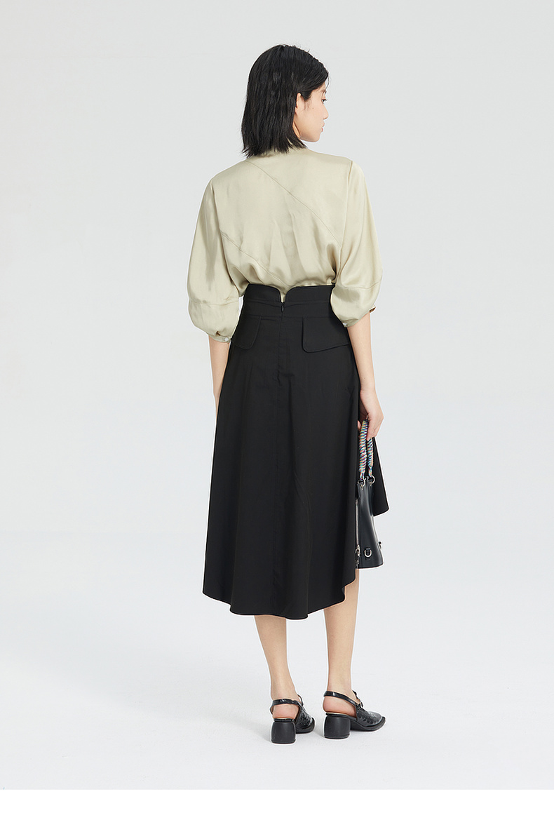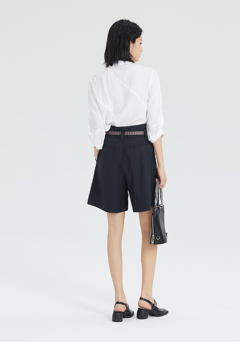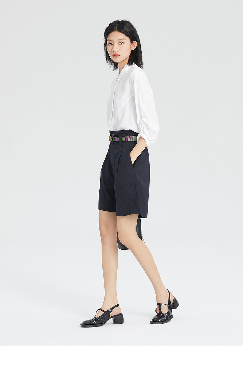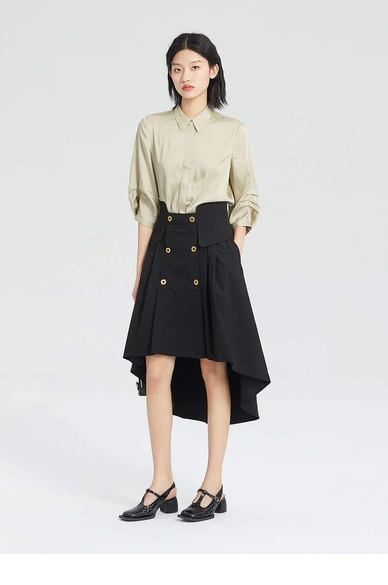 谜底七分袖衬衫女2023夏季新款简约时尚H型通勤衬衣上衣235MC6091