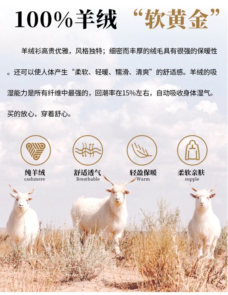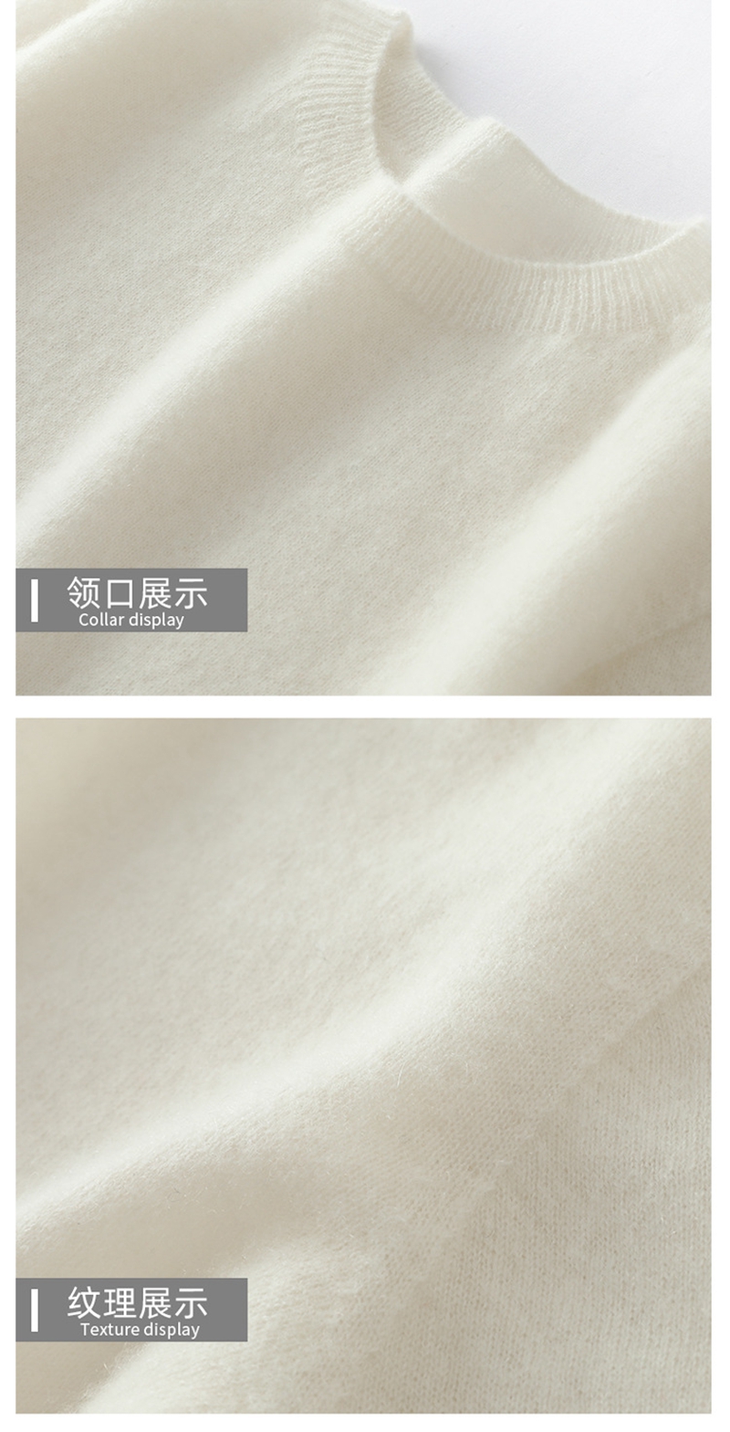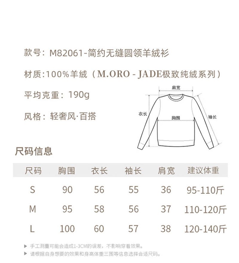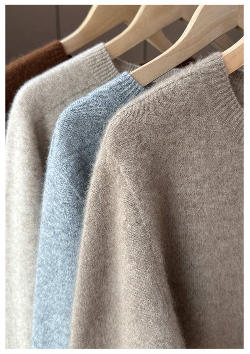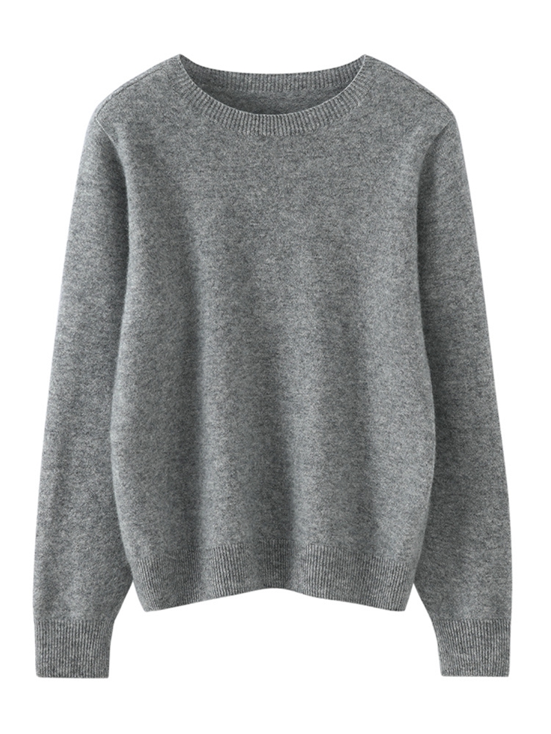 100%纯山羊绒圆领长袖一线成衣针织毛衣