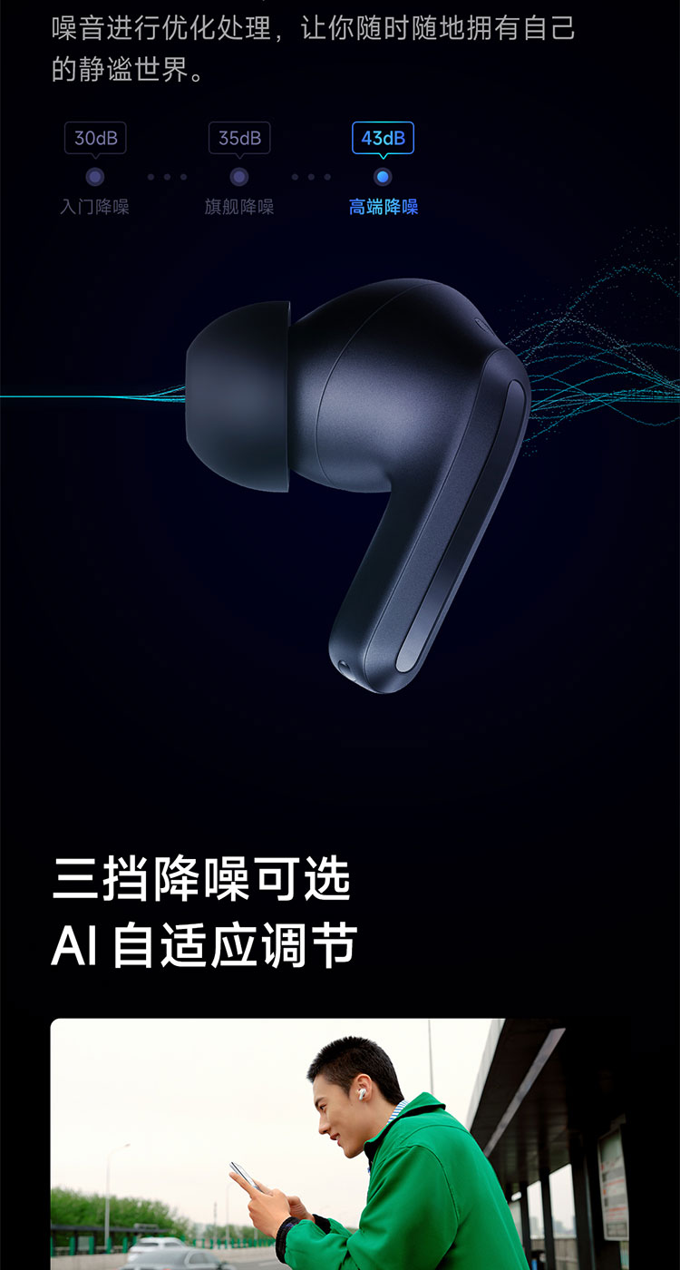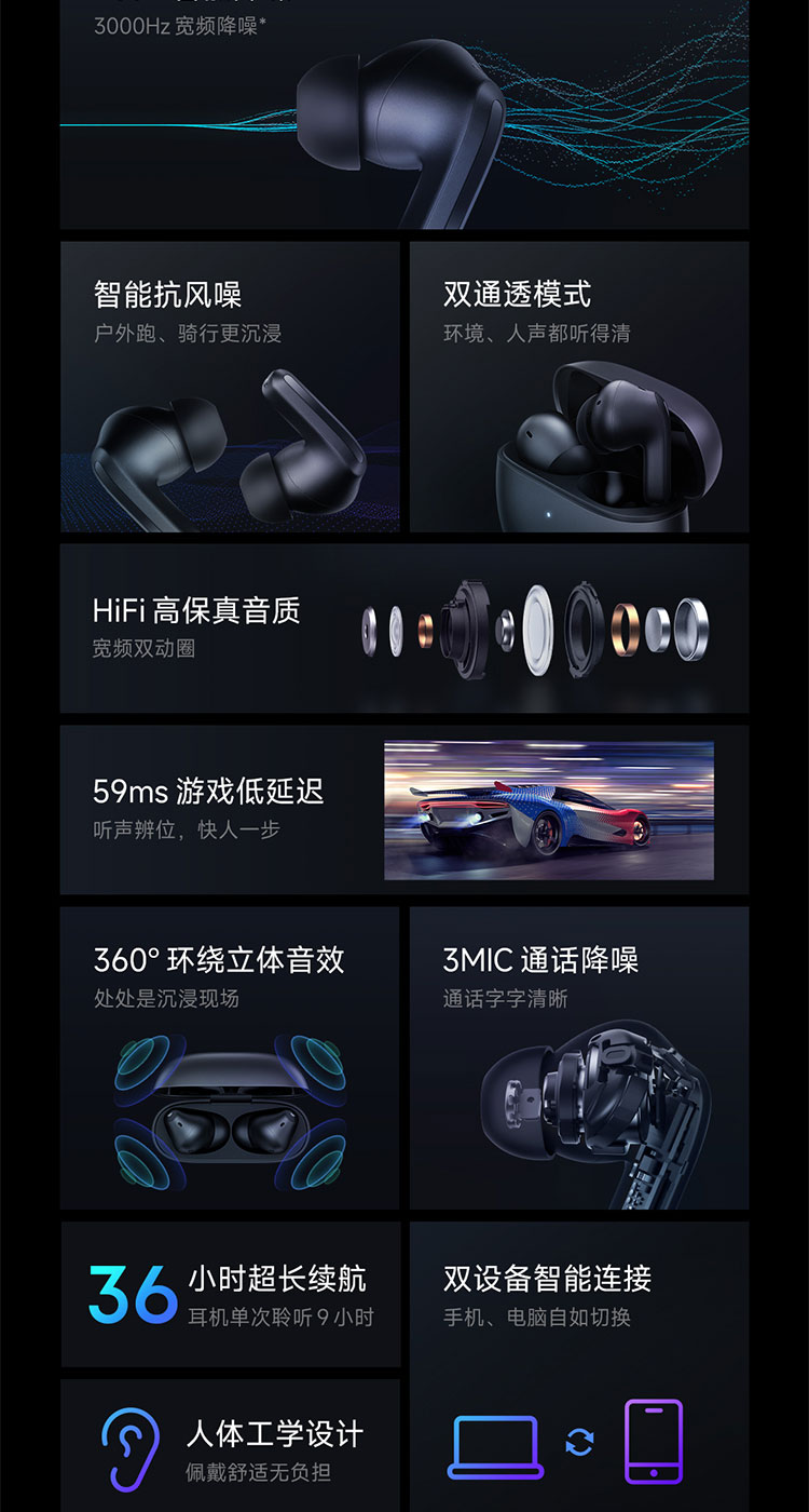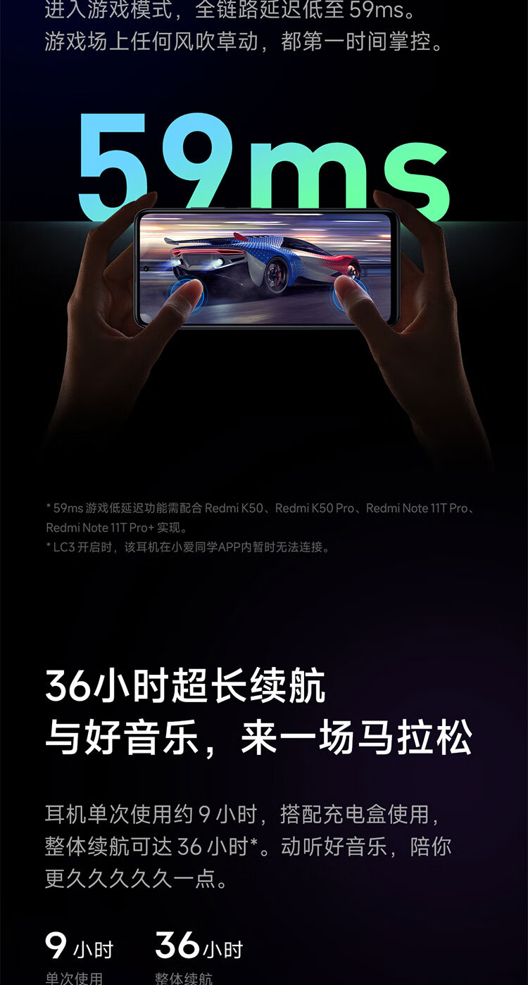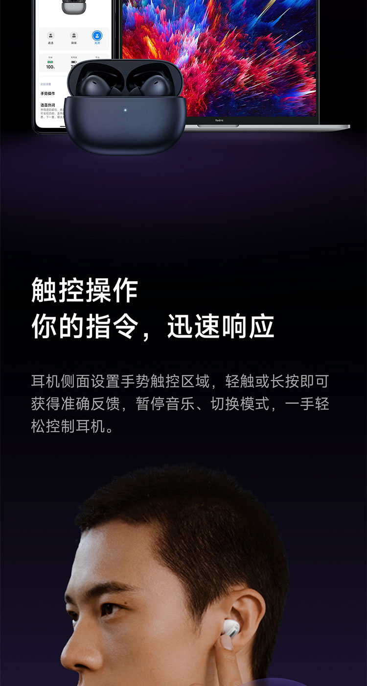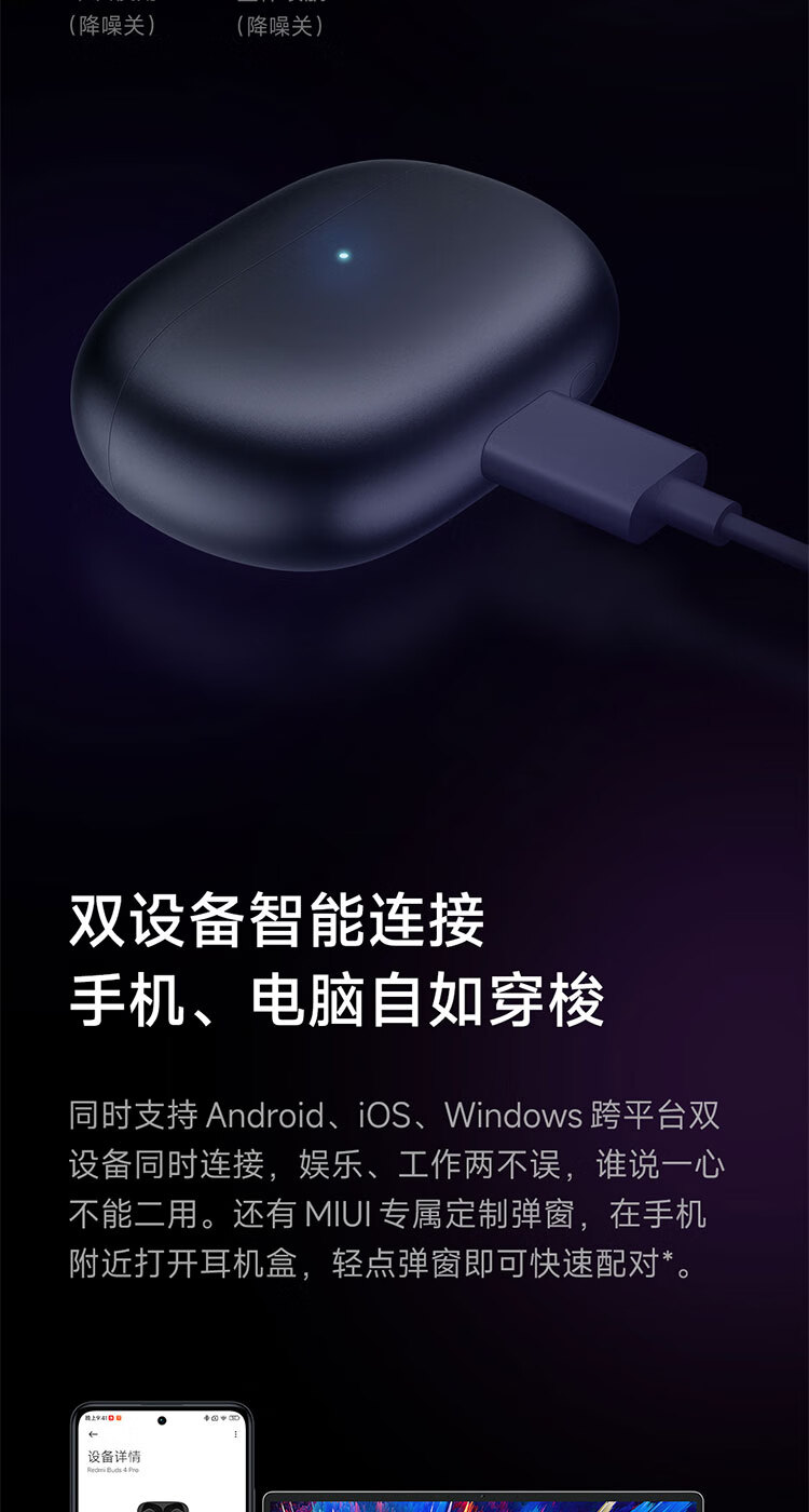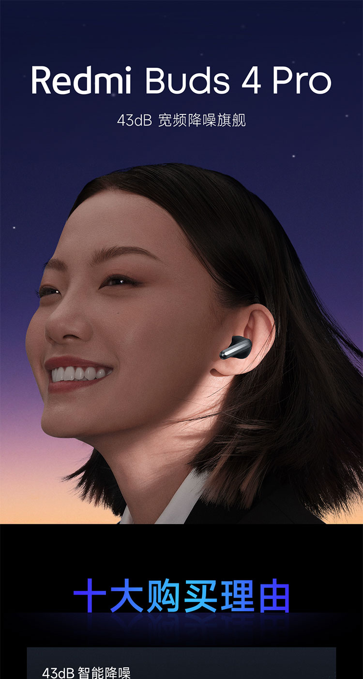 小米(MI) Redmi Buds 4 Pro 真无线蓝牙耳机 主动降噪游戏低延迟 小米苹果华为手机通用耳机 (极夜黑)