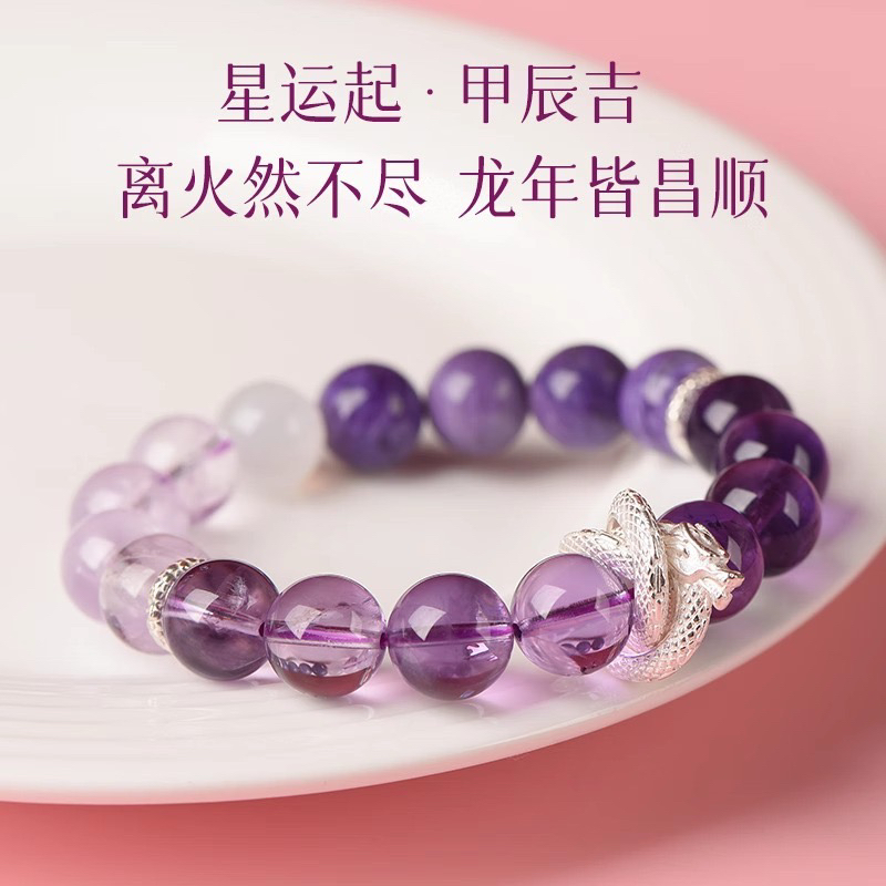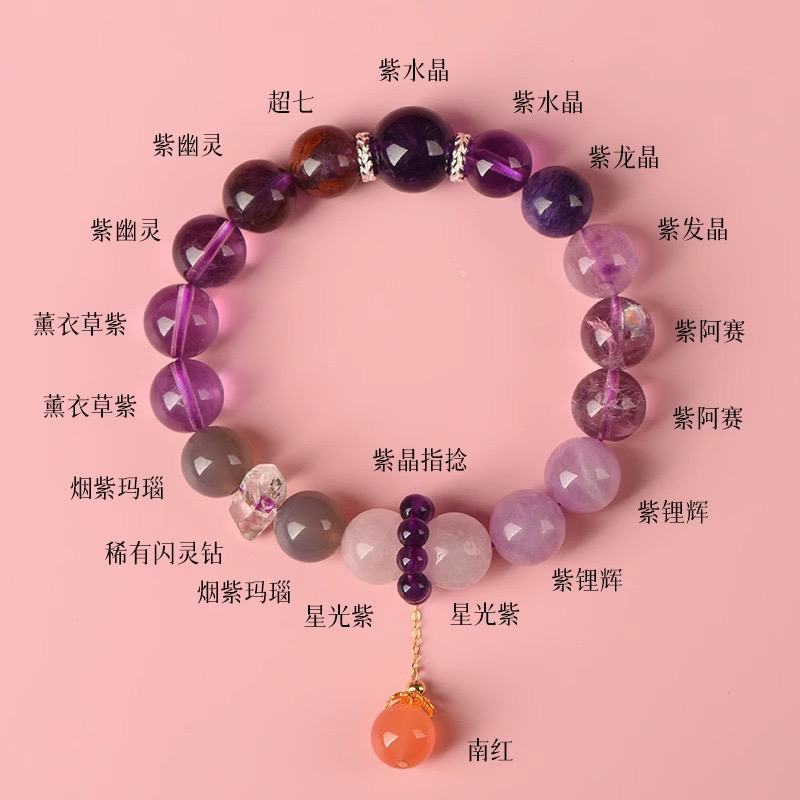 2024九紫离火手链女紫水晶本命年多宝水晶手串紫色水晶